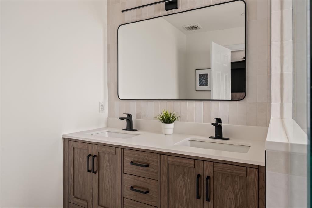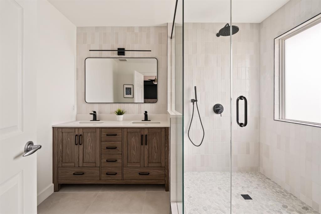 **OPEN HOUSE SATURDAY APRIL 25 12-2pm.** Tired of seeing the same infill over and over again? This might be the one for you! Offering nearly 2,400 square feet of thoughtfully designed living space across three levels, this 4-bedroom, 3.5-bathroom home blends charm with modern upgrades that make it truly move-in ready. Step through the welcoming covered front entry and into a bright, open main floor where freshly refinished hardwood floors are the standout feature. The heart of the home is an open-concept kitchen, dining, and living area flooded with natural light and a 3 sided fireplace dividing the dining and living area. The kitchen features white cabinetry, dark quartz countertops, subway tile backsplash, an extended counter area with breakfast bar seating, stainless steel appliances and a good size corner pantry. The adjacent dining area easily accommodates a large family table, while the spacious living room offers glass block windows for added natural light without sacrificing privacy, and room for everyone to gather. The main floor also features a powder room and laundry area with a newer washer/dryer (2024). Upstairs, the primary suite is a true retreat with french doors, a bold designer accent wall, generous walk in closet space, and a private ensuite that was completely renovated in May 2025 with a double vanity and a glass-enclosed shower and new window. Two additional well-sized bedrooms both with ample closet space, large windows and a shared 4 piece bath complete the upper level. The fully finished basement doesn’t feel like a basement with large windows looking out to the backyard. The basement adds valuable living space with a fourth bedroom and an additional full bathroom, perfect for guests, teenagers, or a home office setup. There is additional storage in the utility room and under the stairs. Outside, enjoy a private, fully fenced east facing backyard with low maintenance turf (August 2020), a newer composite deck with modern black railing (October 2020), ideal for summer entertaining. The deck is accessible directly from the main floor and offers views of the neighbourhood. Fresh paint throughout the home, refinished hardwood floors, and a welcoming curb appeal with a charming covered front porch and upper balcony make this infill stand out amongst the rest. All of this in Glenbrook, one of Calgary's most family-friendly inner-west communities. Just minutes to the Glenbrook Community Association, 20 minute walk to the c-train, and close proximity to schools, parks, Westbrook Mall, and with quick access to downtown and the mountains this home is not to be missed!