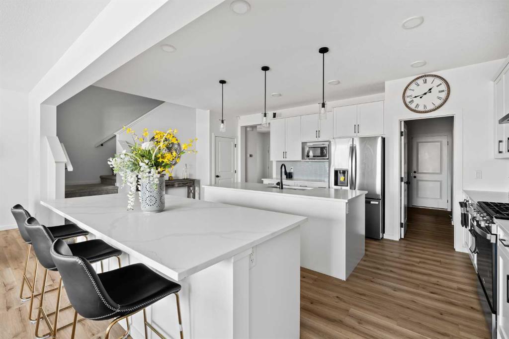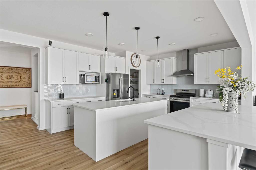 Welcome to 314 Walcrest Way SE - a beautifully designed two-storey home offering over 2,450 sq. ft. of thoughtfully planned living space above grade. With 3 bedrooms and 2.5 bathrooms, this home delivers an exceptional blend of space, comfort, and functionality, perfect for families and those who love to entertain. Step inside to a bright, inviting main floor where the open-concept layout creates a seamless flow between the kitchen, dining, and living areas. The timeless white kitchen is truly the heart of the home, featuring a unique double island design, abundant cabinetry, generous counter space, and a well-appointed walkthrough pantry - ideal for both everyday living and hosting. The spacious dining area easily accommodates larger gatherings and connects effortlessly to the backyard through expansive sliding doors, creating a natural indoor-outdoor living experience. The great room offers a warm and comfortable setting, anchored by a central fireplace. On the upper level, a centrally located bonus room provides additional living space, perfect for relaxing, entertaining, or a family media area. The primary suite is a private retreat, featuring a walk-in closet and a well-appointed 5-piece ensuite with dual vanities, a soaker tub and a walk-in shower. Two additional bedrooms, each with a walk-in closet, a full bathroom, and a conveniently located laundry room with added storage and workspace. The unfinished basement presents a blank canvas, ready for your imagination. Whether you envision additional living space, a home gym, or a future development, the possibilities are wide open and rough-ins are in place. Outside, enjoy a generous backyard with a rear deck, offering the perfect space for summer evenings, entertaining, or simply relaxing outdoors. The fully landscaped and fenced backyard, along with custom window treatments throughout, offers significant savings compared to a new home and provides a move-in-ready, like-new residence. Located in the growing community of Walden, this home is close to parks, pathways, ponds, and nearby amenities, providing a great balance of natural surroundings and everyday convenience. Combining thoughtful design, ample space, and a desirable location, this is a home you won’t want to miss.
