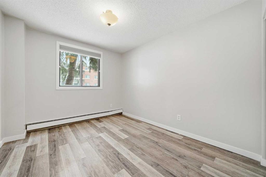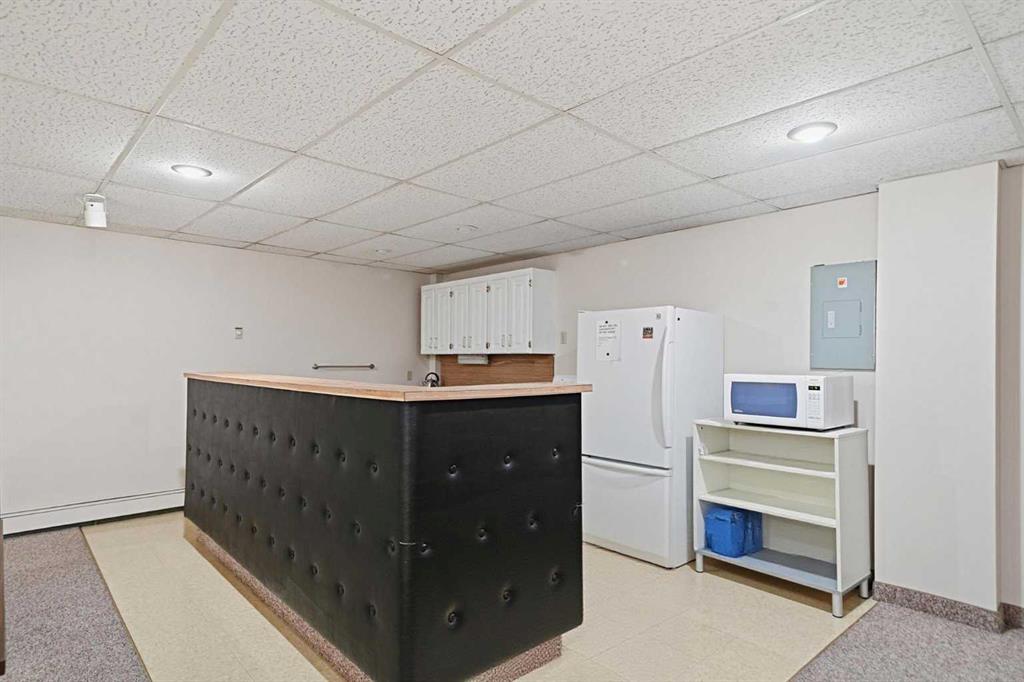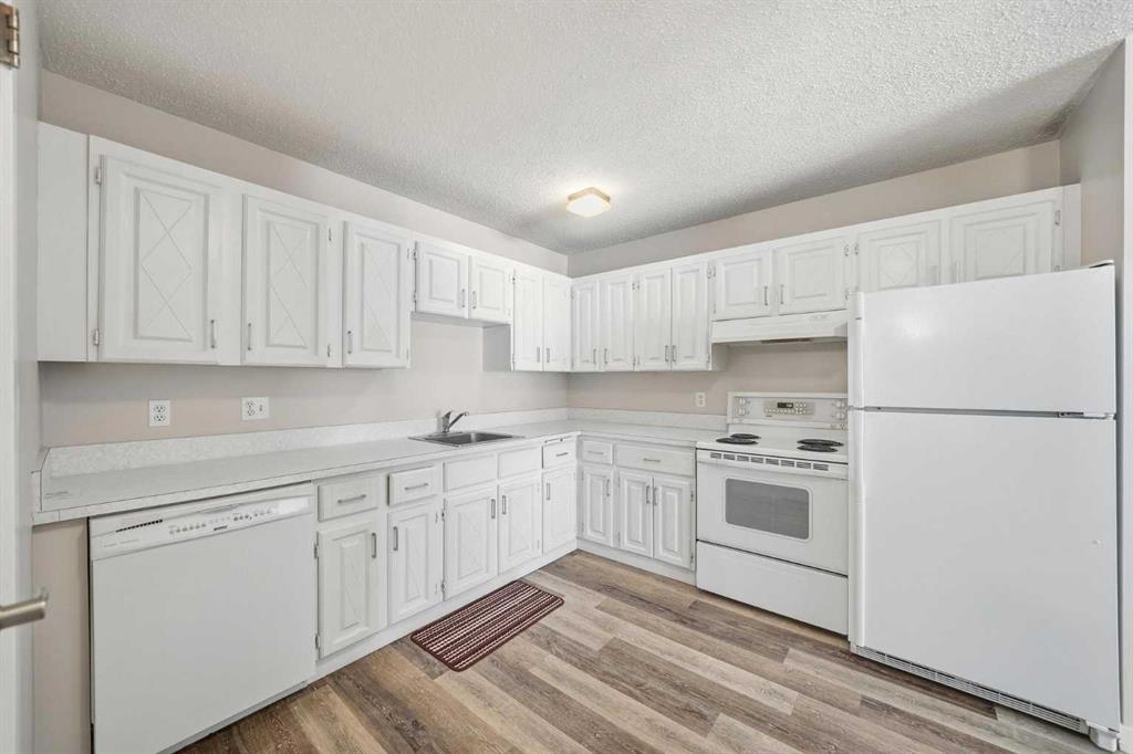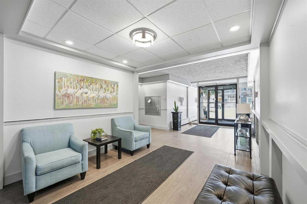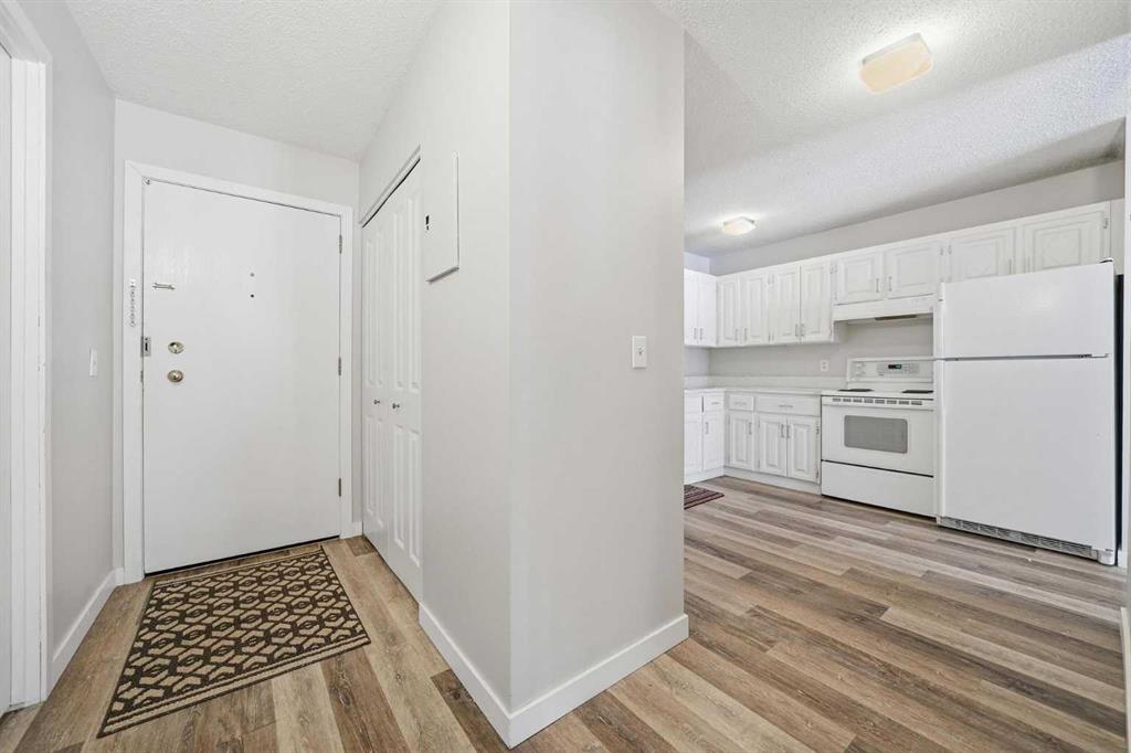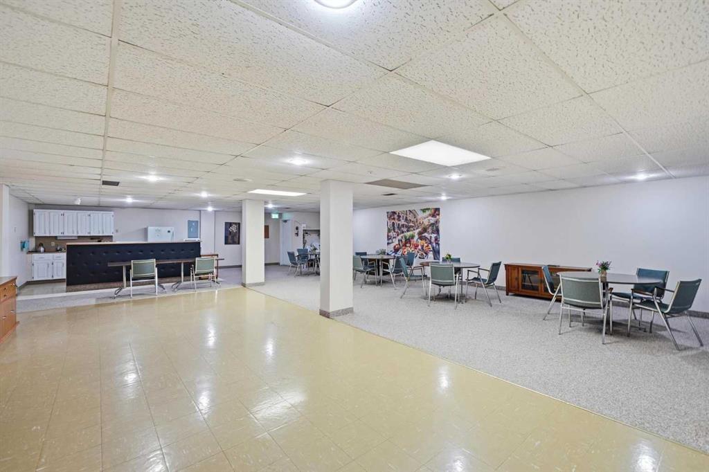 Welcome to Chinook Manor, A 40+ Age Restricted Building. This bright and spacious 1-bedroom, 1-bathroom main floor unit offers both comfort and convenience. With 617 sq. ft. of well-designed living space, this north facing home features a functional layout, including a fully equipped kitchen and a generous living room with sliding glass doors that lead directly to a large private patio with easy ground-level access.