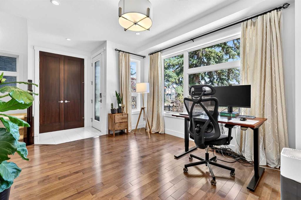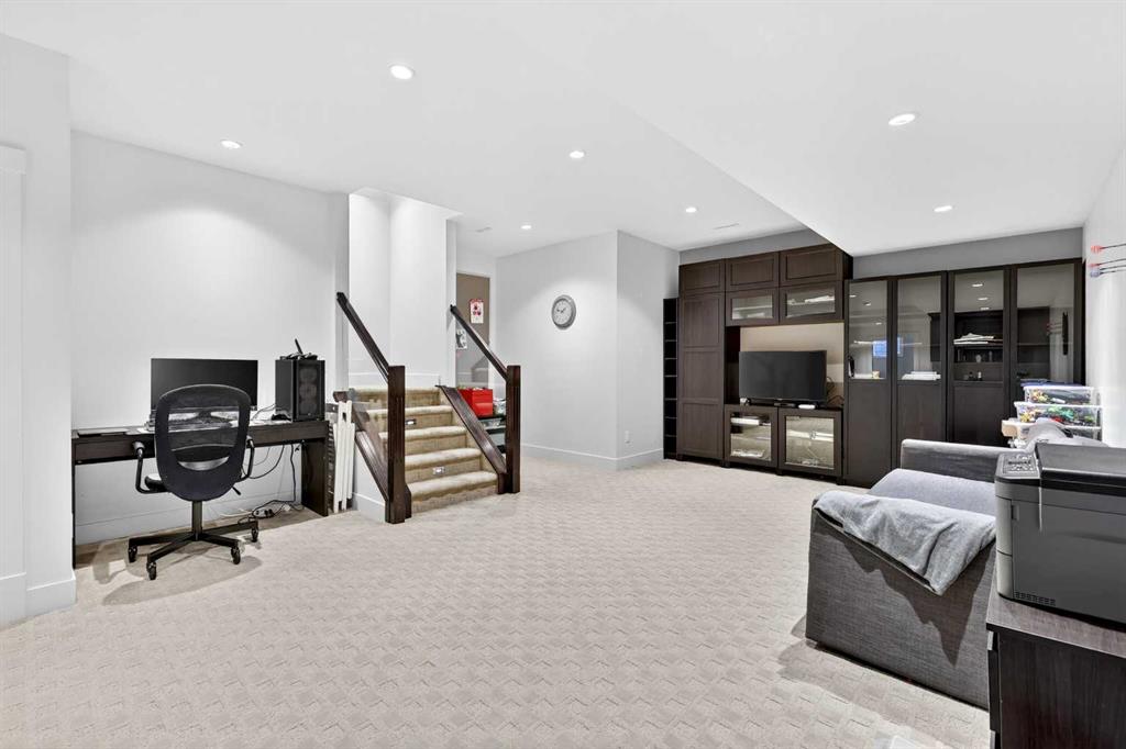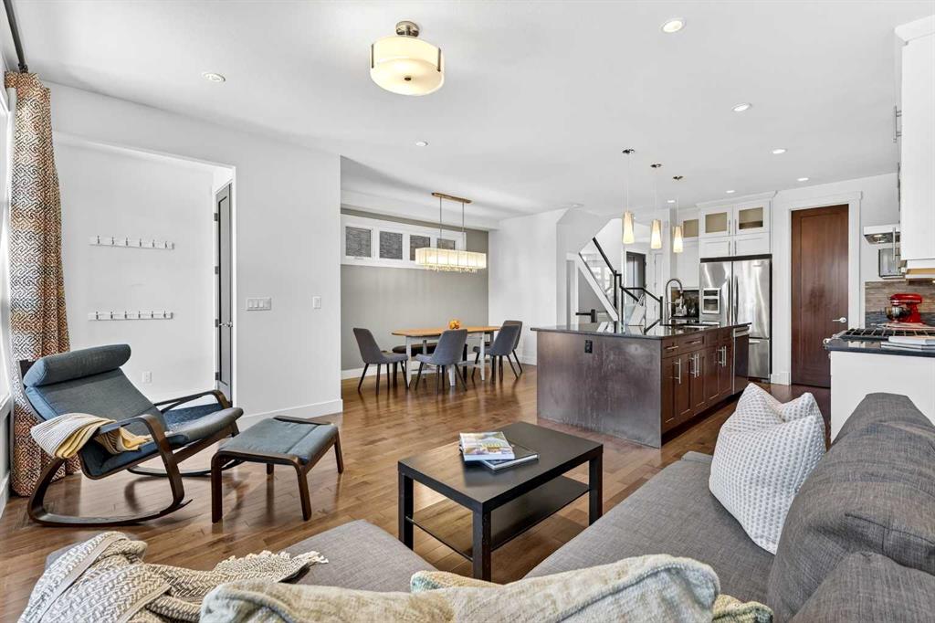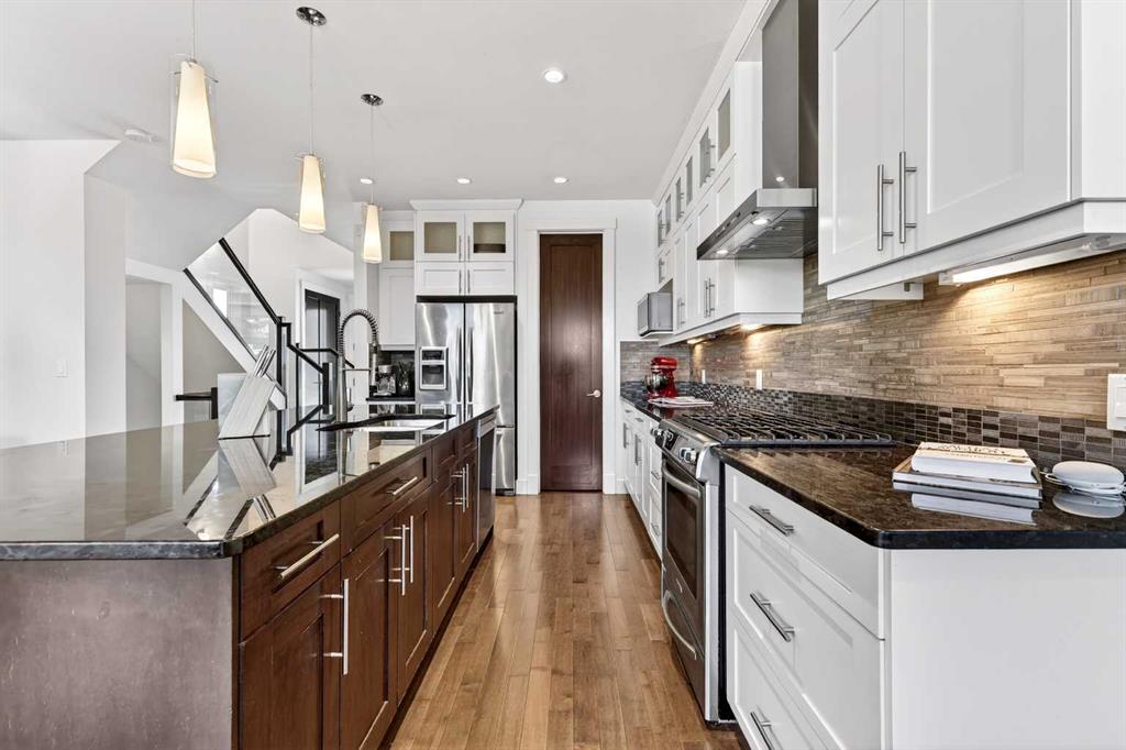 Set in the established community of Killarney, this well-designed 4 bedroom home offers more than 2,500 sq ft of fully developed living space, highlighted by a desirable floorplan and high ceilings throughout. The bright, open-concept main level features rich hardwood flooring and an east to west-facing orientation that fills the space with natural light. The kitchen is both stylish and functional, complete with granite countertops, a large island with eating bar, sleek white cabinetry, walk-in pantry, and stainless steel appliances, all flowing seamlessly into a spacious dining area. The inviting living room centers around a cozy gas fireplace, creating a warm and cohesive space for everyday living and entertaining. A private den or home office sits just off the front entry, while a convenient powder room and back storage closet/mudroom space round out the main floor. Upstairs, you’ll find three spacious bedrooms, a full 4-piece bathroom, and a laundry room with added storage. The primary suite offers a walk-in closet and a well-appointed 5-piece ensuite featuring dual sinks, a jetted tub, and separate shower. The fully finished basement is ideal for relaxing or hosting, with a large family/media room, built-in entertainment unit, and wet bar. A large fourth bedroom and additional 4-piece bathroom complete the lower level. Outside, the sunny west-facing backyard provides the perfect setting to unwind, featuring a patio and access to a double detached garage. Ideally located in the heart of Killarney, this home is just a short stroll to the Killarney Recreation Centre, Westbrook LRT, and local favourites like Luke’s Drug Mart. The area offers excellent schools, beautiful parks, and convenient access to shopping and everyday amenities, with Shaganappi Golf Course nearby. Commuting is effortless with quick access to downtown via 17th Avenue, making this a truly well-connected and sought-after place to call home.