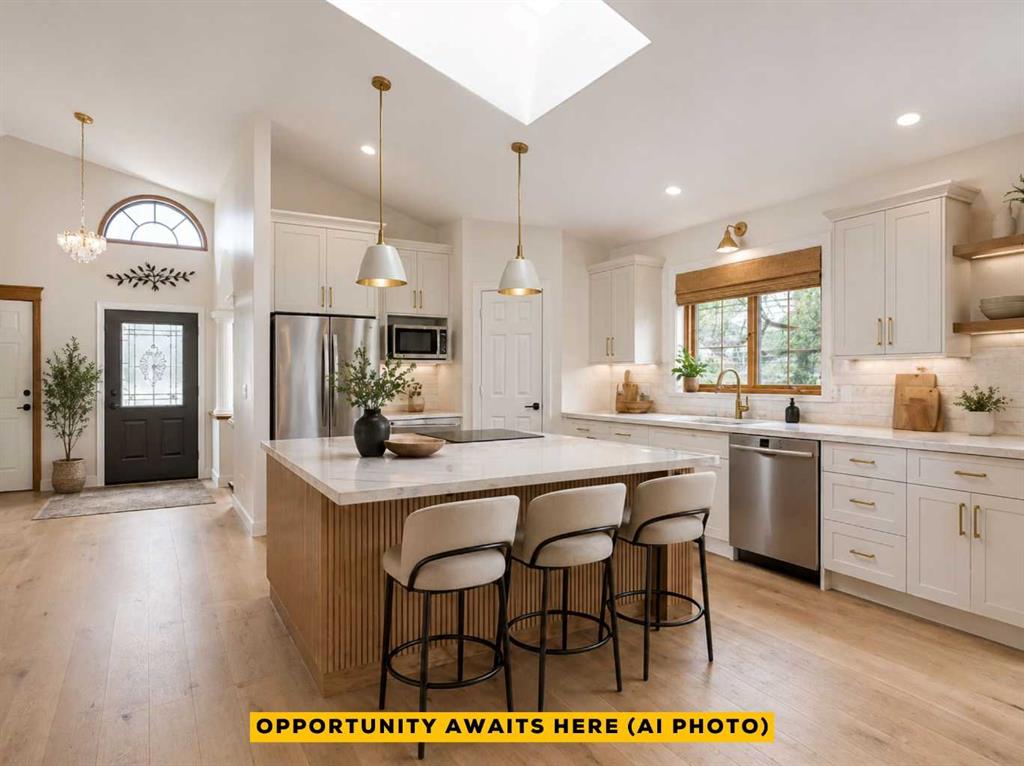 The main living area is warm and inviting, complete with a fireplace that anchors the space and makes it perfect for everyday living and entertaining. At the front of the home, you’ll find a dedicated dining room that could easily be converted into a home office or even an additional bedroom, offering flexibility depending on your needs.
