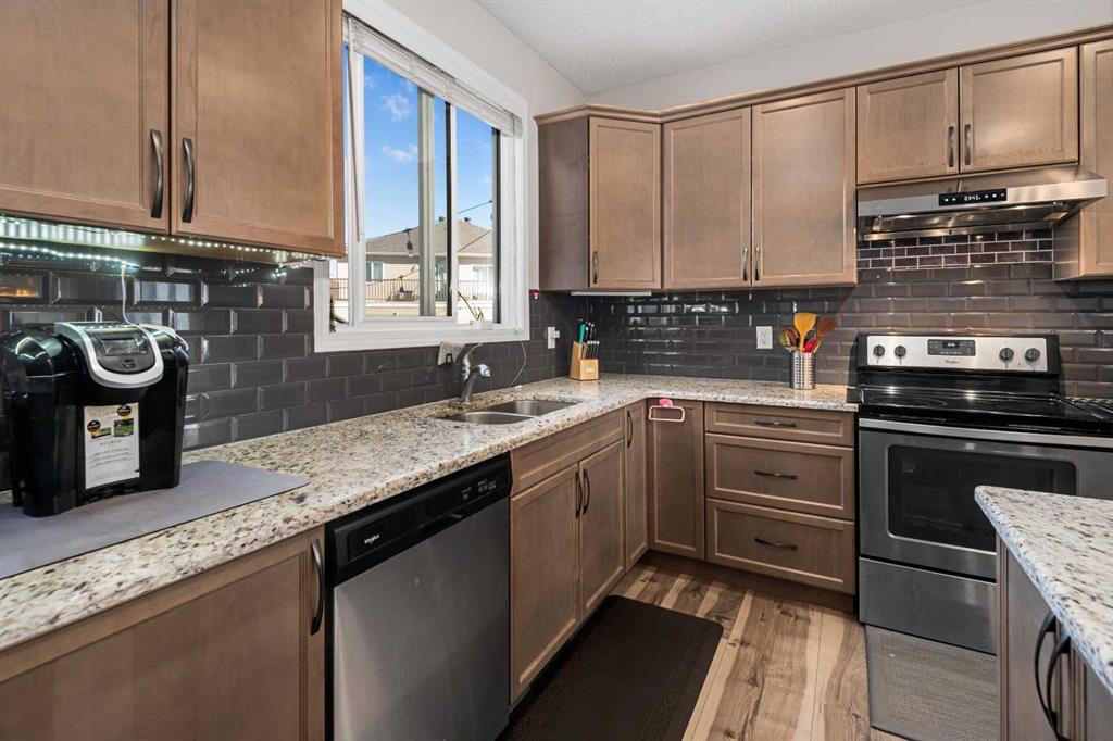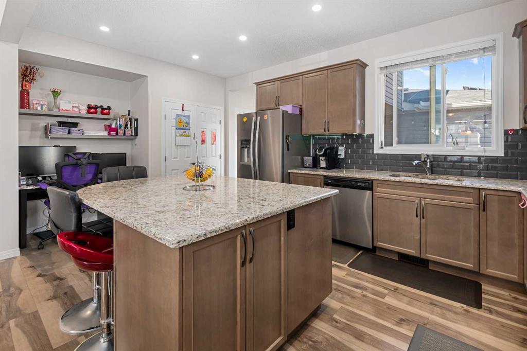 And it flows into a large dining room that can accommodate a large full size dining table. The kitchen, overlooking the large side yard, has an oversized granite countertop with tons of storage and maple cabinets. All stainless-steel appliances like Fridge, dishwasher, glass top stove, oven and a recently installed powerful hood fan are all included.