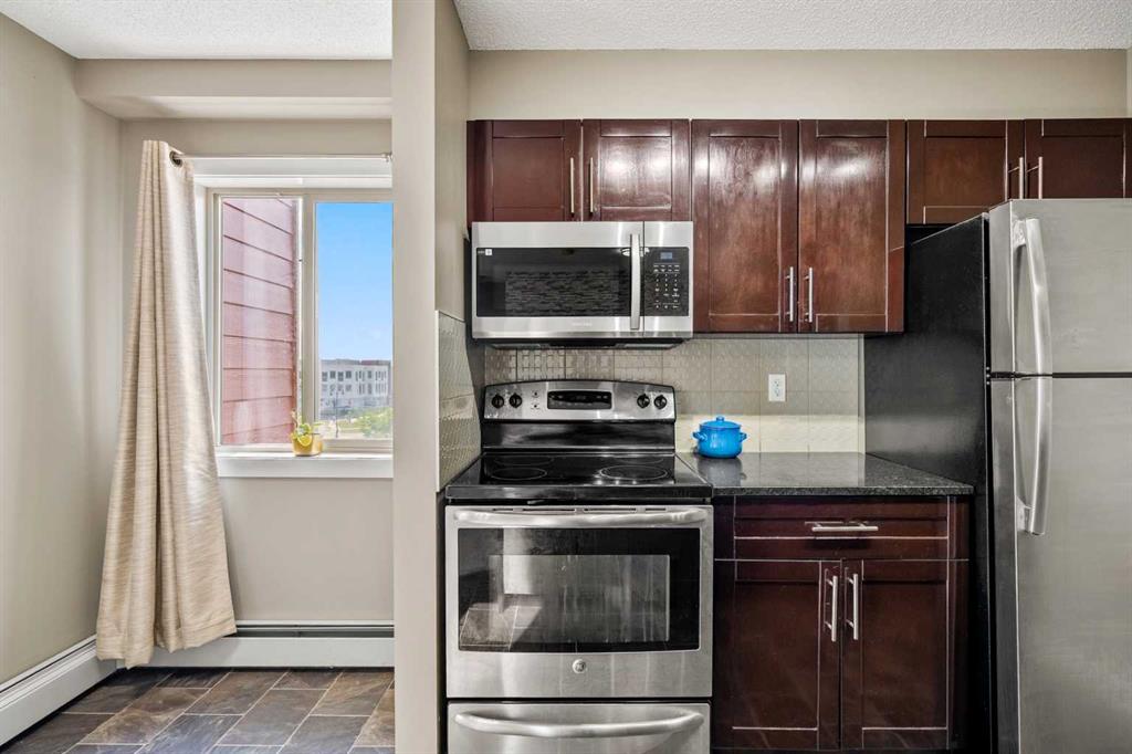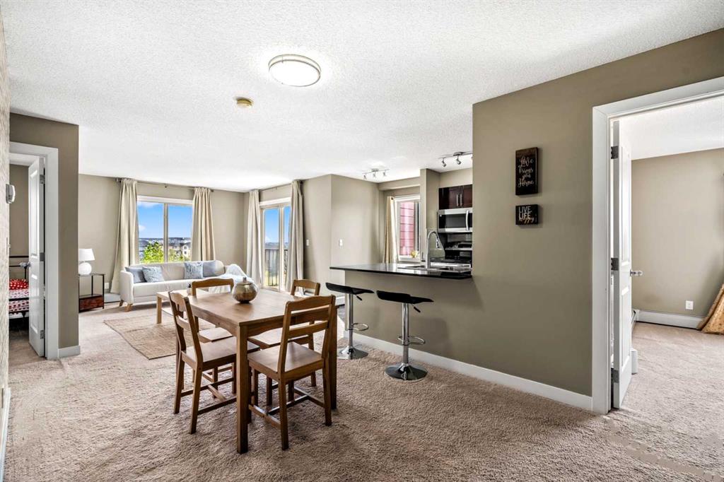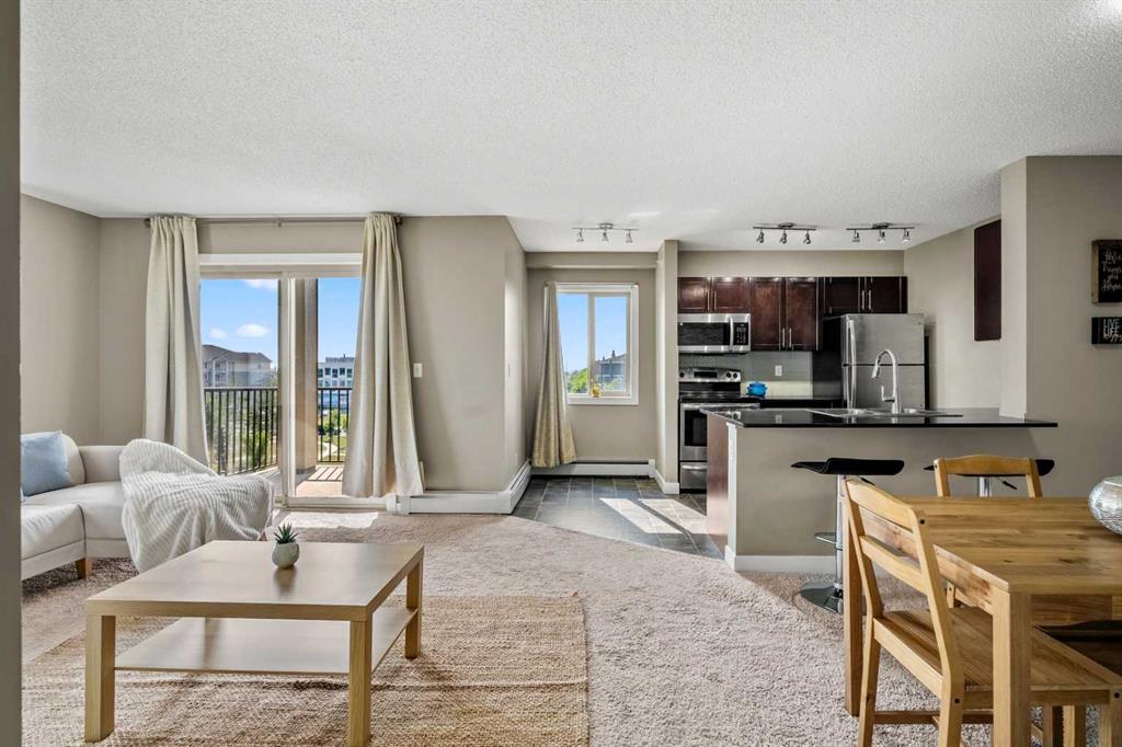 Experience elevated living in this stunning top-floor corner condo in the sought-after community of Saddlestone, offering breathtaking mountain views and a peaceful outlook over Taralake. This bright, spacious, and freshly painted condo is filled with natural light from large windows and enjoys a quiet and private setting. The open-concept layout features granite countertops, modern stainless steel appliances , and in-suite stacked laundry for ultimate convenience. A generous living area and private balcony make it easy to relax or entertain while taking in the panoramic views. A flexible den provides the ideal space for a home office, study, or creative retreat. This unit also includes a heated underground titled parking stall (#198) with a large 10'-6" x 4'-3" private storage unit located directly behind the stall—perfect for extra storage needs. Located just within walking distance to the C-Train station, Genesis Centre, schools, parks, and shopping, this condo offers the perfect blend of comfort, style, and accessibility in one of northeast most desirable communities, Saddlestone. Don’t miss this rare opportunity!