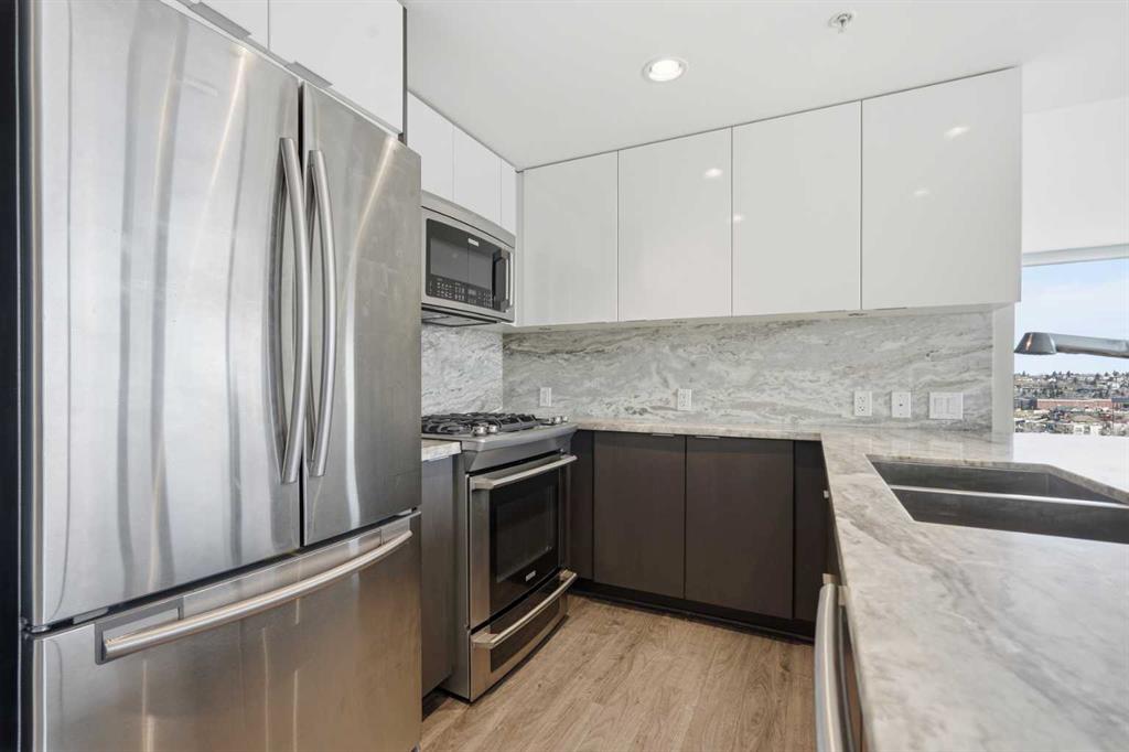 Welcome to Evolution in Calgary’s vibrant East Village. This well-appointed 2 bed, 2 bath + den unit which offers 1,097 sq. ft. of thoughtfully designed living space, featuring unobstructed NE river views from the 12th floor. Enjoy modern concrete construction, floor-to-ceiling windows, and a bright, open-concept layout that balances downtown convenience without compromising on space. The home showcases 2 spacious bedrooms, including a primary retreat with dual vanities and a luxurious glass shower and deep soaker tub. The versatile den is perfect for a home office or additional storage. Indoor and outdoor living spaces are ideal for entertaining, complemented by ample in-suite storage and laundry. Additional highlights include secure underground tandem parking, separate storage locker, and full building concierge services. Residents enjoy premium amenities such as a fitness centre, sauna/steam room, owners’ lounge, and a landscaped courtyard with BBQs. Located just steps from the Bow River pathway system, cafés, shops, the Central Library, Studio Bell, and downtown, this home offers the best of urban living in one of Calgary’s most walkable and sought-after communities.