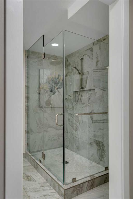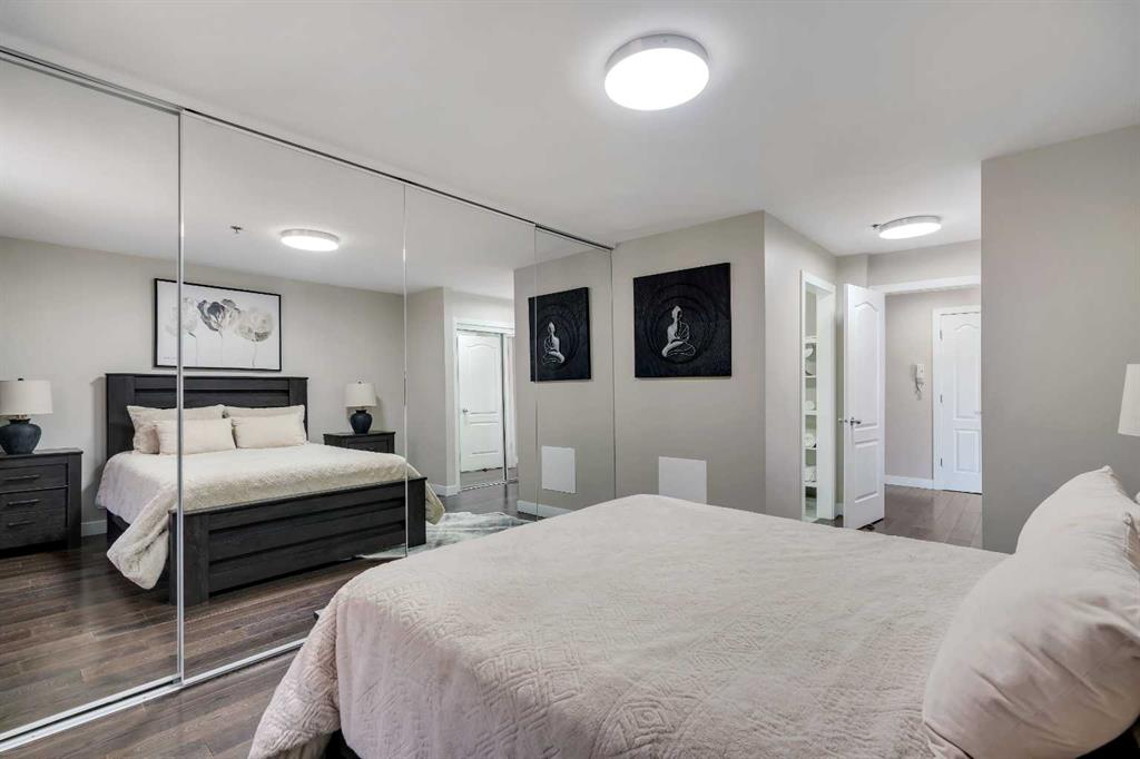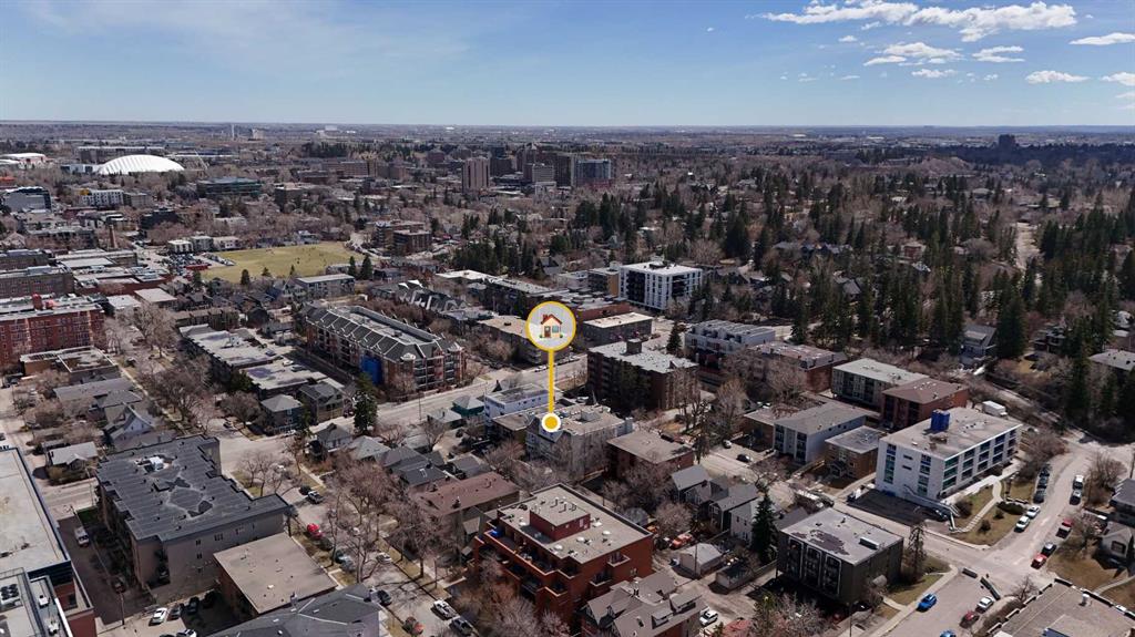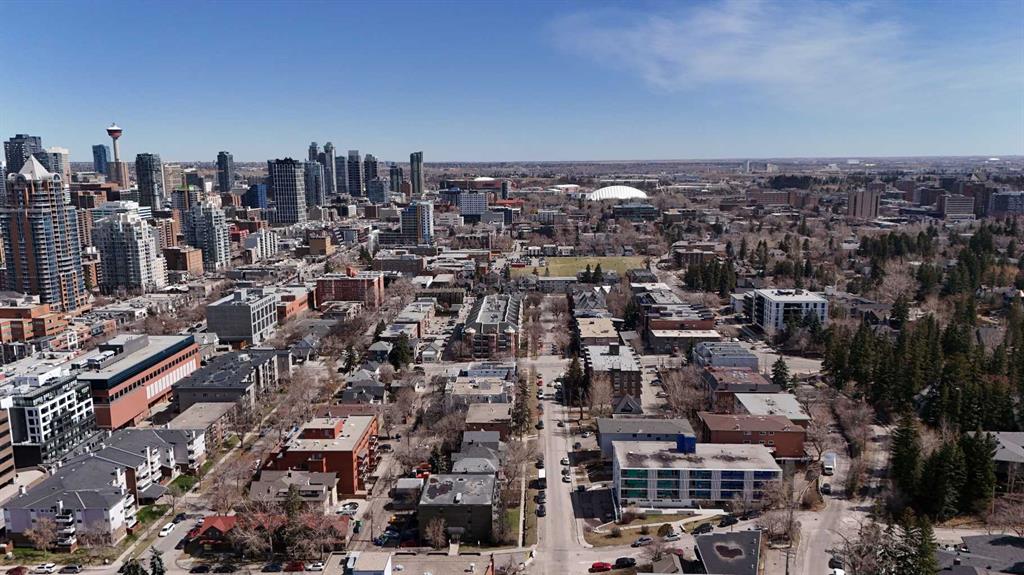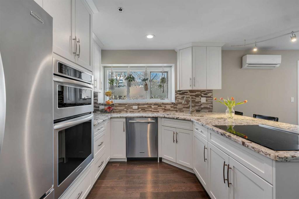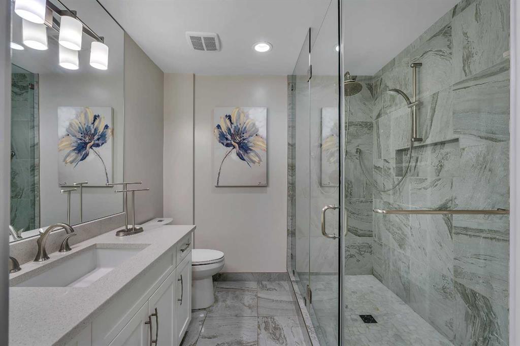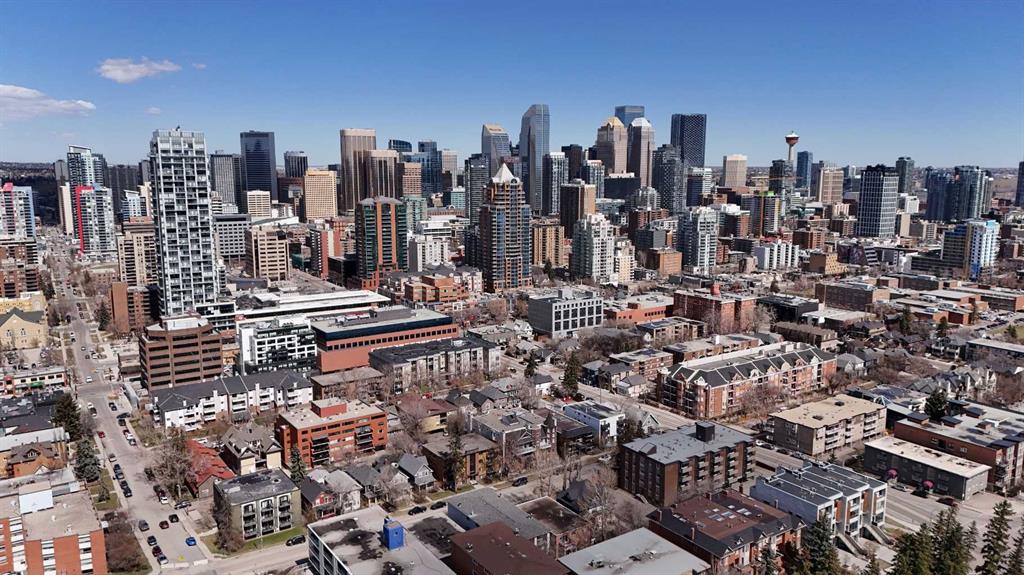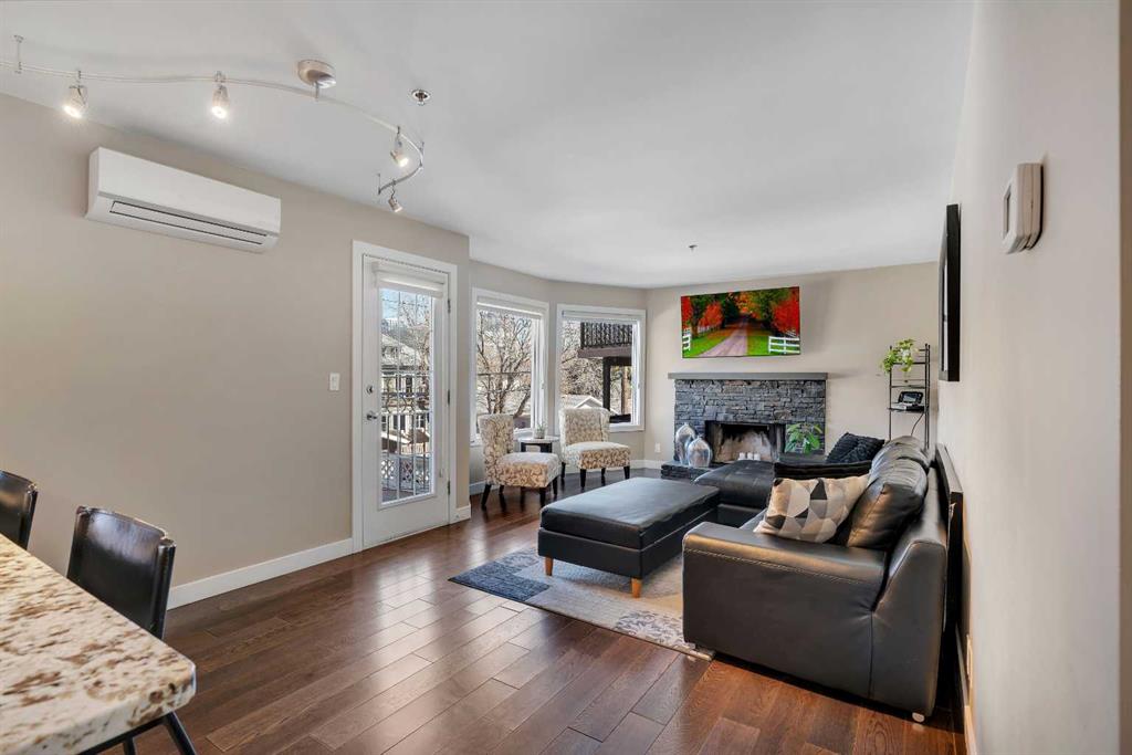 Tucked into the heart of Lower Mount Royal, this stylishly refreshed 2-bedroom, 2-bathroom condo offers an ideal blend of comfort, design, and outdoor living. Just steps from the energy of 17th Avenue, the home delivers a walkable lifestyle while still feeling private and inviting. Inside, the bright, contemporary kitchen is thoughtfully finished with crisp white cabinetry, a sleek induction cooktop with pop-up hood fan, built-in oven and microwave, and a stone backsplash that ties it all together. The open layout flows naturally into the living space, creating an easy setting for both everyday living and hosting. The primary bedroom is generously sized to accommodate a king bed and features a beautifully designed ensuite with a custom tile and glass shower, complete with a premium Grohe system and stone flooring for a spa-like feel. The second bathroom is equally well-appointed with quartz countertops, a tiled tub surround, and modern finishes throughout. One of the standout features of this home is the impressive 700 sq ft multi-level patio — a rare outdoor extension that feels more like a private courtyard. Whether it’s summer dinners, weekend lounging, or evenings with friends, this space offers exceptional versatility. Additional highlights include engineered hardwood flooring, in-floor heating for added comfort, updated windows, and a conveniently located oversized parking stall close to the building entrance. With its combination of thoughtful upgrades, generous outdoor space, and unbeatable inner-city location, this home presents a unique opportunity to enjoy the best of urban living in one of Calgary’s most sought-after neighbourhoods.
