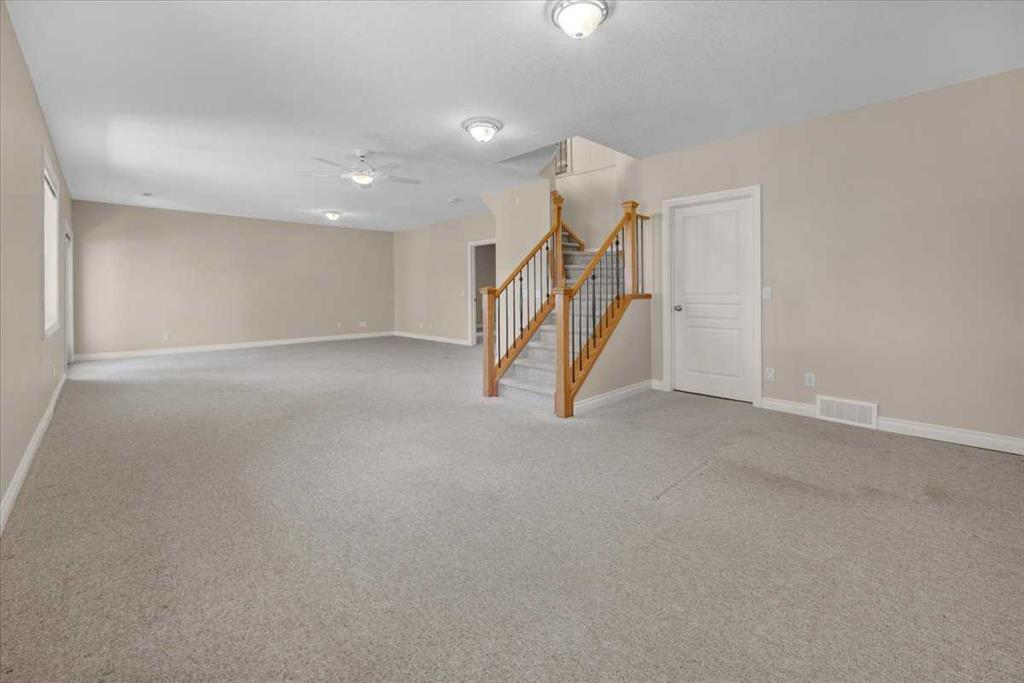 Welcome home! This well maintained 2 car garage bungalow is ready for its next owners. Located in the desirable community of Tucker Hill, this home won’t last long. Entering the home, you’ll find the deep foyer, with lots of room for a boot rack and space to welcome guests. To the right, you’ll find the first bedroom, which would function great as a naturally lit office. Across from the bedroom is the garage access, complete with a work bench and storage solutions! Further into the home, the open living room and kitchen welcomes you to relax or host. The living room comes complete with a gas fireplace, and media connections on top of the mantle. To the right of the living room, the dining room is set beside a massive window to bring in all the natural light you might need. Towards the back is the huge South West balcony, complete with a natural gas BBQ hook up. The kitchen is well laid out, clean, and provides dedicated space for a coffee bar, and space to work on either side of the electric cook top. The kitchen also hosts a dedicated pantry, and wall oven. Heading down the hallway, you’ll find the main 4 piece bathroom, with the stacked washer and dryer located behind the linen closet door. The primary bedroom provides enough space for a king sized bed, and night stands on either side, it also comes complete with a Walk In Closet, and a 4 Piece Ensuite. Downstairs, the recreation room is ready for however you want to set it up, it has enough space for a pool table on one side, and a dry bar on the other. You can set it up however you like, the possibilities are limitless. You’ll also find another 4 piece bathroom, and the 3rd bedroom, which comes with another Walk In Closet. There is also plenty of storage both under the stairs, and in the utility room. Complete with Air Conditioning and a gas fireplace, this home is ready for whatever season mother nature decides to throw at us next week.