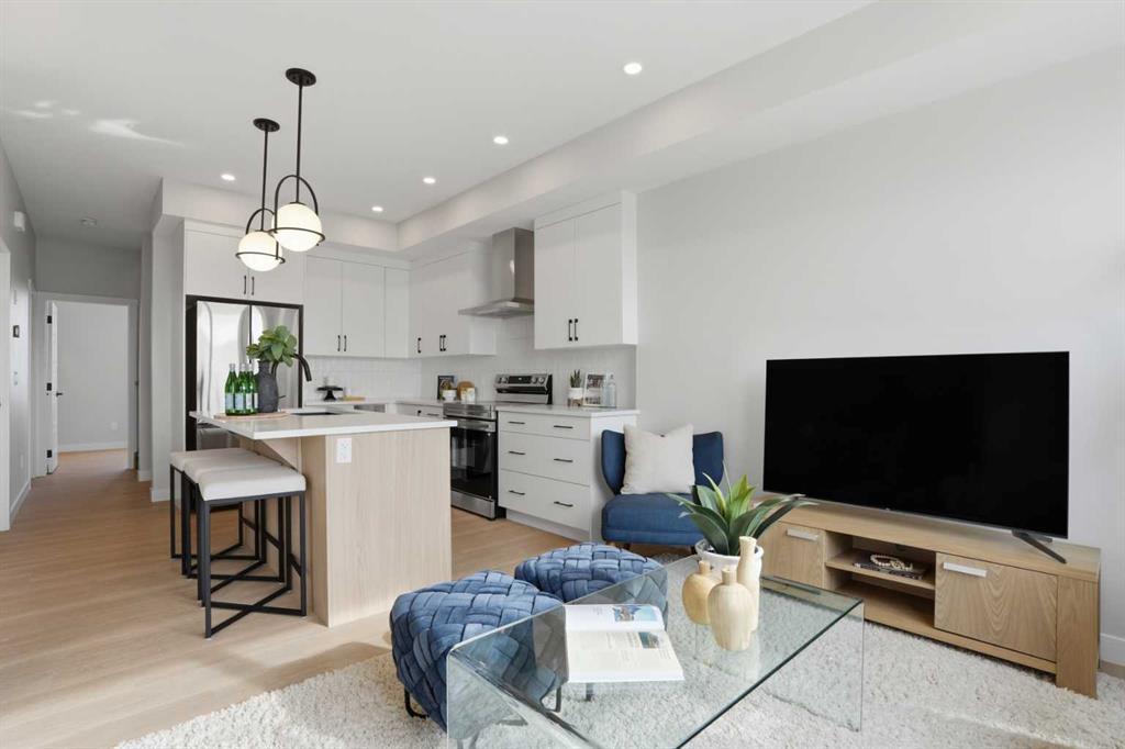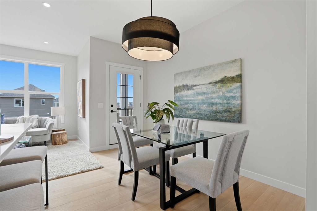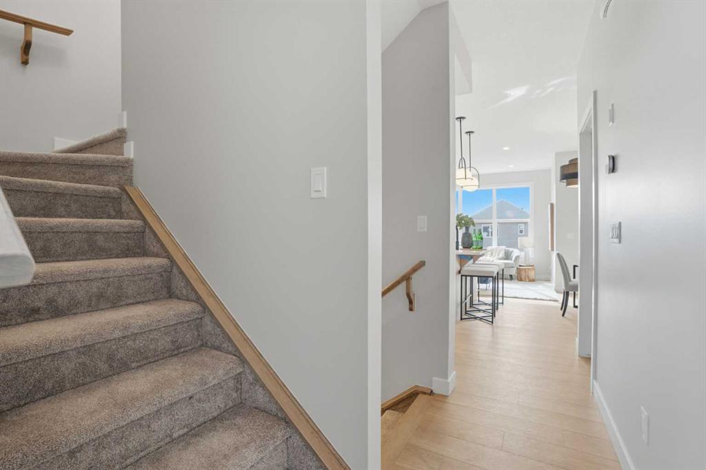 ** Brand New No Condo Fee Townhome Built by Genesis Homes ** Move-in Ready | 1,703 SqFt | 3 Beds | 3.5 Baths | End Unit | Three-Level Layout | Bonus Room | Main Floor Office | Open Concept Living | Elevated Finishes Throughout | Quartz Countertops | Designer Backsplash | Full Height Cabinetry | Stainless Steel Builder Appliance Package | Upper Level Laundry | Smart Home Features | Private Balcony | BBQ Gas Line | James Hardie Siding | Welcome to the Haley model by Genesis Homes—offering 1,703 SqFt of beautifully designed living space in a brand new end unit townhome with NO condo fees. Thoughtfully crafted for families, professionals, or investors, this three-level layout combines modern style, flexibility, and everyday function. The entry level welcomes you with a spacious foyer, convenient home office, half bathroom, and direct access to your attached garage—perfect for working from home or creating a private flex space. The second level features a bright and open-concept main living area where oversized windows fill the home with natural light. The stylish kitchen is finished with quartz countertops, full height cabinetry, designer backsplash, stainless steel appliances, and a functional island with seating that flows seamlessly into the dining area and spacious living room. Step outside to your private balcony complete with a BBQ gas line—ideal for relaxing or entertaining. This level also offers a generously sized bedroom and full bathroom, making it perfect for guests, roommates, or multi-generational living. The third level is designed for comfort and privacy, featuring two additional bedrooms including the spacious primary retreat, complete with a walk-in closet and private ensuite. A second full bathroom, upper level laundry, and a versatile bonus room complete the top floor—ideal for a media space, playroom, or additional lounge area. Finished with durable James Hardie siding and equipped with smart home features, this home offers style, convenience, and peace of mind. Located just moments from essential amenities and nestled close to a picturesque park, you’ll enjoy easy access to shops, dining, and outdoor recreation. Take in spectacular mountain views and sunsets while enjoying the nearby pathways and green space. Don’t miss your opportunity to own this stunning Haley model—book your showing today!
