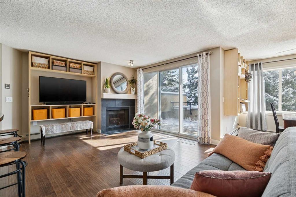 Welcome to #3 121 Village Hts SW, located in the established News on Broadcast Hill complex. Located on the second-level, this 2 bedroom space is super cute. The main area features an open kitchen with quartz counters and an island eating bar, which overlooks the living room with a wood burning fireplace and the dining area that can be used as an office or second seating area if you don’t need a formal eating space. New engineered hardwood flooring were installed in 2019, and a new dishwasher in 2020. In 2022, the bedroom windows were replaced with new Lux units, and being on the second level, the large balcony is extremely private. The primary bedroom features a 3 piece ensuite, and there is a main 4 piece bath for the second bedroom and guests. Parking is in the heated parkade that is on the same level as this home, so you never need to use stairs if you don’t want to. The building was upgraded with the Telus optical network, providing excellent high-speed internet. The on site facilities are world class with an indoor pool, hot tub, gym, tennis courts, and a community hall available for event rentals. Another bonus? It’s a pet-friendly complex, and condo fees cover heat, water, insurance, landscaping, snow removal, and waste removal - leaving electricity as your only utility bill. For more details, and to see our 360 virtual tour, click the links below.