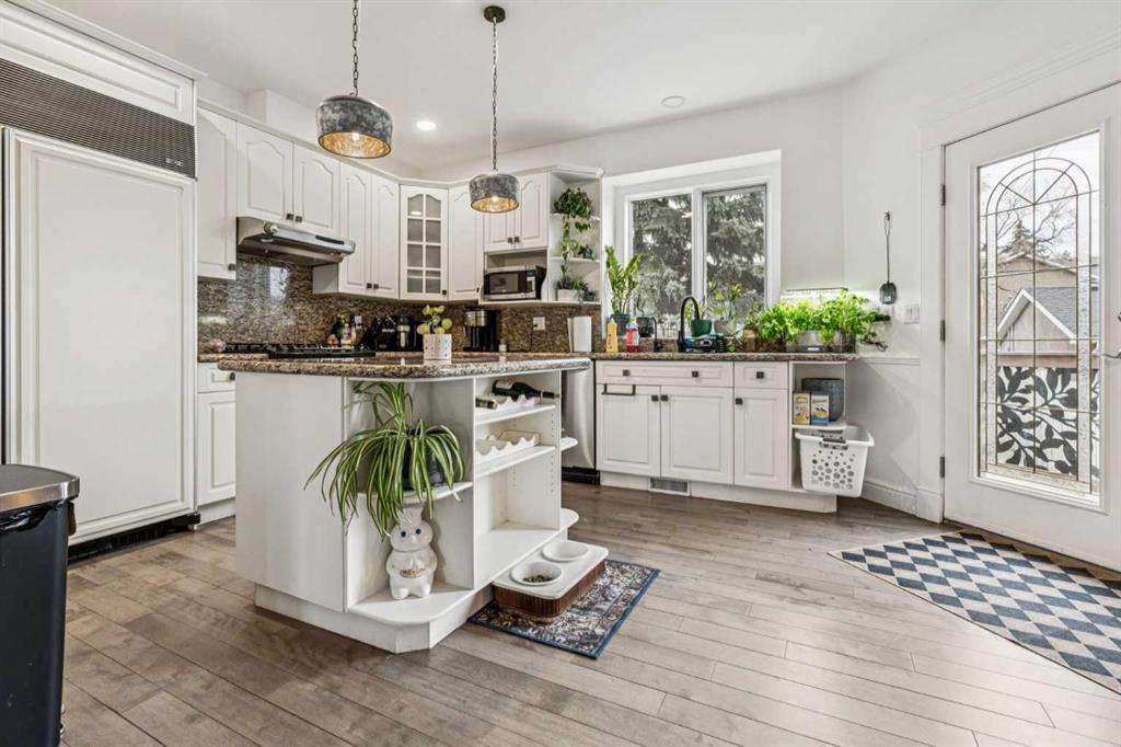 Architecturally distinctive and thoughtfully appointed, this impressive West Hillhurst home offers stylish finishings, generous living space, and a sunny south-facing backyard designed for both everyday living and easy entertaining. Hardwood flooring flows throughout the main and upper levels, creating a warm and inviting feel from the moment you step inside. The main floor features a spacious living room with a gas fireplace, formal dining area, convenient powder room, and a well-appointed kitchen complete with granite countertops, panelled Sub-Zero fridge, stainless steel appliances, large pantry, and a bright breakfast nook with access to a new south-facing deck.