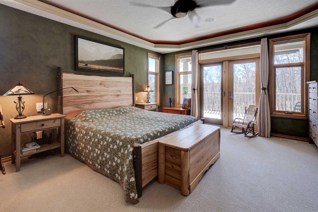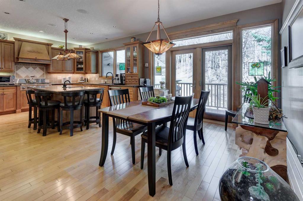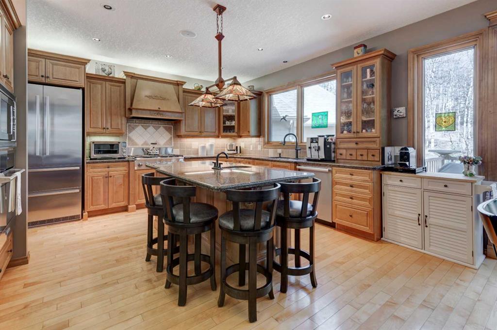 Nestled in the woods this wonderful home delivers serene nature settings out of every window. The custom maple front door welcomes you to enjoy bungalow style living with the primary bedroom on the main floor, two additional bedrooms upstairs as well as a 4th in the walk out level. Open and expansive soaring two storey high living room ceiling invites the light to flow into this fabulously comfortable room. Cozying up around he beautiful stone fireplace gives cold winter evenings new meaning. A cooks delight the beautifully appointed kitchen is equipped with high end appliances including a Liebherr built in fridge, 6 burner Dacor gas cooktop and range hood with makeup air system. Expansive sit up island is a great gathering place for the family. Retreat to the primary bedroom where relaxation is at it's upmost in your spa like ensuite featuring large vanity, double sinks with gorgeous tree etched mirrors, soaker tub, water closet and custom designed shower. Step outside your bedroom door onto the deck and enjoy the last bits of daylight or a coffee before you start your day. Upstairs the two bedrooms have ceilings that give a sense of architectural embrace. The loft area makes a perfect home office, homework area, library or anything else that suits your lifestyle. The lower level finishes the package with a walk out basement, family room with another fireplace to snuggle around, media room, rec area, 4th bedroom and bathroom. Outdoor enjoyment is never ending with decks hugging the south side of the home looking out over your own private yard and forest. If you prefer the north side there is a deck there too! The south deck is new with engineered beams, Duradek and finished off with custom powder coated Aluminum Railings. All new Lux doors and windows with triple Pane Low E SQ Argon Gas. New garage doors and openers. Viessman Boiler with Radiator panels on the main level, in floor heat in the basement and high efficiency furnace upstairs. Malarky Legacy Shingles with a 50 year warranty. So many features including, power sun blinds on the deck and window blinds made in Switzerland. Well designed heated SHOP with third bay equipment garage perfect for a tractor, trailer or motorhome. Just a short drive from the City and you will be home. 10 minutes to the hamlet of Priddis and to the Hamlet of Millarville. The location can't be beat.