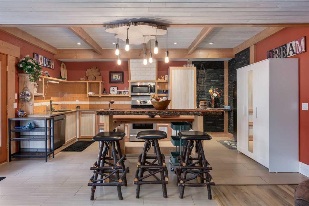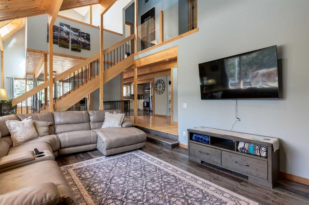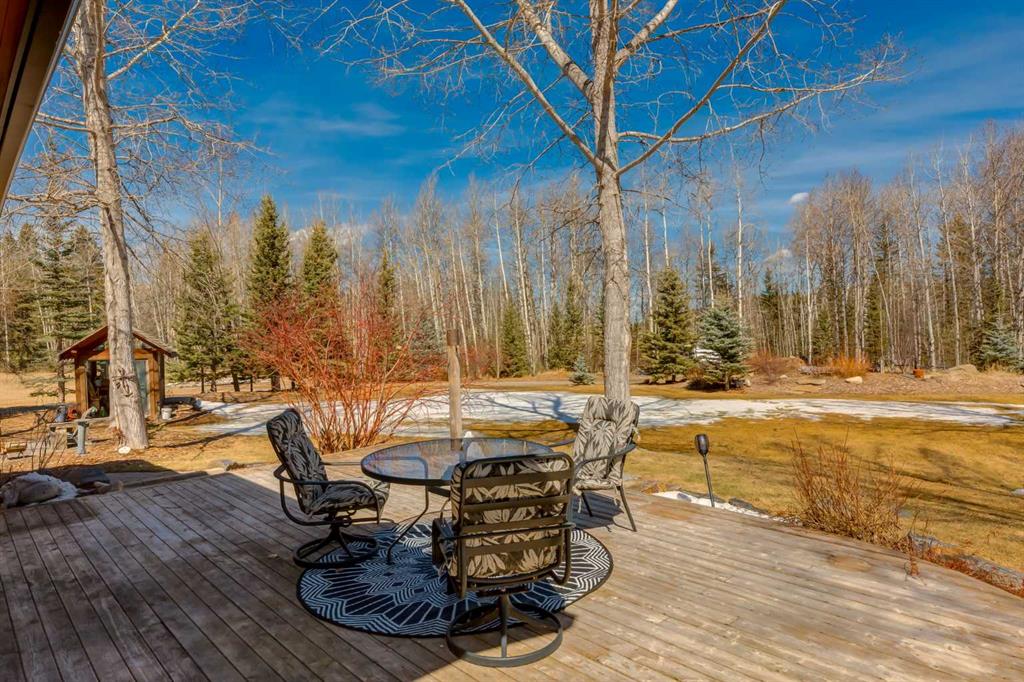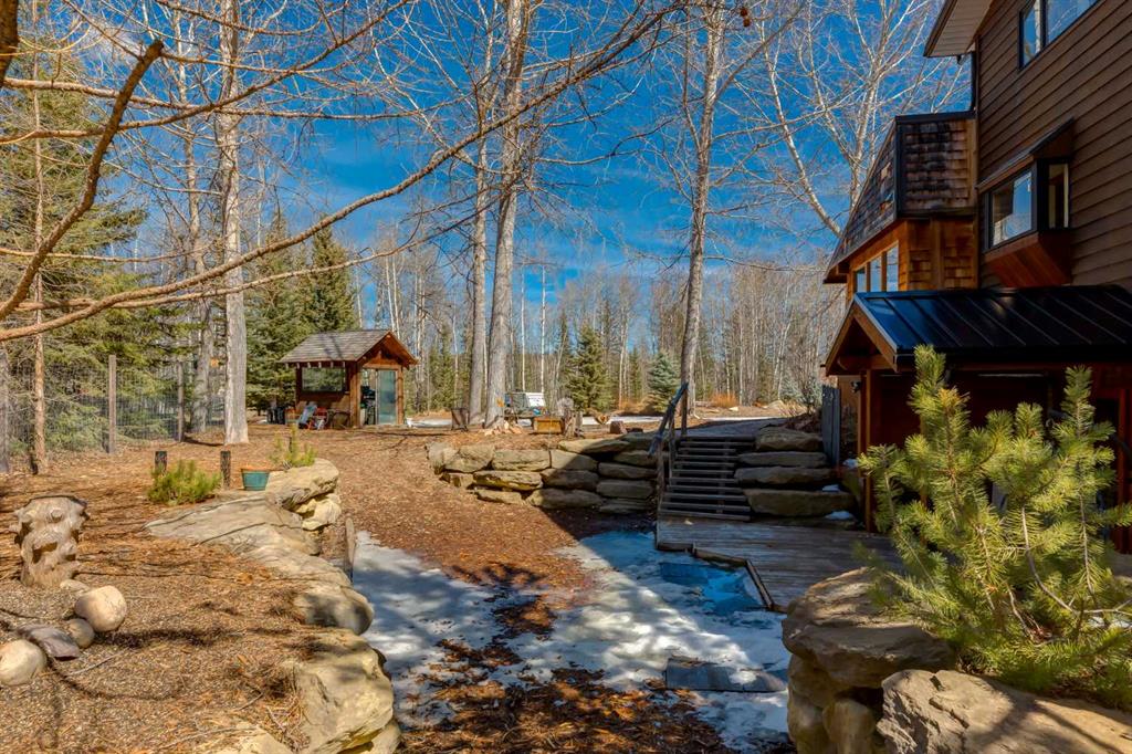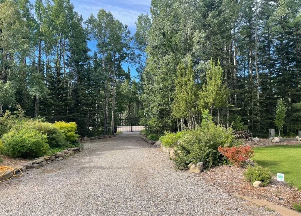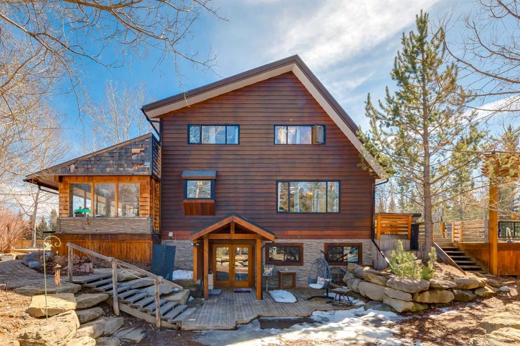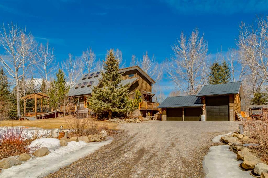 Set on 2.03 acres, this exceptional gated property offers a rare blend of privacy, space, and natural beauty, surrounded by mature trees and peaceful surroundings just minutes from everyday amenities. With over 3,600 square feet of developed living space, the home features three bedrooms and three bathrooms, providing a comfortable and functional layout for families, guests, or flexible living. The main floor showcases stunning wood beams and hardwood flooring throughout, adding warmth and character. The open concept kitchen and dining area is ideal for hosting, seamlessly connecting spaces for family gatherings and entertaining. The living room is a true highlight, featuring soaring ceilings and a striking floor-to-ceiling stone fireplace with a wood mantel, creating a warm and inviting atmosphere. The rear of the home is designed for indoor-outdoor living, offering a beautiful two-tier deck with a sunroom just off the deck. The fully finished walkout basement provides additional living space with a self-contained suite, and opens onto a private deck and patio with multiple sitting areas throughout the property. An oversized triple detached garage adds excellent functionality, with ample room for vehicles, storage, or workshop space. The grounds are meticulously maintained, featuring manicured landscaping, mature trees, and thoughtfully designed gardens that reflect years of care and pride of ownership. Located just minutes from the heart of Bragg Creek, you’ll enjoy easy access to local shops, restaurants, and unique boutiques, all while coming home to your own private acreage retreat. A truly special property that must be experienced to be fully appreciated.