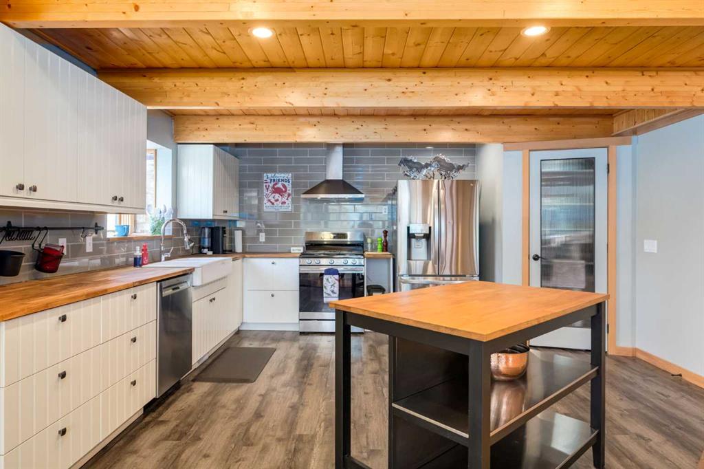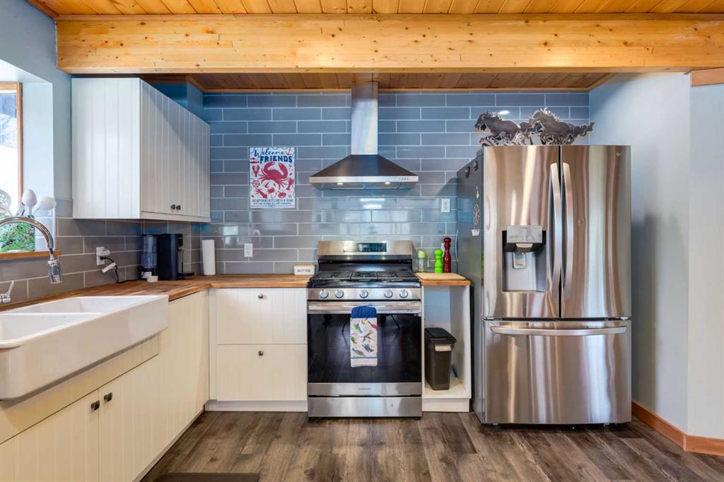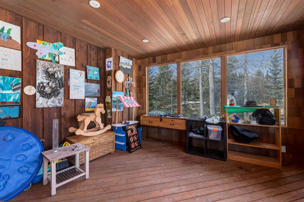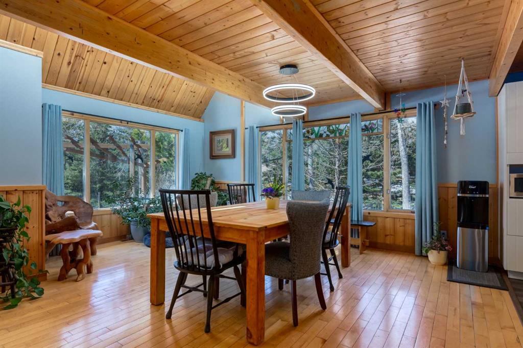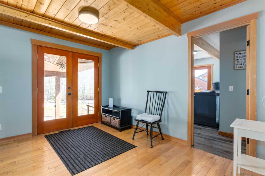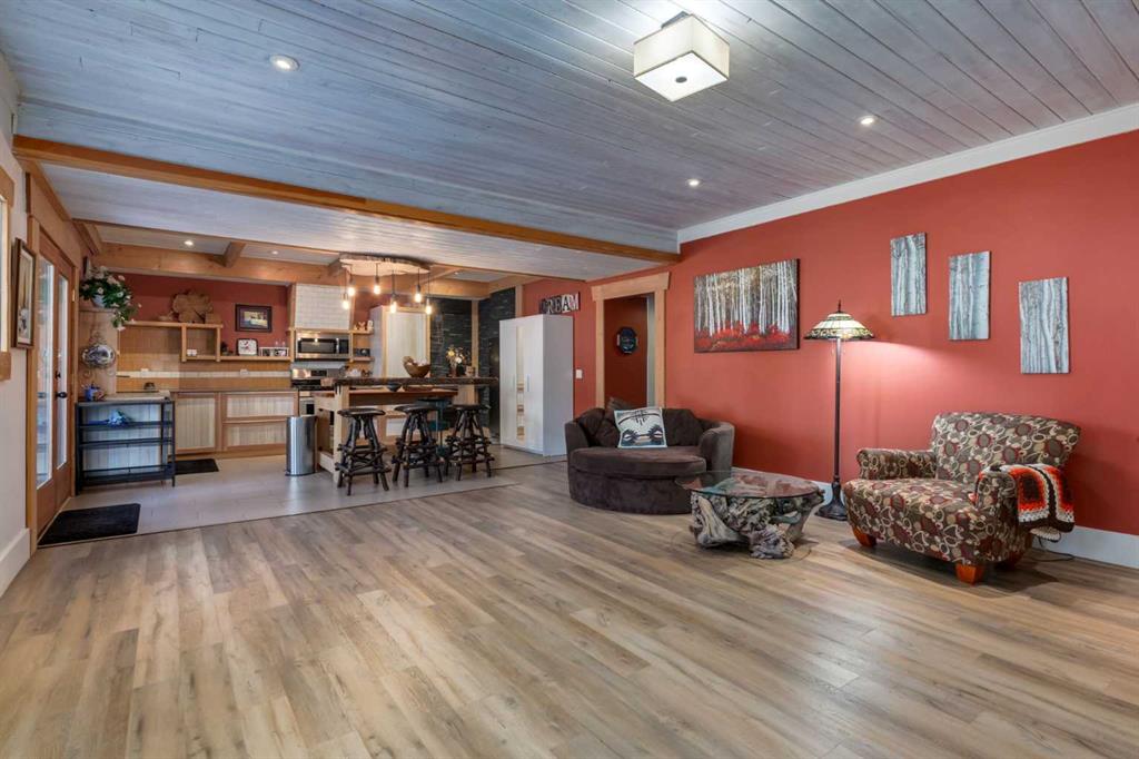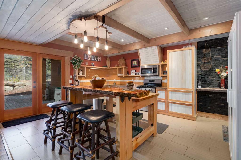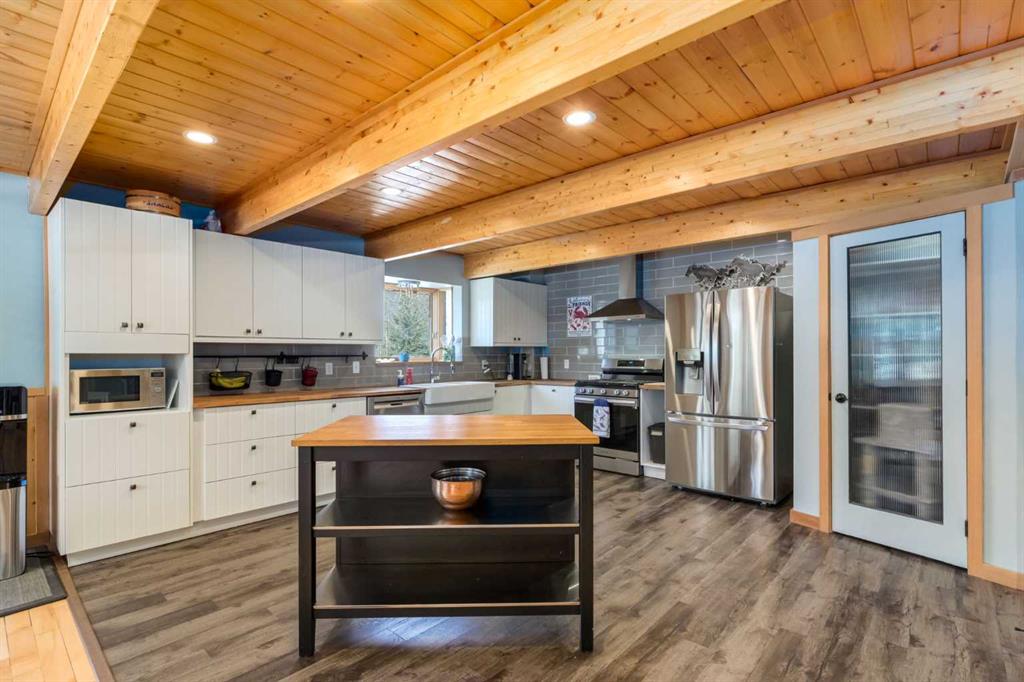 Set on 2.03 acres, this exceptional gated property offers a rare blend of privacy, space, and natural beauty, surrounded by mature trees and peaceful surroundings just minutes from everyday amenities. With over 3,600 square feet of developed living space, the home features three bedrooms and three bathrooms, providing a comfortable and functional layout for families, guests, or flexible living. The main floor showcases stunning wood beams and hardwood flooring throughout, adding warmth and character. The open concept kitchen and dining area is ideal for hosting, seamlessly connecting spaces for family gatherings and entertaining. The living room is a true highlight, featuring soaring ceilings and a striking floor-to-ceiling stone fireplace with a wood mantel, creating a warm and inviting atmosphere. The rear of the home is designed for indoor-outdoor living, offering a beautiful two-tier deck with a sunroom just off the deck. The fully finished walkout basement provides additional living space with a self-contained suite, and opens onto a private deck and patio with multiple sitting areas throughout the property. An oversized triple detached garage adds excellent functionality, with ample room for vehicles, storage, or workshop space. The grounds are meticulously maintained, featuring manicured landscaping, mature trees, and thoughtfully designed gardens that reflect years of care and pride of ownership. Located just minutes from the heart of Bragg Creek, you’ll enjoy easy access to local shops, restaurants, and unique boutiques, all while coming home to your own private acreage retreat. A truly special property that must be experienced to be fully appreciated.