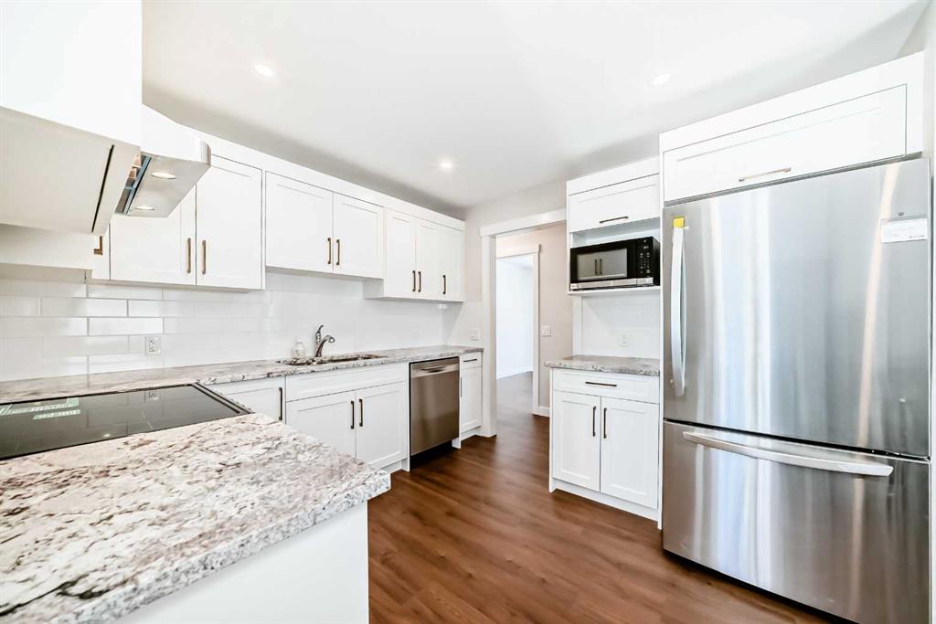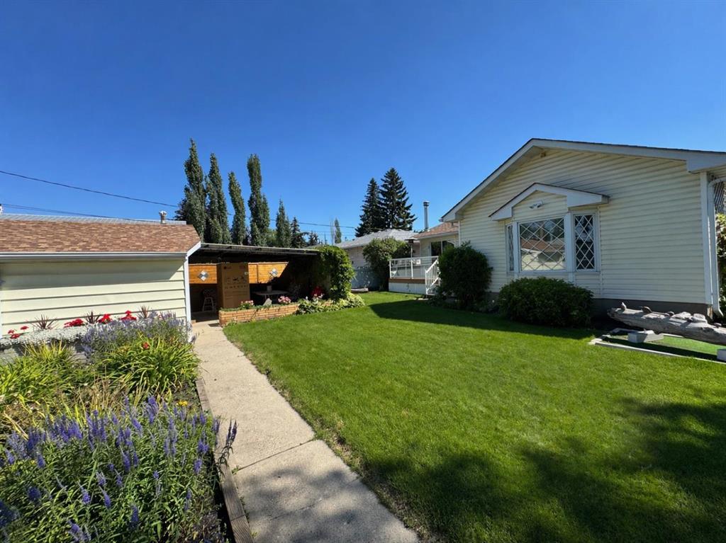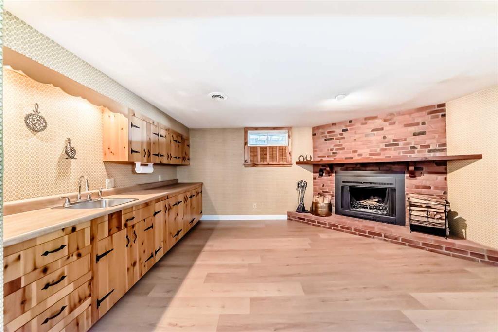 Having just undergone a comprehensive renovation, this spacious bungalow offers over 2,300 square feet of living space and feels remarkably close to a brand new home! With a new kitchen, flooring, lighting, updated wiring and electrical panel, two furnaces, hot water tank, roof shingles, and more, it is truly move-in ready. Proudly owned and enjoyed by the same family for 65 years, this home is ready to welcome its next chapter. The main level features brand new luxury vinyl plank flooring and a bright, stylish eat-in kitchen with crisp white shaker cabinets, granite countertops, and stainless steel appliances. The adjoining flex space has served as a formal dining room for decades but can easily adapt to suit your needs. At the front of the home, the living room is filled with natural light from a large east-facing window, creating the perfect setting to enjoy your morning coffee by the cozy gas fireplace. Three bedrooms complete the main floor, all served by a five-piece bathroom with dual sinks. One of the bedrooms includes a sliding door with access to the composite deck, where you can relax under the natural gas heater and take in views of the many birds that visit the backyard. The lower level offers a generous family room anchored by a charming brick wood-burning fireplace, along with a wet bar/summer kitchen featuring a beverage fridge and ample cabinetry. There is also a guest room, a full bathroom, laundry room, and plenty of storage space. Outside, the large west-facing backyard is mature and beautifully maintained, complete with underground irrigation, garden beds, and a covered patio with custom lighting and lush vines - the ideal place to spend summer evenings! The oversized single garage accommodates one vehicle and includes space for tools and a workbench, and the attached, fully finished motorcycle garage offers a secure spot for your prized ride. A large parking pad provides room for RV or trailer storage, and the custom-built tool shed includes an overhead door with electric opener. Located just steps from George Moss Park, you will enjoy access to tennis courts, walking paths, a skate park, pump track, and baseball diamond. The home also offers convenient access to schools, shopping, restaurants, transit, and major roadways. A future Green Line LRT stop planned just a few blocks away adds even more long-term value to this already appealing location. Call your favorite Realtor to come see it for yourself, you will not be disappointed!