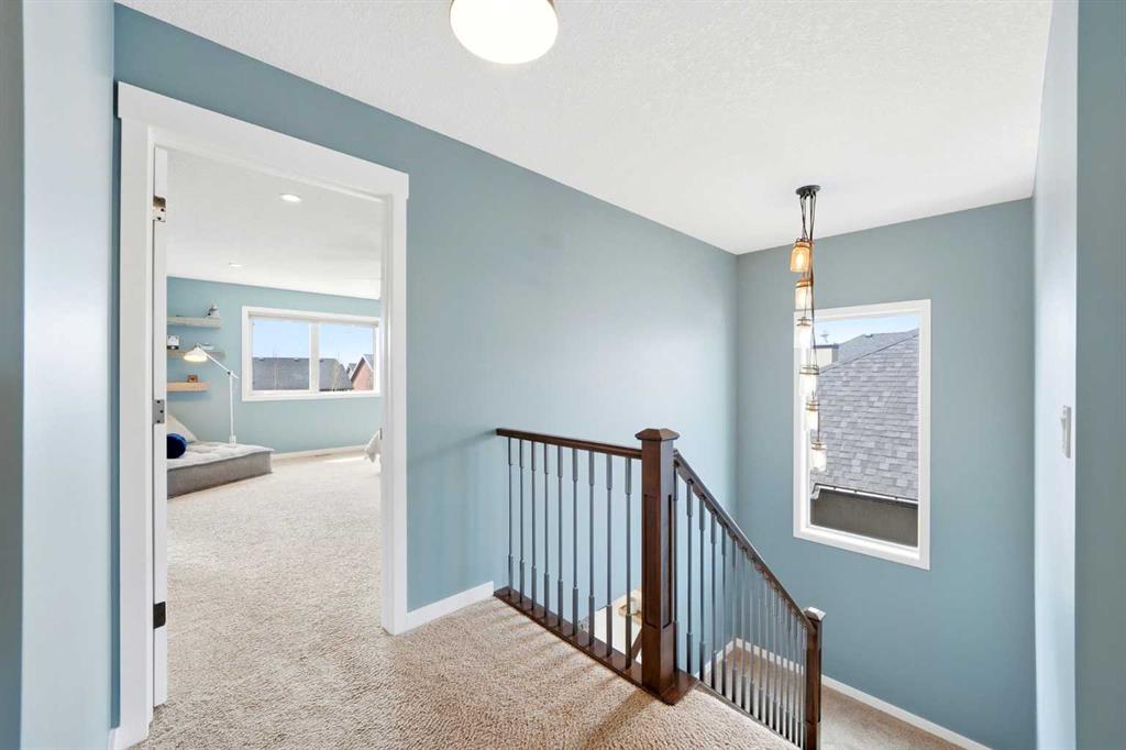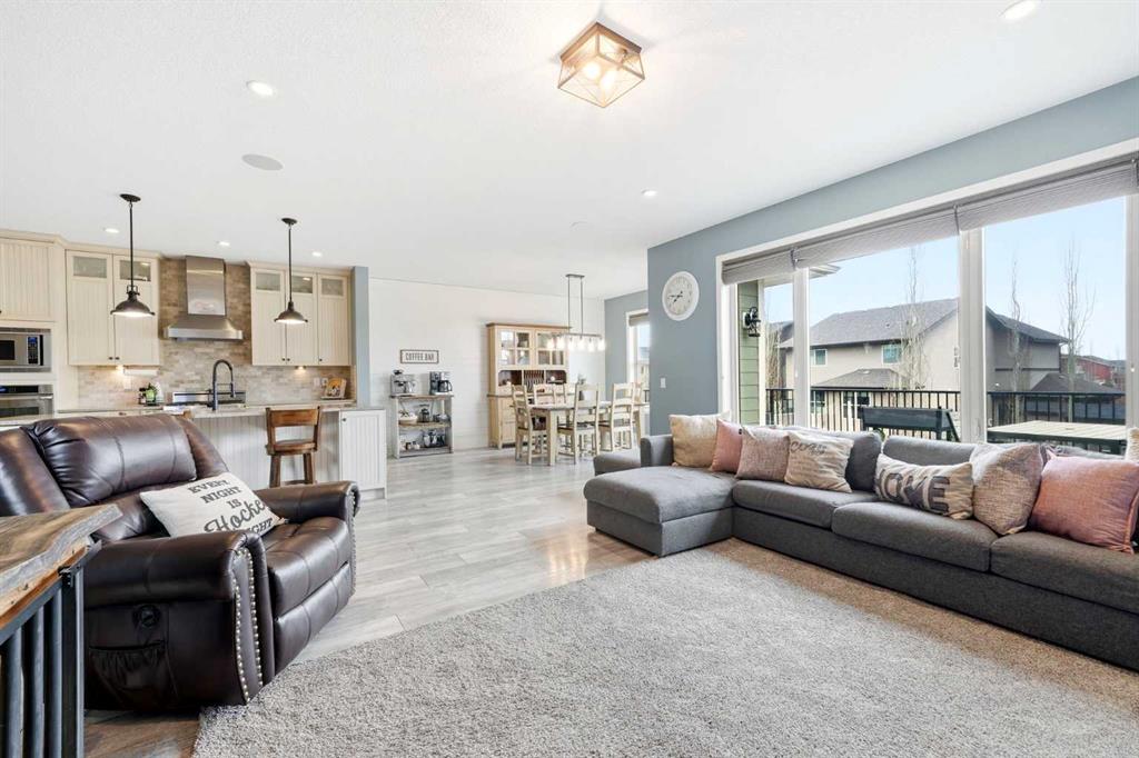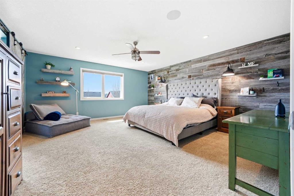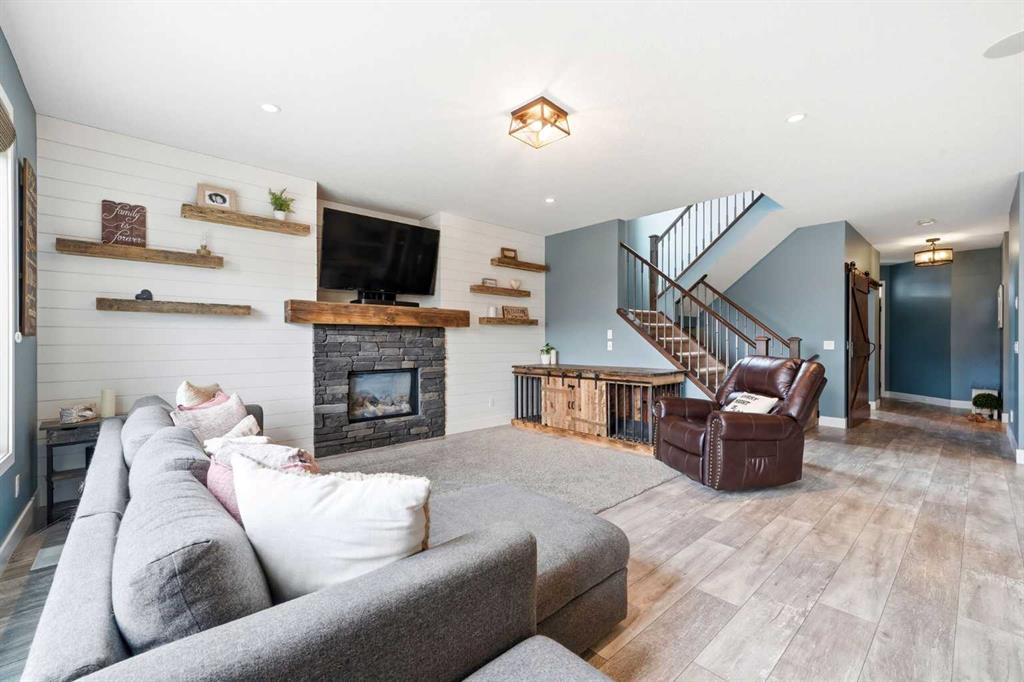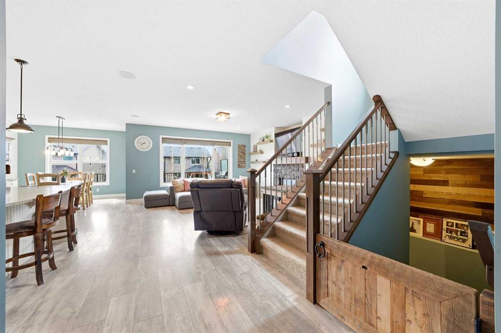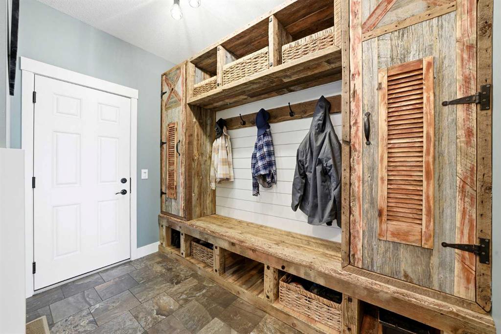Welcome to 6 Ranchers Manor, tucked into a quiet cul-de-sac, this meticulously maintained 2-storey walkout offers over 2600 sqft of thoughtfully designed living space and a rare heated 3-car garage with tandem bay (functionally 4-car). Built in 2014, this home stands out for its custom craftsmanship and elevated finishes throughout. The main floor features a dedicated front office with sliding barn door, a spacious living and dining area, and a stunning kitchen complete with quality appliances, oversized island, and a large walk-through pantry. What truly sets this home apart are the custom barnwood details, beautifully integrated on the fireplace feature wall, in the pantry, laundry room, and carried into the primary suite. The mudroom is a showstopper with custom-built bench, storage, and hooks, while a handcrafted barnwood dog gate adds both charm and function. Upstairs, you’ll find three generously sized bedrooms and a bonus room. The primary retreat is designed for comfort, featuring a large soaker tub, separate steam shower, dual sinks, heated bathroom floors and a convenient walk-through to the laundry room. The walkout basement is unfinished and ready for your vision, ideal for growing families or future value-add. Freshly painted in a warm, modern blue tone, this home also offers air conditioning and is surrounded by incredible neighbours, something you can’t renovate into a property. This is a home with personality, craftsmanship, and space, ready for it's new family.
