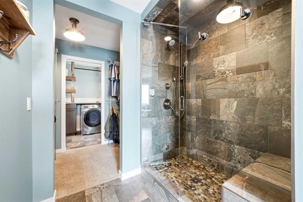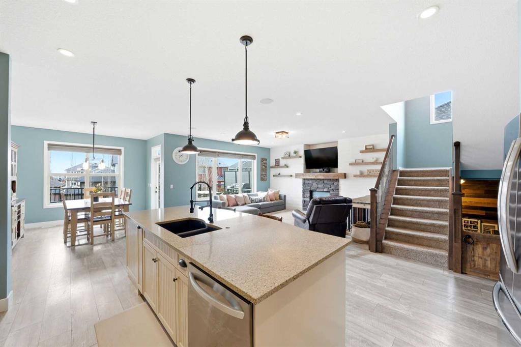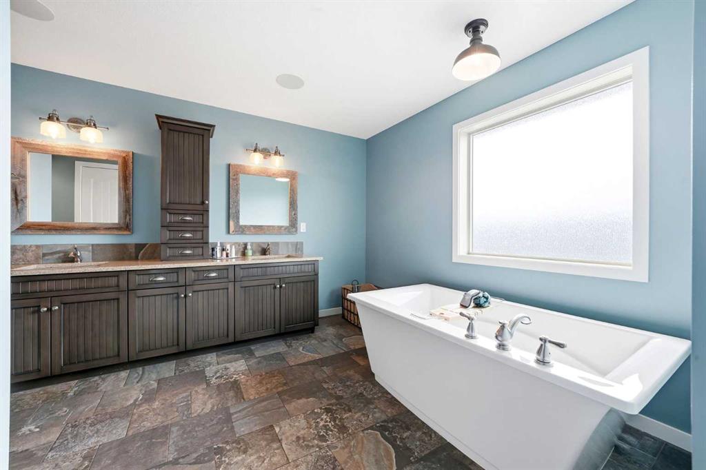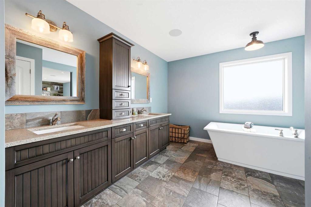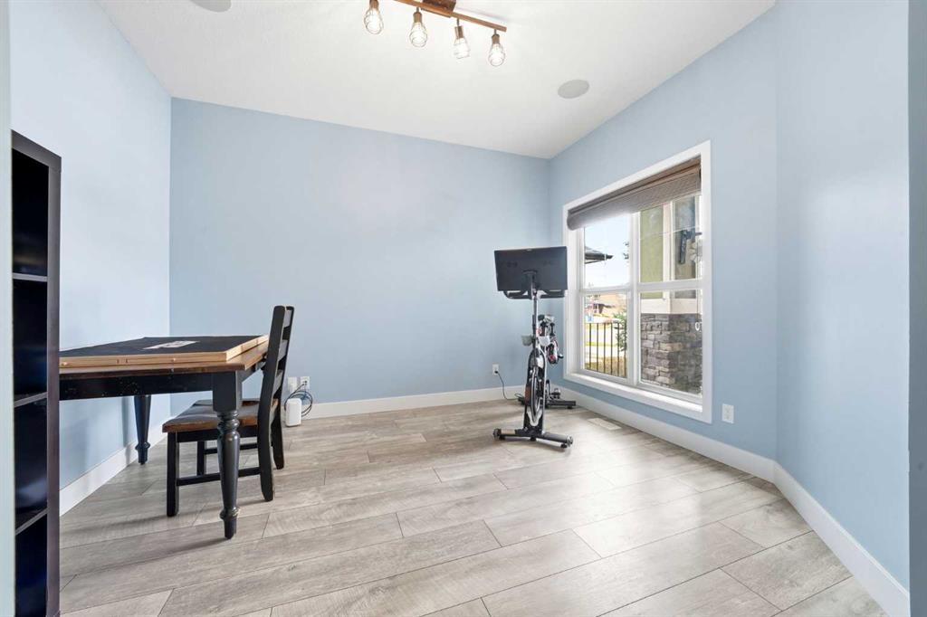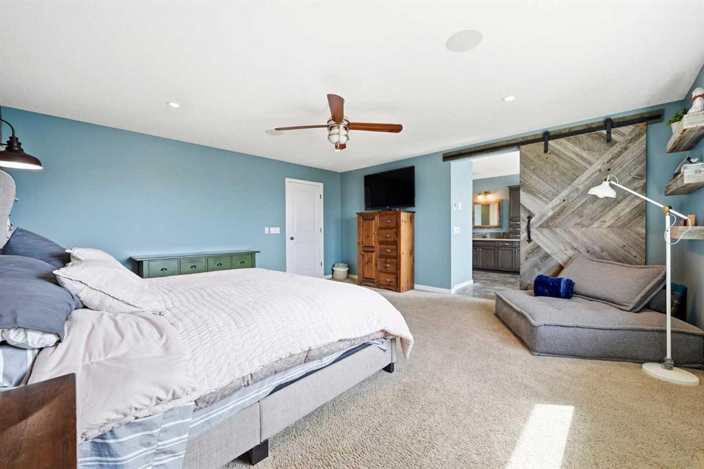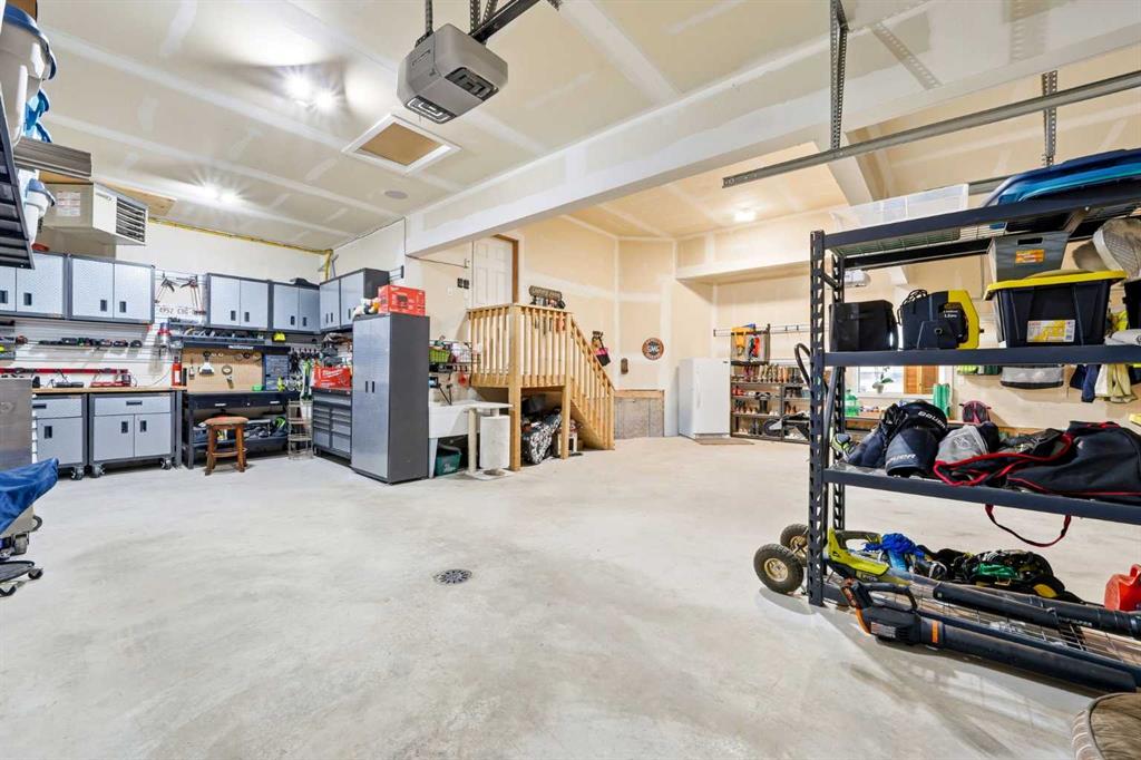 Welcome to 6 Ranchers Manor, tucked into a quiet cul-de-sac, this meticulously maintained 2-storey walkout offers over 2600 sqft of thoughtfully designed living space and a rare heated 3-car garage with tandem bay (functionally 4-car). Built in 2014, this home stands out for its custom craftsmanship and elevated finishes throughout. The main floor features a dedicated front office with sliding barn door, a spacious living and dining area, and a stunning kitchen complete with quality appliances, oversized island, and a large walk-through pantry. What truly sets this home apart are the custom barnwood details, beautifully integrated on the fireplace feature wall, in the pantry, laundry room, and carried into the primary suite. The mudroom is a showstopper with custom-built bench, storage, and hooks, while a handcrafted barnwood dog gate adds both charm and function. Upstairs, you’ll find three generously sized bedrooms and a bonus room. The primary retreat is designed for comfort, featuring a large soaker tub, separate steam shower, dual sinks, heated bathroom floors and a convenient walk-through to the laundry room. The walkout basement is unfinished and ready for your vision, ideal for growing families or future value-add. Freshly painted in a warm, modern blue tone, this home also offers air conditioning and is surrounded by incredible neighbours, something you can’t renovate into a property. This is a home with personality, craftsmanship, and space, ready for it's new family.