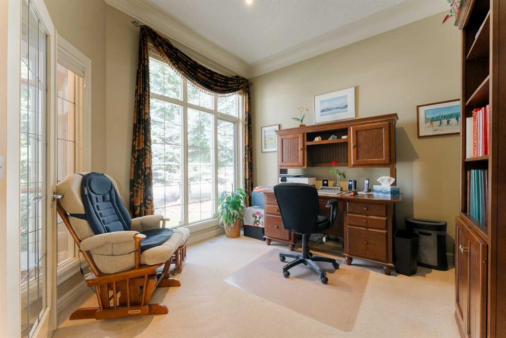 The main floor primary retreat captures the views and includes a spacious 5-piece ensuite with jetted tub, separate shower, and private water closet. A front office, convenient laundry/mudroom area off the garage entry, and powder room complete the main level.