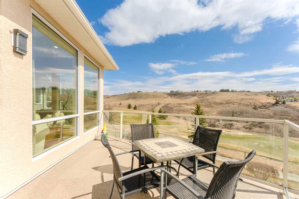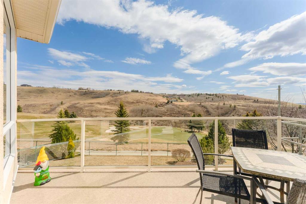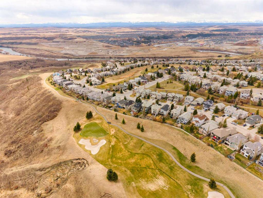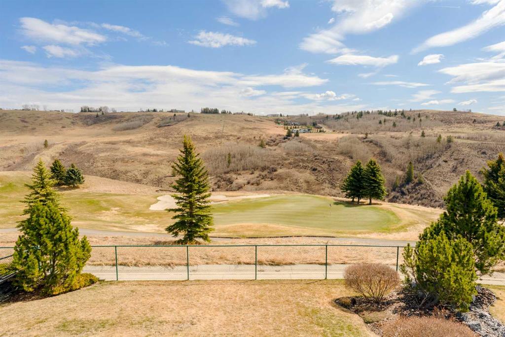Perched directly above the 13th green of Gleneagles Golf Course, this rare walkout bungalow offers front-row views of the manicured green, sweeping valley landscape, frequent wildlife sightings, and the quiet lifestyle that makes Gleneagles one of Cochrane’s most sought-after communities. Enjoy golf course and valley views from your deck, great room, primary suite, and walkout lower level.
