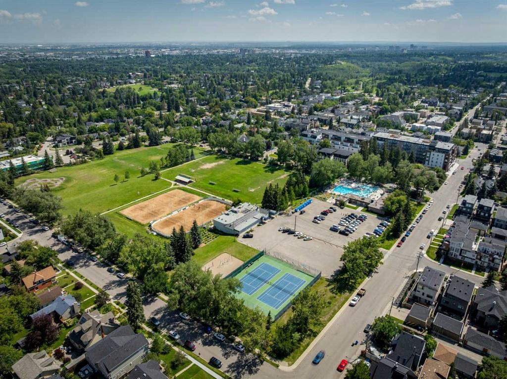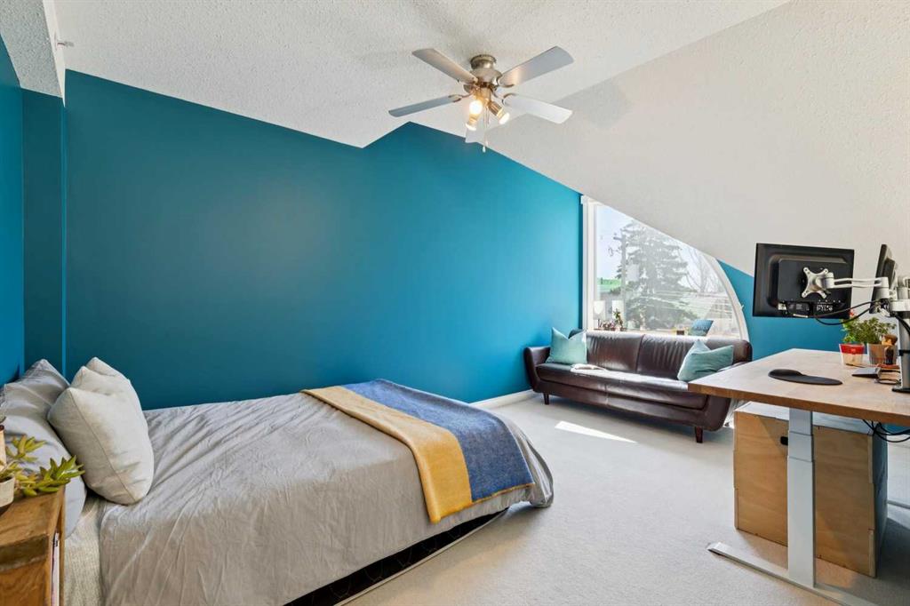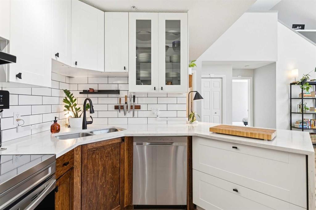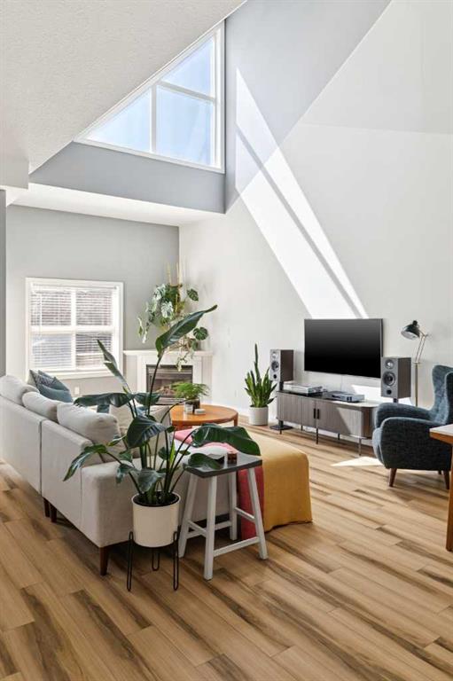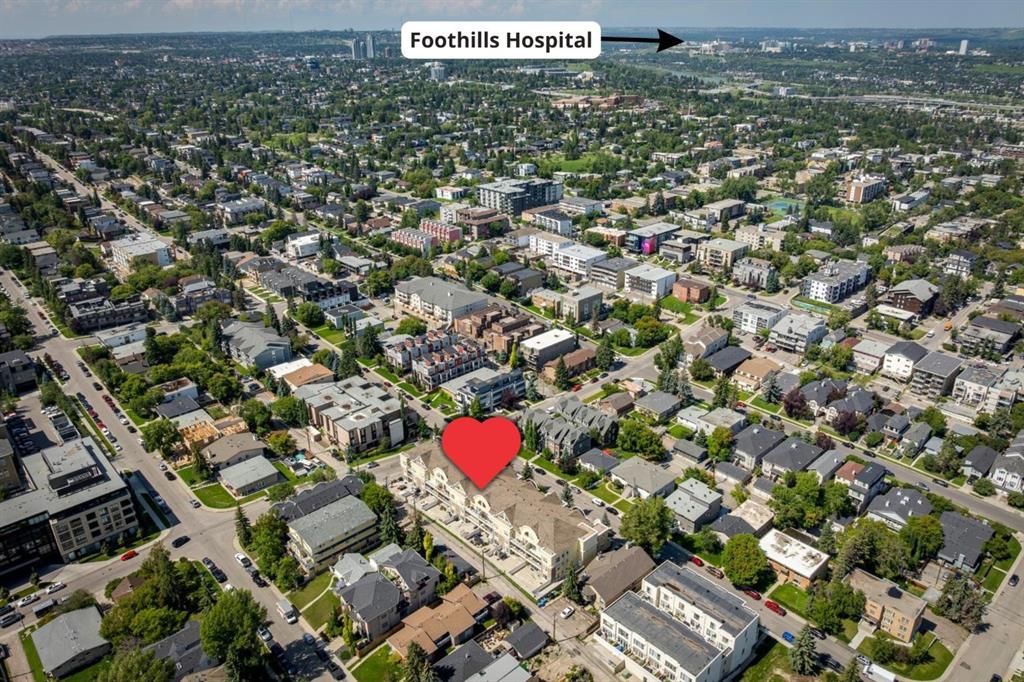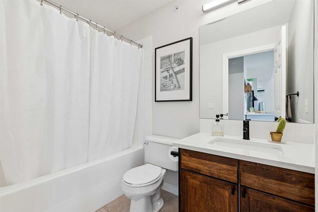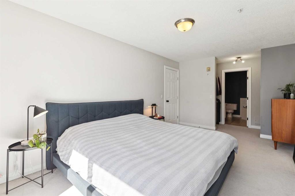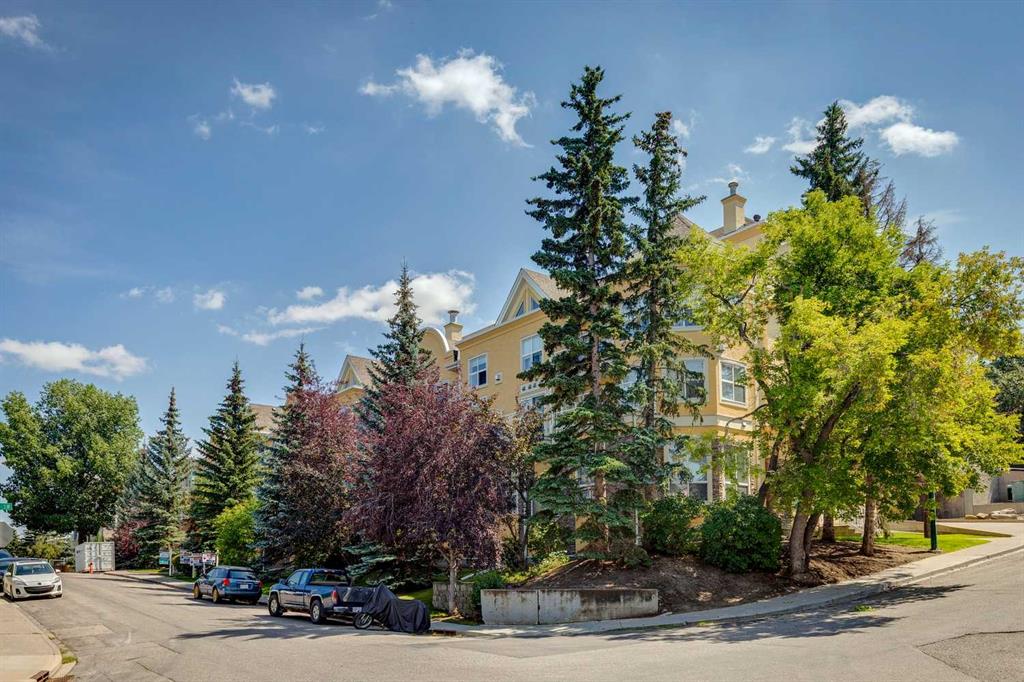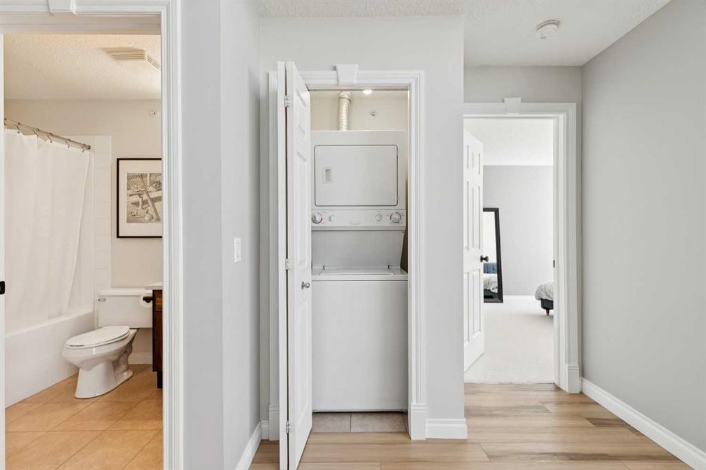 Welcome to this gorgeous 1,241 sqft TOP FLOOR 2-storey condo in the heart of vibrant Marda Loop, offering 1 spacious bedroom with a walk-through closet, 2 full bathrooms (one is an ensuite), a versatile loft that could be used as a second bedroom, in-floor heat, and a long private balcony! Soaring 2-storey ceilings - peaking at an impressive 25 feet - and expansive windows flood the space with natural light, creating an open, airy feel throughout. Step inside to discover thoughtful updates throughout, including a fully updated kitchen, bathrooms, paint, flooring, and lighting. The sleek kitchen features stainless steel appliances, updating cabinetry, a breakfast bar, quartz counters, in-floor heat, and opens to a huge living room with a beautiful gas fireplace and a dining area, perfect for entertaining. Luxury vinyl plank flooring adds warmth and durability to the space. The private primary suite is tucked away with direct access to the balcony, a walk-through closet, and a large ensuite bathroom with a corner soaker tub, separate stand-up shower, and updated vanity, sink, faucet, and light fixture. A second full bathroom near the front entry (rare for a one-bedroom home) offers a tub/shower combo and quartz counters for added flexibility, and in-unit laundry is also included. Upstairs, the bright and spacious loft provides endless possibilities for a bedroom, home office, gym, reading nook, or play area. Enjoy summer evenings on your south-facing private balcony with a gas BBQ hook-up, and take advantage of the titled underground parking stall, secure storage locker, and convenient bike storage. Located just steps from boutique shops, trendy cafés, and some of Calgary’s best restaurants, plus minutes from 17th Avenue, downtown, and fantastic recreational amenities like an outdoor pool, tennis courts, skating rink, ball diamond, and public library - just a few short blocks away! This move-in-ready home is a rare find - book your showing today!