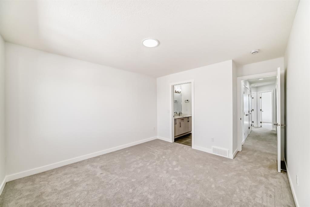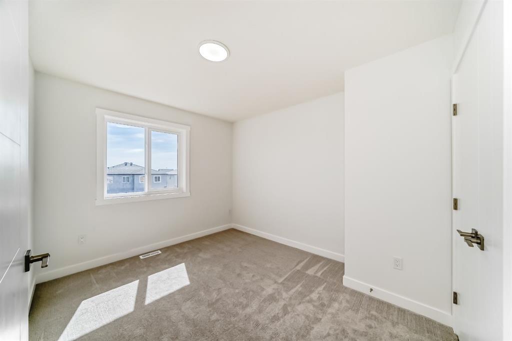 Step into this NEWLY built upgraded semi-detached home, where modern luxury and everyday functionality come together beautifully in the heart of Calgary’s vibrant new Northeast Community. Offering 4 BEDROOM and 3 FULL bathrooms, this home includes a MAIN floor bedroom with a full ensuite, ideal for elderly family members, guests, or multigenerational living. All bathrooms are finished with granite countertops and under mount sinks, reflecting quality craftsmanship throughout. This thoughtfully designed home features an open-concept main floor highlighted by a sleek contemporary kitchen with a gas line to the range, ceiling-height cabinetry offering abundant storage, and a convenient pantry. The cozy living room creating the perfect space for relaxing or entertaining. Upstairs, retreat to the spacious primary bedroom featuring a luxurious 5-piece ensuite, designed for comfort and relaxation. Two additional well-sized bedrooms and a dedicated computer/desk nook provide flexibility for family living or work-from-home needs. The full basement with 9-foot ceilings and a separate side entrance is ready for your creative vision—whether additional living space, a recreation area, or a future legal suite (subject to city approvals). Located in Calgary’s desirable new Northeast community, this home offers quick access to Stoney Trail, major roadways, schools, shopping, and all essential amenities. This vacant home is available for quick possession, allowing you to move in without delay. With meticulous attention to detail and modern finishes throughout, this property truly represents the pinnacle of contemporary living.