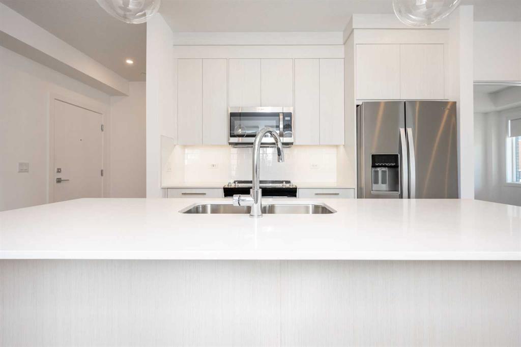 This unit stands out immediately with large windows in every bedroom, flooding the entire home with natural light something rarely found in condo living. The open concept layout is both functional and stylish, all flowing together by a modern kitchen featuring quartz countertops, full-height cabinetry, stainless steel appliances, soft-close drawers, and an eat-up bar.