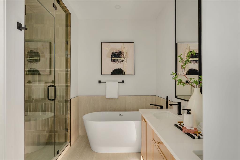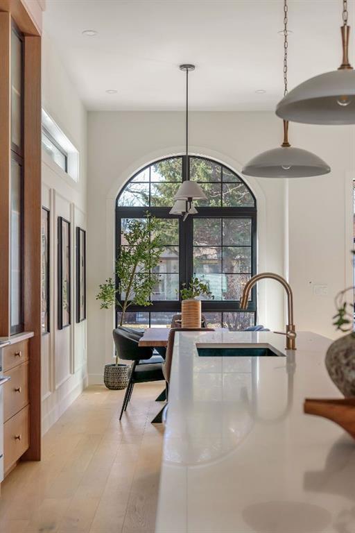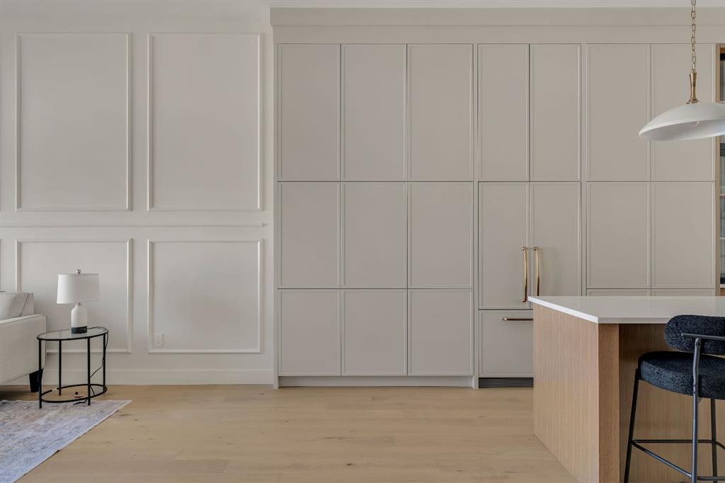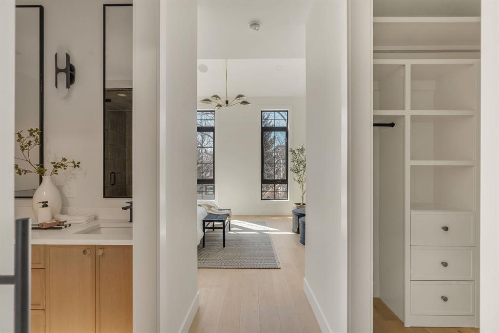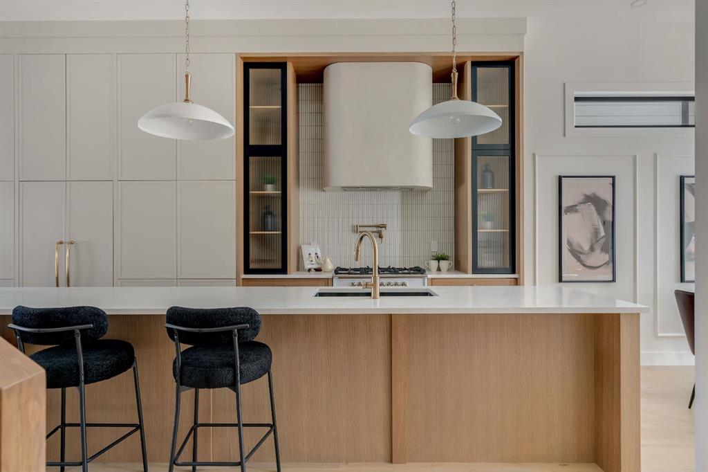 Located just one block from Confederation Park, this beautifully crafted home offers over 2,770 sq ft of refined living space designed with both style and function in mind. The main level features soaring 11-foot ceilings, rich hardwood flooring, a formal dining area with custom wainscoting, large floor to ceiling windows, and a chef-inspired kitchen anchored by a striking 15-foot island, complete with built-in Fisher & Paykel appliances, quartz countertops, an oak island, under-cabinet lighting, a curved plaster hood fan, pot filler, and elegant gold and black accents. The spacious living room is highlighted by a custom plaster gas fireplace with arched oak built-in shelving, while a well-designed mudroom and a designer powder room wrapped in statement wallpaper add everyday convenience and character. Upstairs, 9-foot ceilings and hardwood flooring continue throughout, leading to a stunning primary retreat with vaulted ceilings, detailed wainscoting, and a luxurious 5-piece ensuite featuring in-floor heating and a steam shower rough-in, along with two additional bedrooms, a full 3-piece bathroom, and a dedicated laundry room. The fully finished basement expands the living space with a large recreation area, office, arched wet bar, an additional bedroom, and a 3-piece bathroom. Additional highlights include rough-ins for air conditioning, ceiling speakers, security system, and exterior cameras, along with upgrade options available. Ideally located near parks, schools, shopping, SAIT, the University of Calgary, Foothills Medical Centre, Alberta Children’s Hospital, and offering quick access to the LRT, Highway 1, and Deerfoot Trail, this home combines luxury living with exceptional convenience, with exterior landscaping to be completed as weather permits. Call today to book your private tour!