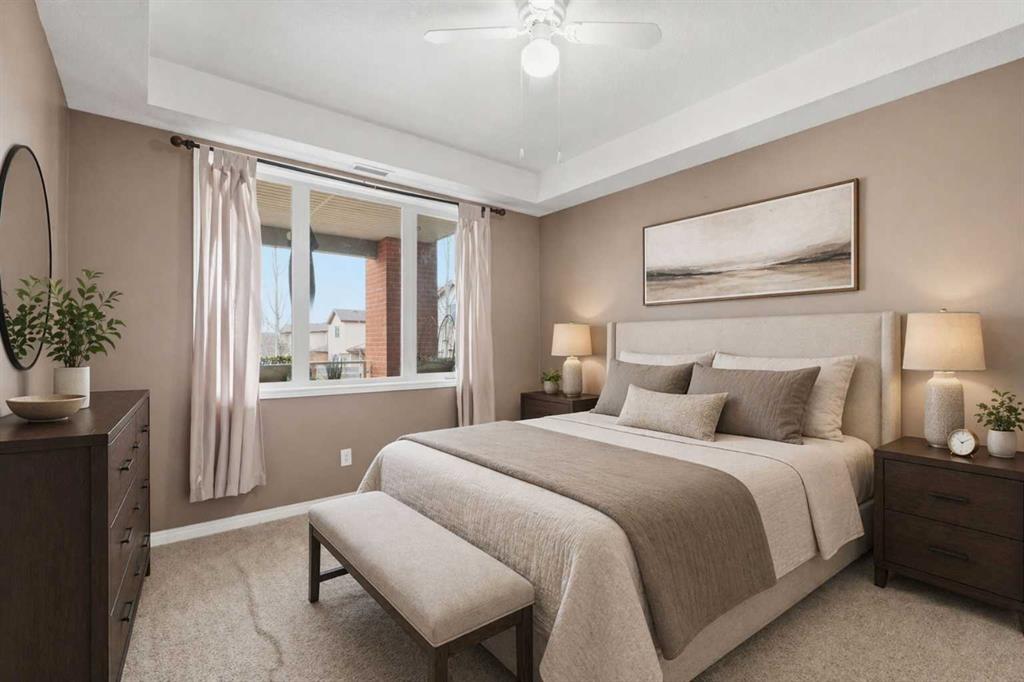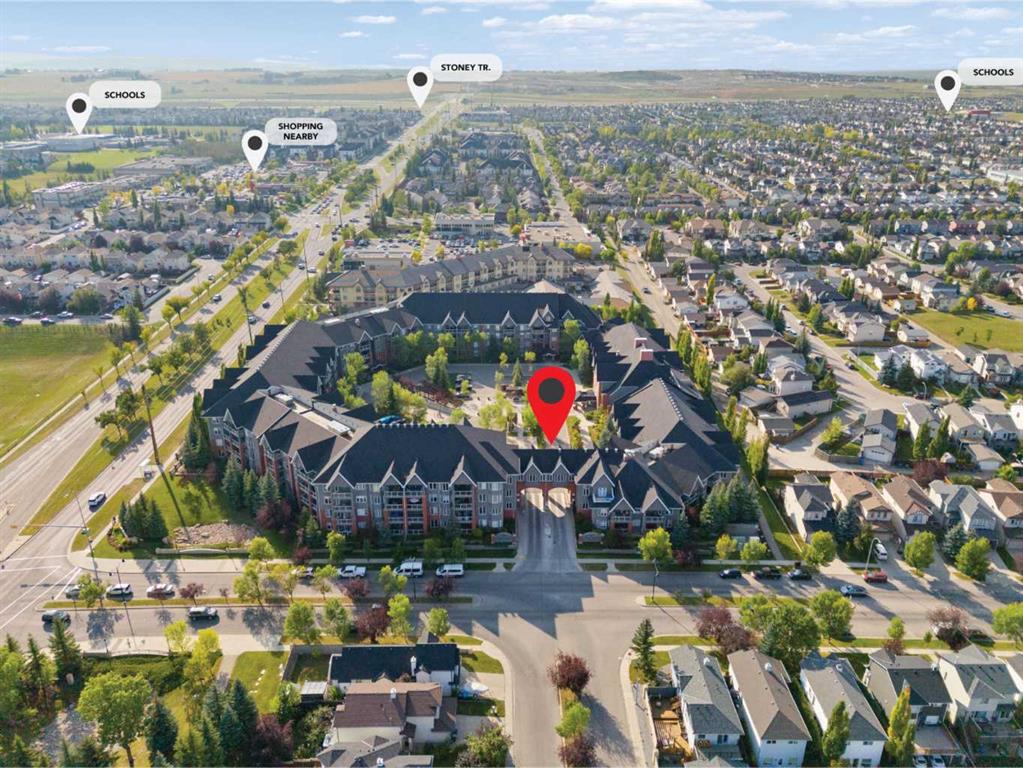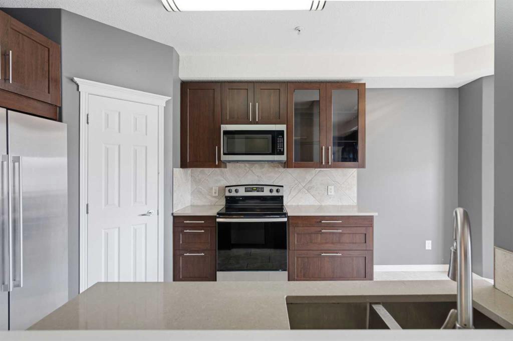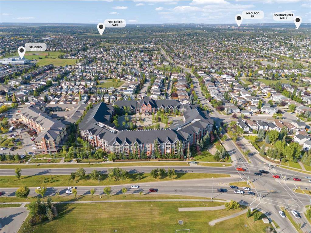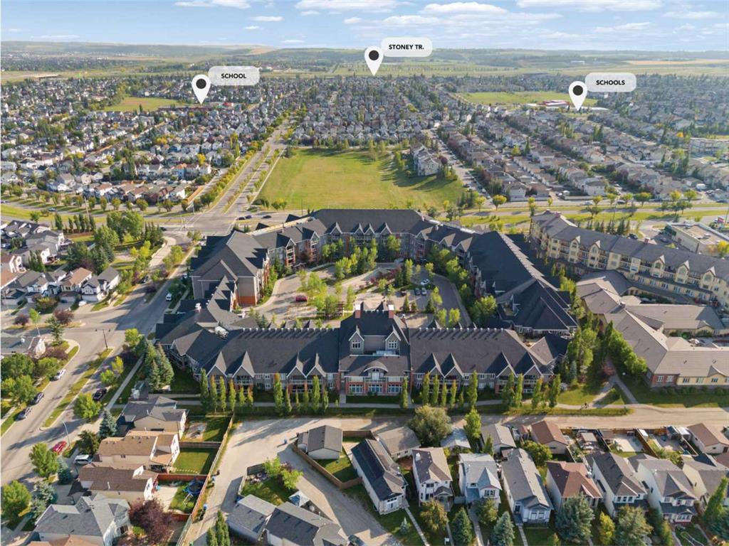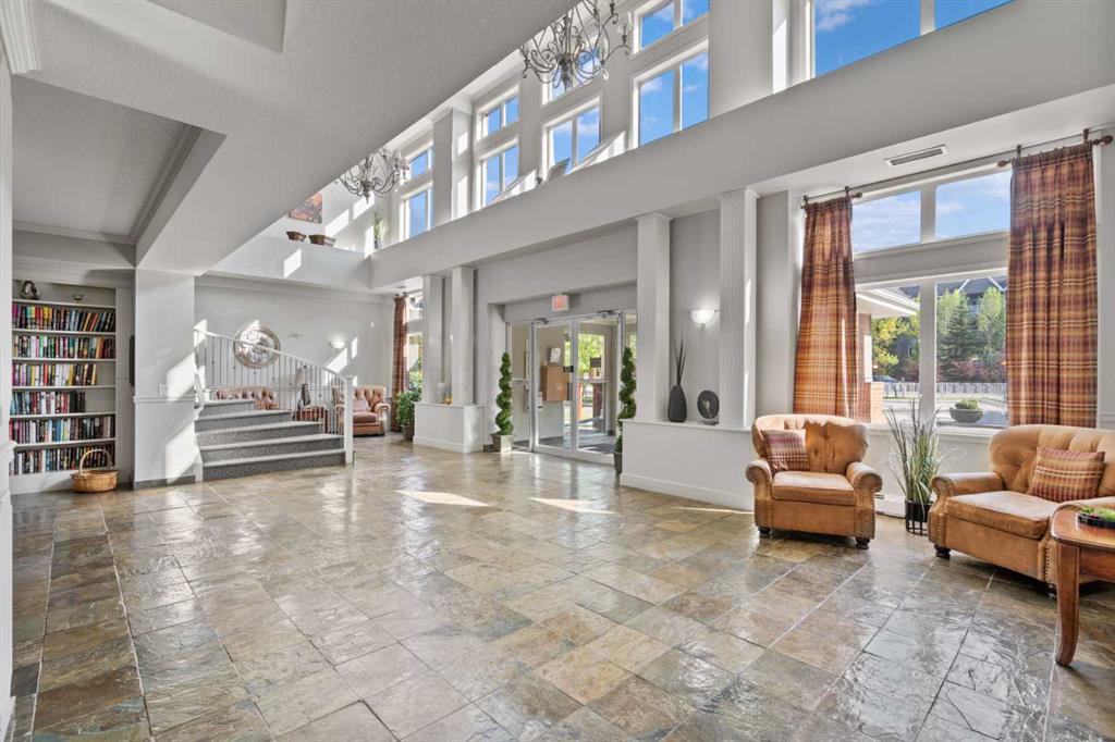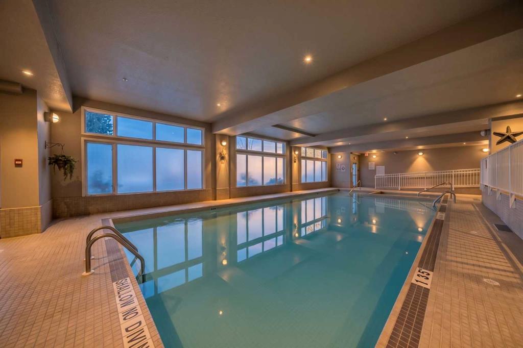 Welcome to the Sierras of Evergreen - a great 55+ development that is in great demand! The list of amenities includes a pool, hot tub, fitness centre, banquet room, meeting room, craft room, theatre, games room, workshop, wine-making room and car wash.! This 993 square foot 2 bedroom 2 bathroom home features a bright kitchen with lots of cabinets and counter space and a spacious iving room with laminate flooring. The primary bedroom has a 4 piece ensuite and a large walk-in closet. The second bedroom has french doors and is an ideal office/den area. This unit comes with a titled underground parking stall with a storage room at the end of the stall. Located across the street from Sobey's, Tim Hortons and other fine shoppes. Come tak a look.