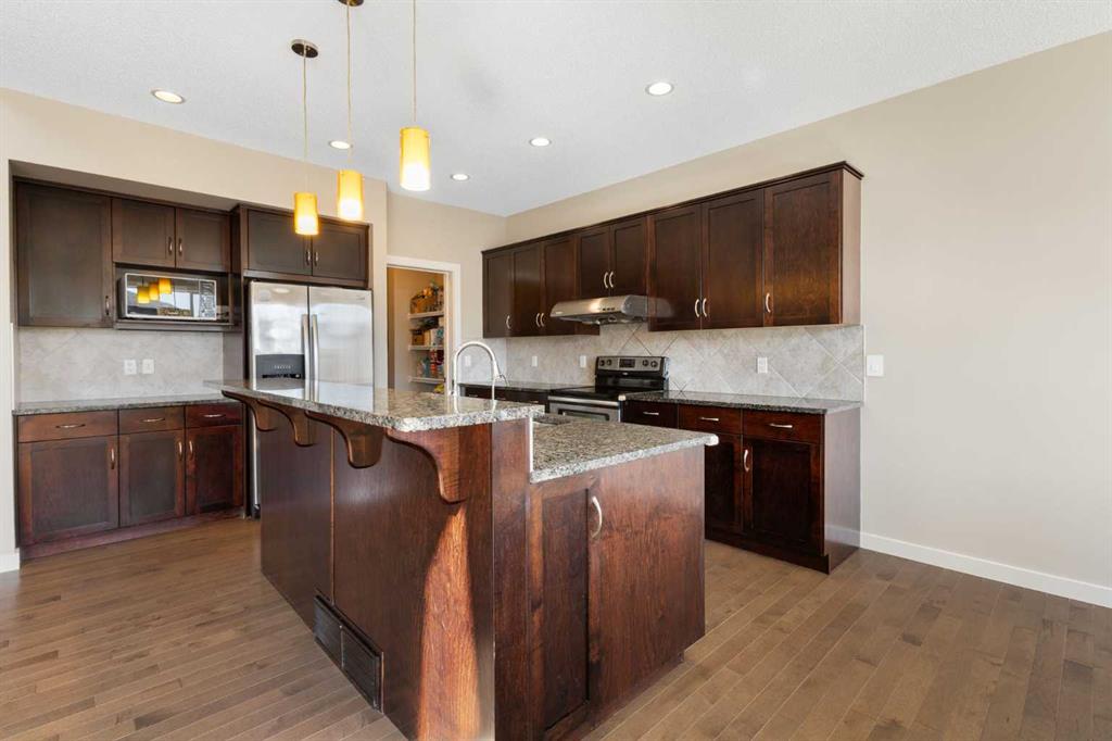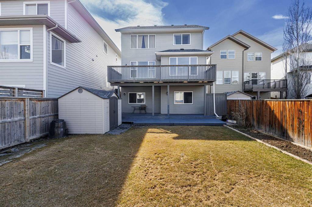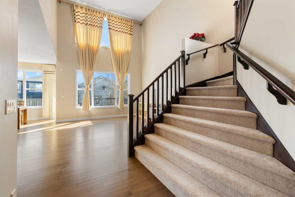 Open House 1-3pm, Sunday April 26. This stunning, immaculately maintained 2-storey walkout home offers exceptional space, functionality, and abundant natural light throughout. Featuring 3+1 bedrooms and 3.5 bathrooms, this executive-style residence boasts gleaming hardwood floors and 9’ ceilings on the main level. The bright and open main floor showcases a spectacular family room with soaring 18’ ceilings, a cozy gas fireplace, and massive windows that flood the space with natural light. The gourmet kitchen is equipped with granite countertops, stainless steel appliances, a central island with raised eating bar, and a convenient walk-through pantry. A spacious dining area provides direct access to the full-width deck, perfect for entertaining. A den and 2-piece bath complete the main level. Upstairs, you’ll find a generous loft area, a luxurious primary retreat featuring a 5-piece en-suite with double vanity, soaker tub, separate shower, and a large walk-in closet. Two additional well-sized bedrooms and a 4-piece main bath complete the upper level. The professionally developed walkout basement includes a fully finished illegal suite with a separate entrance, 9’ ceilings, and durable laminate flooring throughout. This level features a large living room, full kitchen with island, a fourth bedroom, a 4-piece bathroom, and ample storage space. Step outside to a beautifully landscaped, fully fenced backyard offering excellent privacy, along with a newer full-width covered patio, ideal for year-round outdoor enjoyment. Located on a quiet crescent just minutes from schools, parks, and playgrounds, with convenient access to public transit (including Route #8 to the University of Calgary and #301 express downtown). Close to shopping, Superstore, recreation facilities, library, theatre, and all major amenities. Easy access to Stoney Trail, Deerfoot Trail, and the airport. Recent upgrades include: Roof (2025), Gutter (2025), Downspouts (2025), Sidings (2025), Dishwasher (2024), Dryer (2024), Hardwood flooring (2023), Water Filter System (2022), and Air Conditioner (2021).