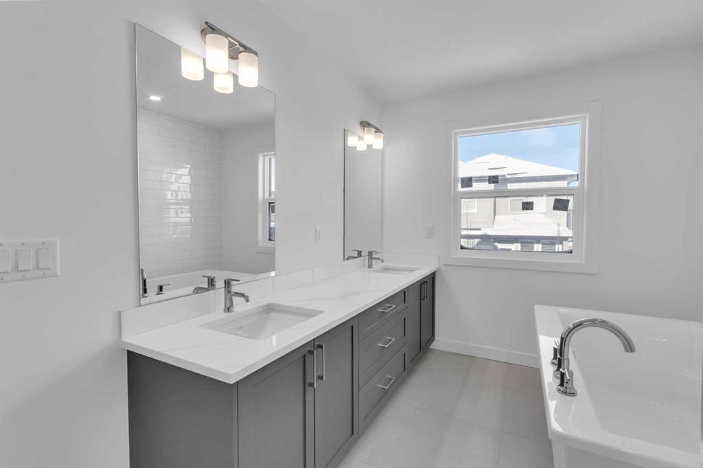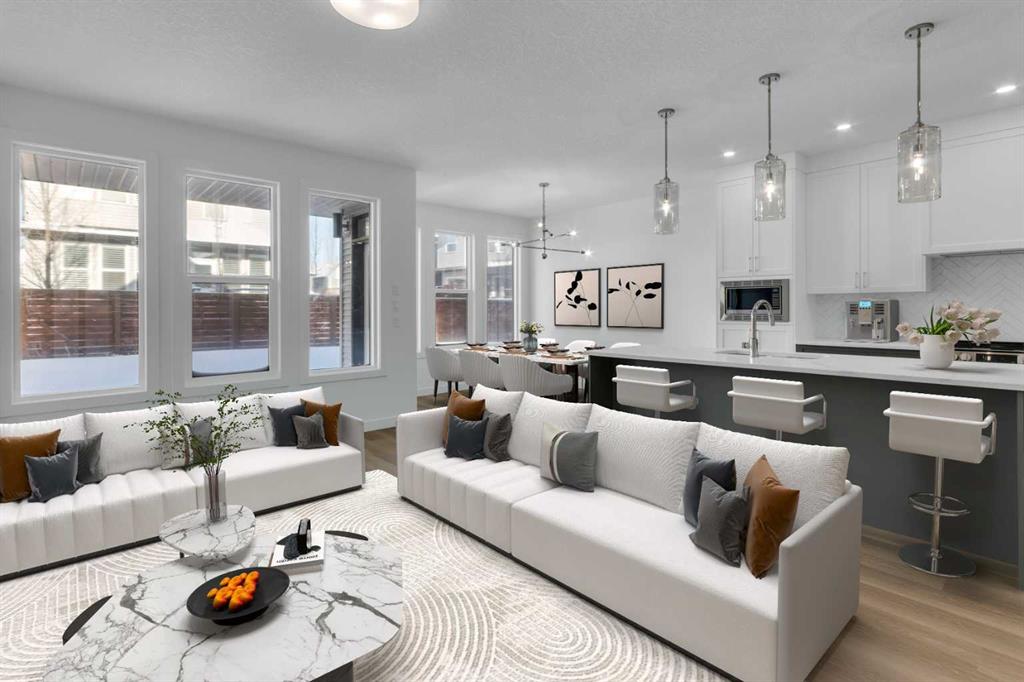 Nestled in the highly sought-after community of Copperfield, this exceptional 4 bedroom up, single-family home showcases quality craftsmanship and numerous upgrades throughout. The thoughtfully designed main level features 9-foot ceilings, creating a bright and spacious atmosphere. A generous living room flows seamlessly into the chef-inspired kitchen, complete with ceiling-height cabinetry, ample storage, and refined finishes. A private office off the spacious front foyer boats a stylish barn door, and a convenient two-piece powder room completes the main floor. The elegant staircase, finished with modern railings, enhances the home’s open-concept feel as it leads to the upper level. Upstairs, you’ll find four generously sized bedrooms, including a luxurious primary suite spanning the back of the home; featuring a spacious walk-in closet and a spa-inspired ensuite with dual vanities, a freestanding soaker tub, and a fully tiled shower. Two additional bedrooms are connected by a well-appointed Jack-and-Jill bathroom, while the fourth bedroom enjoys access to a full bathroom located just outside its door—offering three full bathrooms on the upper level. The home also features a separate side entrance leading to a 9-foot basement, which is roughed-in for a future legal basement suite, providing excellent investment or multi-generational living potential. Outside, the completed rear fence, patio off the dining room and a double front-attached garage adds everyday convenience. Residents will appreciate the abundance of nearby green spaces, parks, and walking paths. Ideally located just minutes from top-rated schools, major shopping amenities, and offering quick access to Deerfoot Trail and Stoney Trail, this home perfectly balances comfort, functionality, and future opportunity. This is an exceptional opportunity to own a beautifully appointed home in a prime location. Schedule your private viewing today.