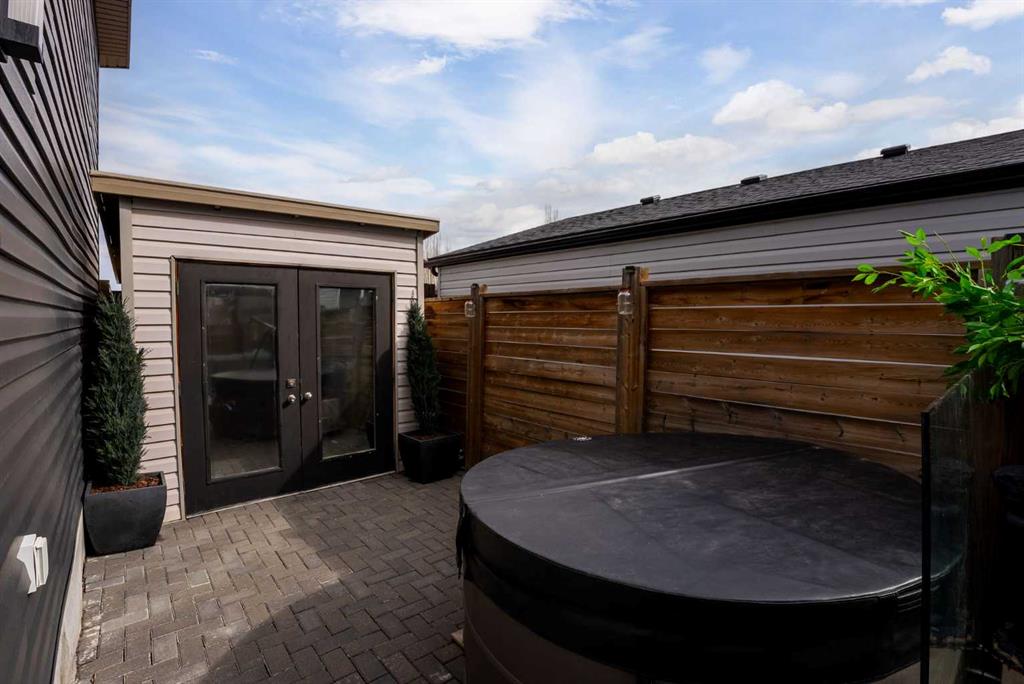 Outdoor living is where this home truly shines. Enjoy a custom deck with frameless glass railings, a private hot tub retreat with privacy screen, and a sunken firepit with built-in seating, all surrounded by professional landscaping, horizontal privacy fencing, solar and wired exterior lighting, and permanent Celebrite holiday lighting. The stamped concrete pad, featuring a compass inlay and upgraded alley access, further elevates the exterior appeal.