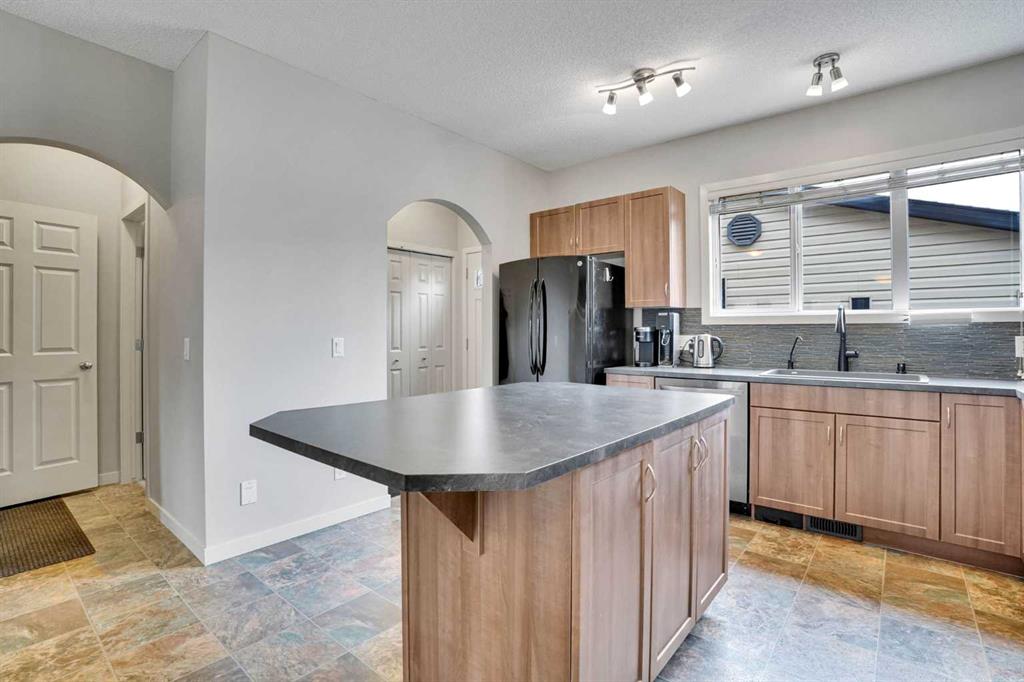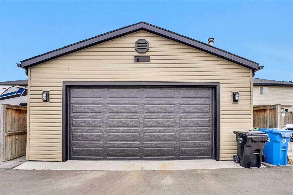 Welcome to one of the most customized homes on the block! This thoughtfully adjusted floor plan features 10-foot ceilings on the main level, creating a rare, open-concept space perfect for cooking, dining, and relaxing. The spacious kitchen is designed to impress, showcasing a high-end modern sink and a large island that’s ideal for both everyday living and entertaining. Upstairs, you’ll find a full bathroom (never used!), two generously sized bedrooms, and a conveniently located laundry room—an uncommon and highly desirable feature in this area. The expansive primary suite includes a walk-in closet and a luxurious 4-piece ensuite, complete with a deep soaker tub and a separate stand-up shower. The undeveloped basement offers endless potential for future development, while currently providing a wide-open storage area. The furnace and mechanical/electrical systems have been strategically placed in the northwest corner to maximize usable space and minimize noise throughout the home. Additional upgrades include a best-in-class Kinetico water softener, delivering silky-smooth water throughout, along with a brand-new water heater and upgraded hail-resistant shingles to help protect your investment. The garage truly deserves its own spotlight. This fully finished, oversized double garage is a dream workshop. Built with an engineered slab (10-inch thick perimeter and 8-inch interior), it’s designed to support a vehicle lift and comfortably accommodate two full-size trucks—or even three with a lift—while still leaving ample workspace. Outfitted with 60-amp service, the garage includes extensive wiring for shop use, a 240V outlet, and multiple 15-amp bench plugs. Upgraded lighting features dedicated workbench lighting, attic lighting, and exterior deck and alley accent lighting, all on separate switches for easy home automation integration. It’s also pre-wired for an alarm system and PoE camera surveillance. Even the construction stands out: 6-inch thick insulated walls with Rockwool insulation, a 6-mil vapor barrier, and 2 layers of house wrap make the space exceptionally quiet—nearly soundproof. Additional highlights include upgraded LVL framing, a premium R-18.4 garage door, high-capacity storage shelving, and dual attic access points for convenience. Nearly every detail of this home reflects custom design, thoughtful upgrades, and exceptional care. And the location? With quick access to shopping, schools, and major Calgary routes, your daily commute is effortless. Don’t miss this rare opportunity to become the second owner of a pristine, meticulously designed home.