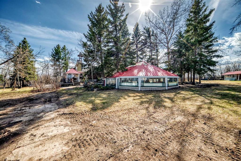 Escape to your own private 2-acre retreat in an unbeatable location! This one-of-a-kind heritage-style acreage offers incredible privacy, mature trees, and a collection of unique outbuildings designed for lifestyle and flexibility. From the charming garden house (perfect for a she-shed or guests), to the detached garage, to the standout roundhouse ready for your dream outdoor kitchen and entertaining space—this property is full of character and opportunity. The spacious 2,500 sqft home features multiple inviting living areas including a sunroom and atrium, a well-appointed kitchen with stainless steel appliances, marble counters, and wood cabinetry, plus a true primary retreat with sitting area and wood stove. Step outside to your own backyard oasis complete with sauna, manmade creek, boardwalks, rooftop patio, and western-inspired touches. With ample parking, a heated garage, breezeway, and room to expand—including potential for an additional shop or secondary suite (up to 1600 sqft with county approval)—this property offers endless possibilities just minutes from Sirocco Golf Course. A rare opportunity to own a truly unique acreage!!