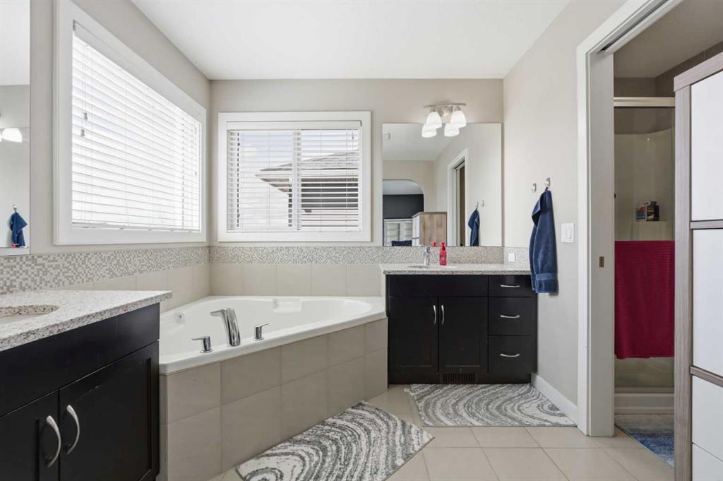 Upstairs, you’ll find four generously sized bedrooms, including two with walk-in closets, plus a stunning bonus room with vaulted ceiling—ideal for movie nights or a kids’ retreat. The primary suite is your private escape, featuring a luxurious 5-piece ensuite with a soaker tub, dual granite countertop vanities, and a separate glass shower. An additional 5-piece bathroom with a granite countertop, double sinks ensures stress-free mornings for the whole family, and the upstairs laundry room adds practical ease.