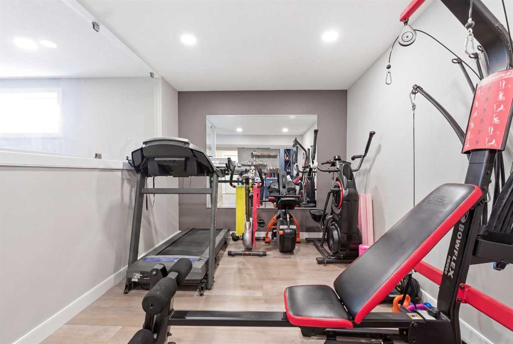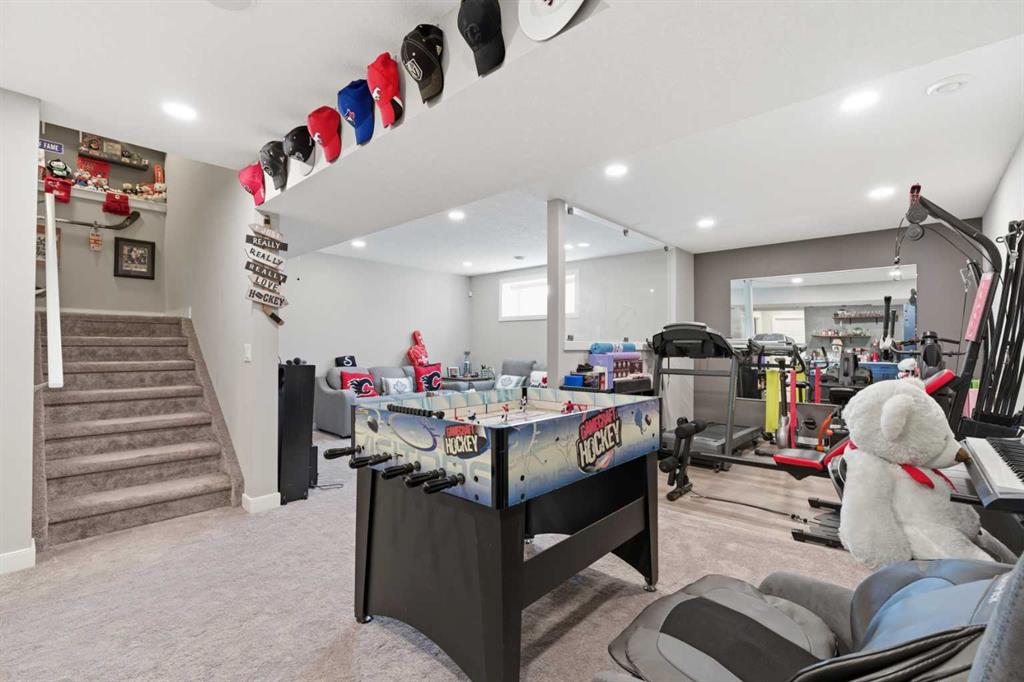 The fully finished basement expands your living space with a large recreation room, dedicated home gym, and a stylish wet bar—perfect for entertaining or unwinding after a workout. Built-in ceiling speakers set the stage for movie nights, music, or even karaoke. A spacious bedroom and full bathroom make it ideal for guests or extended family.