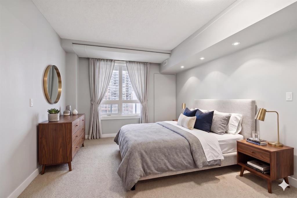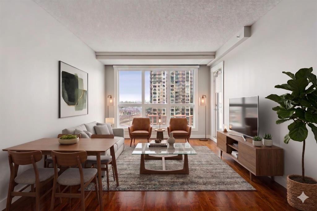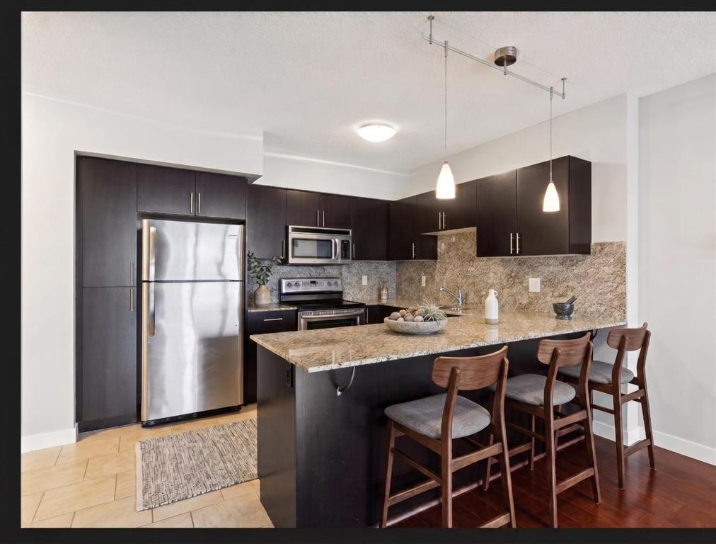Urban Luxury Meets Unbeatable Convenience. Welcome to unit 601 at the highly sought-after London at Heritage Station. This immaculate 1-bedroom, 1-bathroom residence offers a sophisticated urban lifestyle with the city at your doorstep. Boasting an open-concept layout, this home is flooded with natural light through expansive floor-to-ceiling windows. The contemporary kitchen features sleek granite countertops, high-quality cabinetry, and a functional breakfast bar—perfect for your morning coffee or evening entertaining. Step out onto your private balcony to enjoy the fresh air, and beautiful views. Practicality meets luxury with in-suite laundry, air conditioning, and energy-efficient systems throughout. The 6th floor of the abbey tower is unique because it offers direct access (through a secured entrance) to the outdoor shopping plaza. The door is at the end of the hall, opposite the elevators. This is ideal for grabbing a quick coffee from Tim Hortons or groceries from Save-On-Foods. Residents enjoy premier building amenities including a heated, above-ground parkade with ample open parking, allowing you to choose any stall on level 1, 2 or 3, 24/7 security, concierge services, and the exclusive rooftop sunroom and patio. With a direct pedestrian bridge to the Heritage LRT and shopping, this is the ultimate location for those who value time and style.