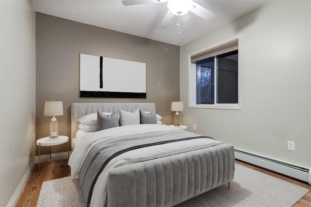 The primary bedroom offers a calm, private escape — generously sized w/WALK-IN CLOSET + a private 3 PC ENSUITE — creating a serene space to relax + recharge at the end of the day. Positioned for privacy, the second bedroom sits on the opposite side of the unit — ideal for guests, a home office, or flex space — conveniently located near the IN-SUITE LAUNDRY + full 4 PC MAIN BATHROOM for added everyday ease.
