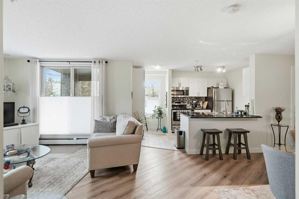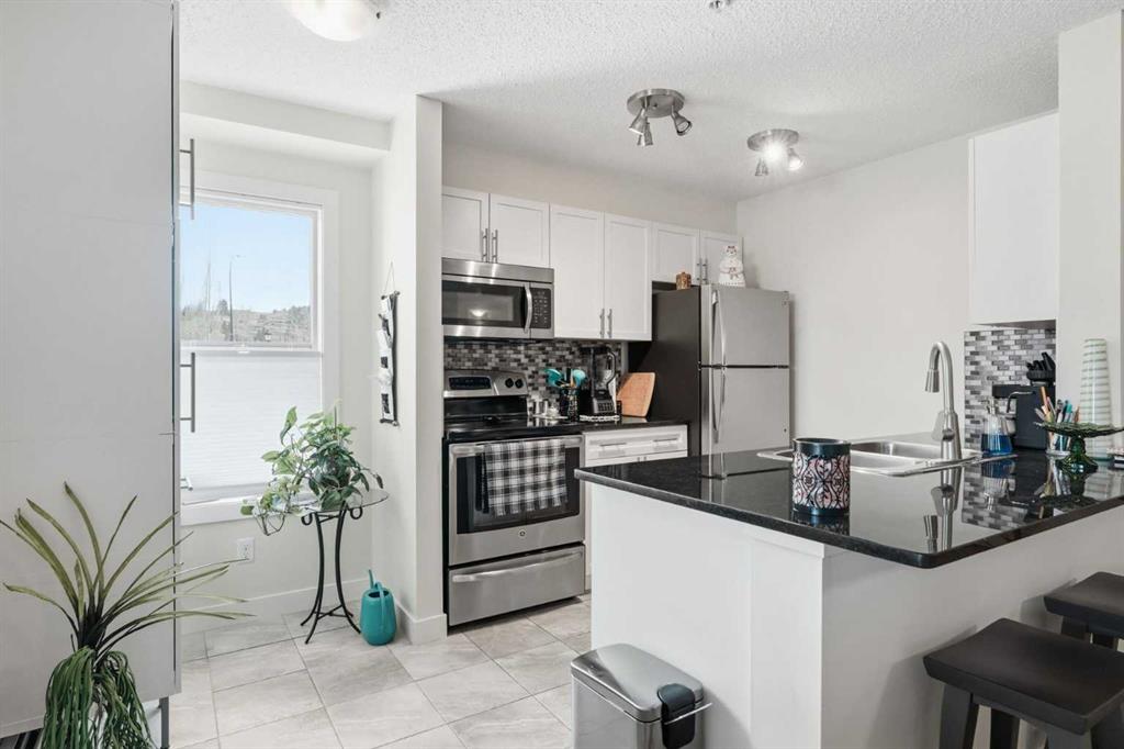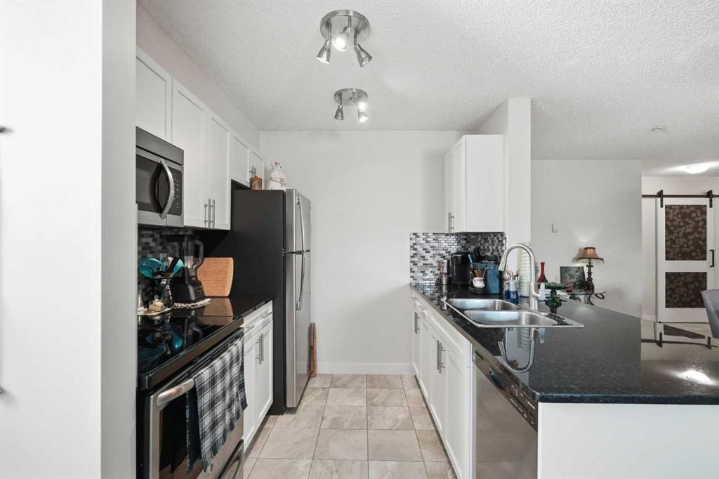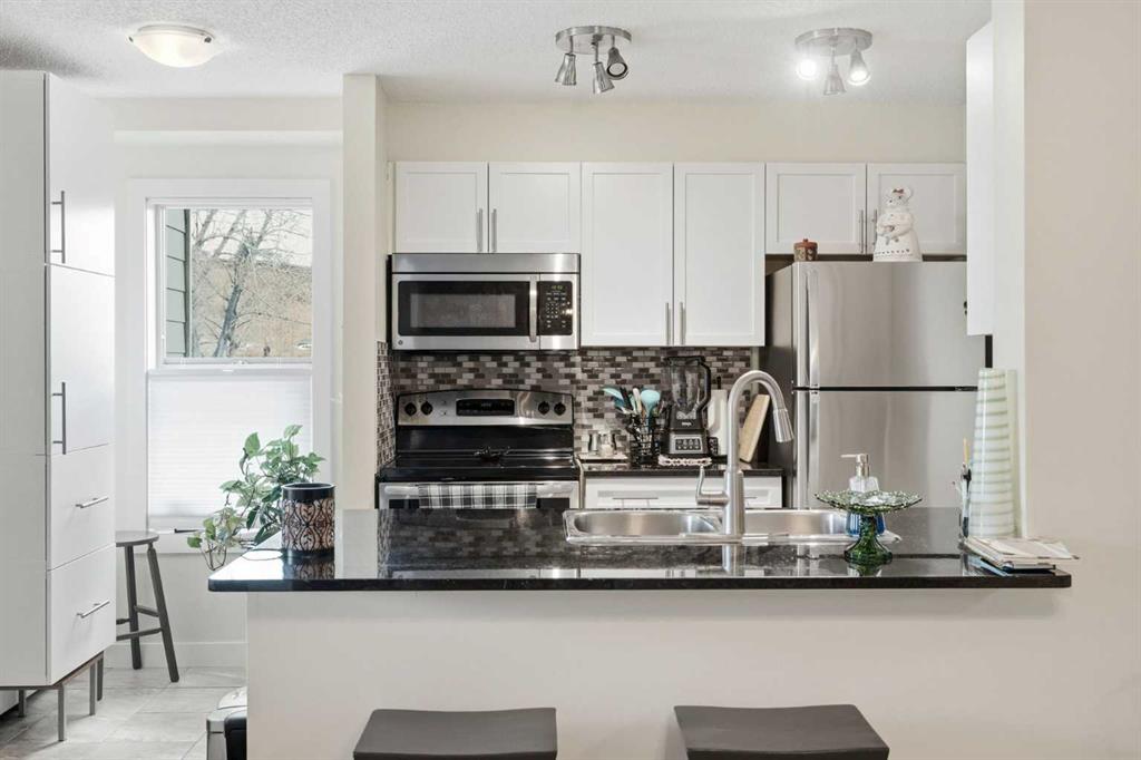 Come enjoy the privacy of this 963 Square foot main floor End condo. Centrally located, and private. This unit is spacious with lots of natural light. This unit offers 2 ample sized bedrooms, 2 full bathrooms and 2 arking spots, one underground and one outdoor stall - mere steps fron the unit. Enjoy the heart of Cochrane, with all amenities within wlking distance. Shopping, dining library and much more. Upgrades include granite counters in the kitchen, Stainless steel appliances, upgraded (and extra) cabinetds as well as the storage area has been added. The laundry room is spaciuus and allows for extra storage. Great bike/walking paths network just steps away.
