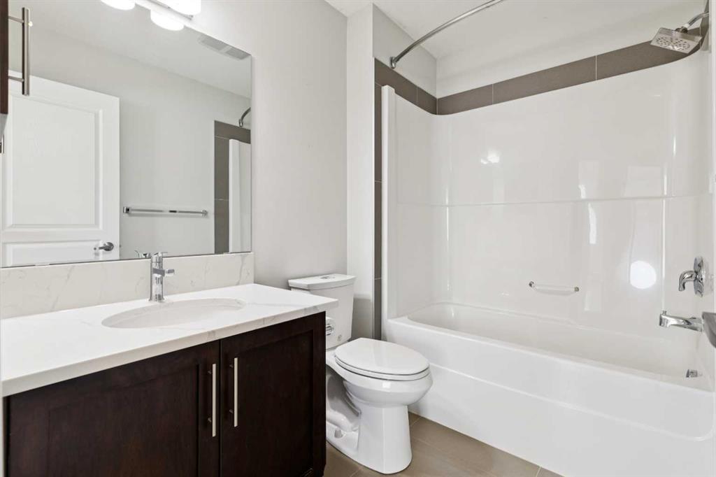 The kitchen is a true highlight, featuring sleek quartz countertops, crisp white cabinetry, and stainless steel appliances—perfect for both everyday living and entertaining. The open-concept design is enhanced by stunning flooring that flows seamlessly through the main living spaces, while the bathrooms are finished with durable tile.