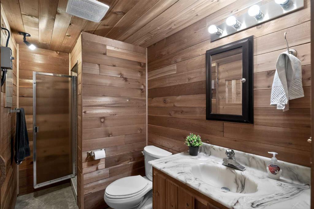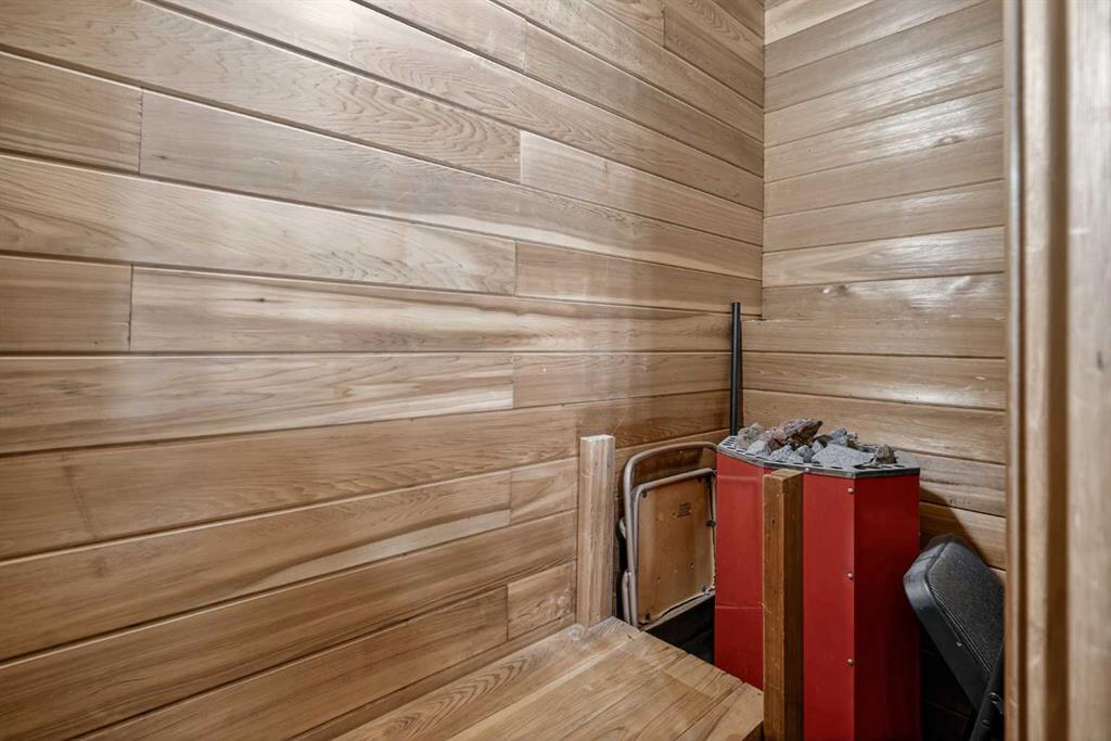 Three and a half bathrooms in total means the morning rush runs smoothly. Updates have been done where they count: new furnace, central A/C, updated appliances, newer roof, fence, and water heater. Outside, a beautiful concrete patio and landscaped yard make the outdoors genuinely worth stepping into. The detached double garage — a proper 22x22 — is wired with an electric car charger and sits off the paved lane alongside rare RV parking. And there is a sauna, because some homes still believe in looking after the people inside them.