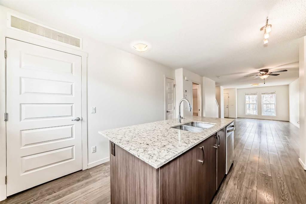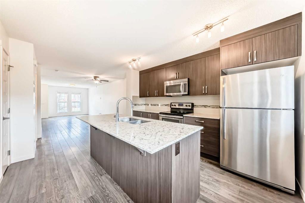 This beautifully appointed Zen townhome in the lake community of Auburn Bay offers an exceptional living experience with two parking stalls—a rare find in this complex! The main floor welcomes you with a bright, spacious layout, featuring laminate flooring throughout the living and dining areas. The kitchen boasts contemporary cabinets, quartz countertops, and stainless steel appliances, perfect for any culinary enthusiast.