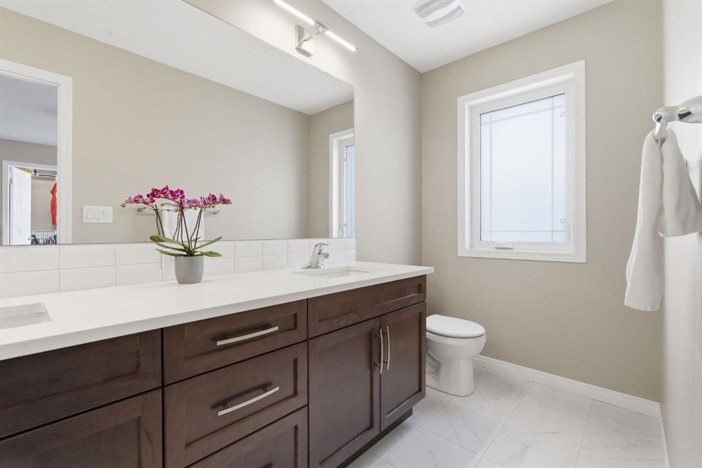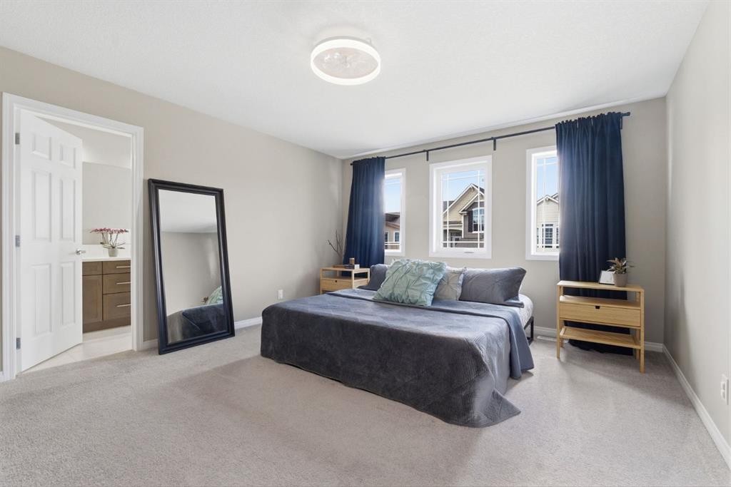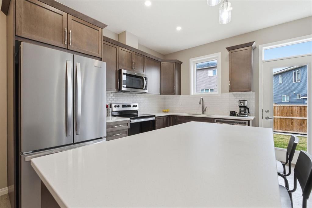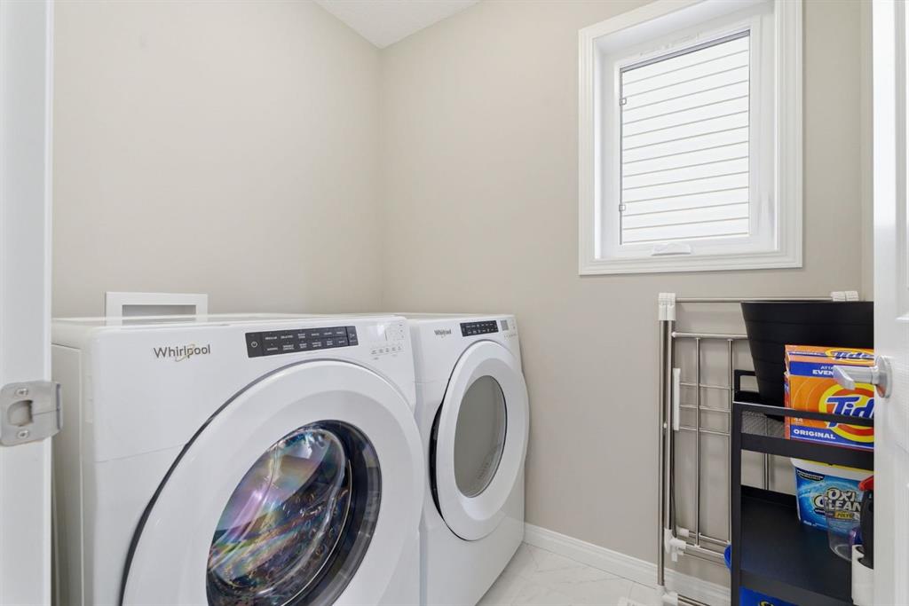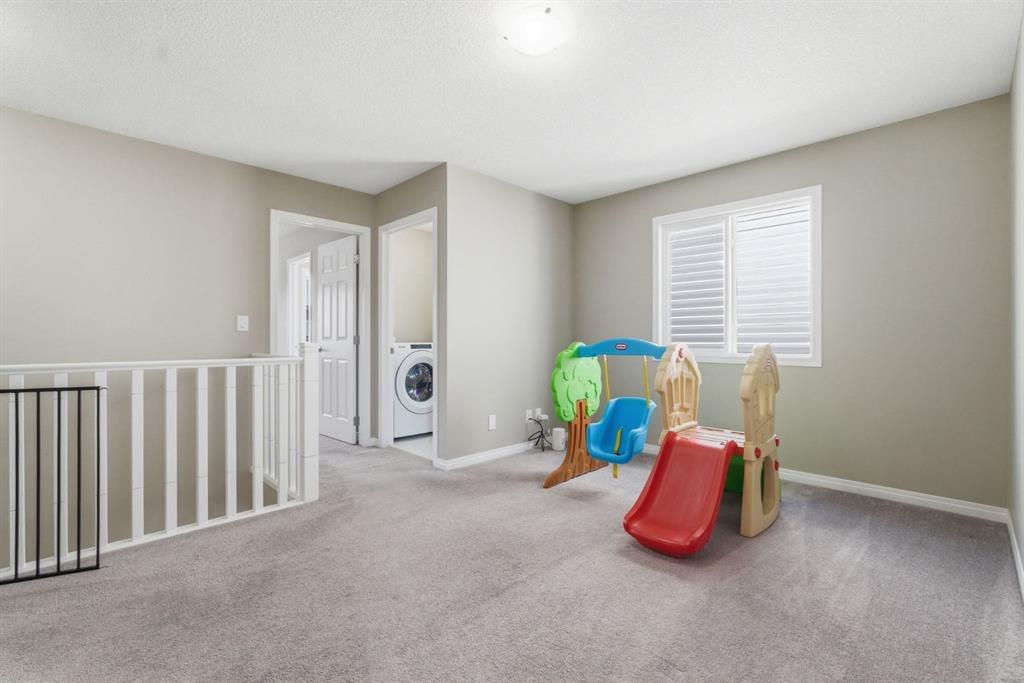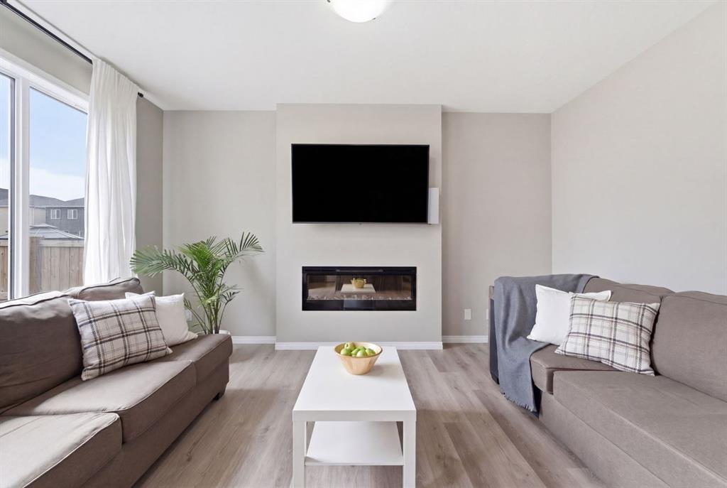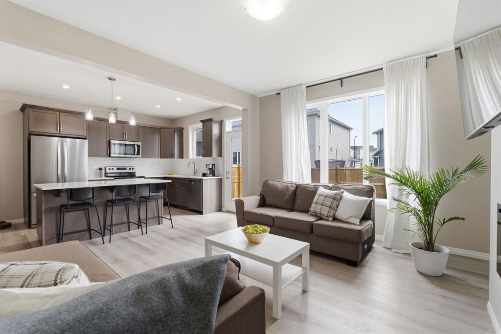 Welcome to this beautifully maintained two-storey home in the sought-after community of Carrington, offering 1,716 sq ft of thoughtfully designed living space plus an unfinished basement ready for your future plans. Built in 2020 and featuring a brand new roof completed in 2025, this move-in ready property combines modern comfort, functional design, and exceptional value in a family-friendly neighbourhood. Step inside to a bright and inviting main floor where large windows fill the home with natural light and durable vinyl plank flooring adds both style and practicality. The open-concept layout is ideal for everyday living and entertaining, centred around a spacious kitchen complete with stainless steel appliances, a large island, ample cabinetry, and plenty of prep space. The adjoining dining and living areas create a seamless flow, while the cozy gas fireplace adds warmth and charm to the heart of the home. Upstairs, you’ll appreciate the smart and spacious layout featuring a versatile bonus room perfect for a media area, playroom, or home office. The convenient upper-floor laundry room adds everyday ease, while the generous primary suite offers a walk-in closet and private ensuite with double vanity. Additional bedrooms provide excellent space for family, guests, or work-from-home flexibility. The unfinished basement presents endless possibilities to customize additional living space, a gym, recreation room, or extra bedrooms to suit your needs. Outside, the fully fenced backyard offers room to relax, play, or entertain, while the double attached garage provides secure parking and extra storage.Located close to parks, playgrounds, and everyday amenities, this is an excellent opportunity to own a stylish starter home in one of northwest Calgary’s growing communities. Thoughtfully designed, well cared for, and ready for its next chapter this Carrington home is one you won’t want to miss.