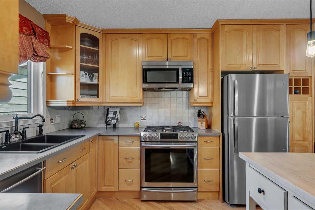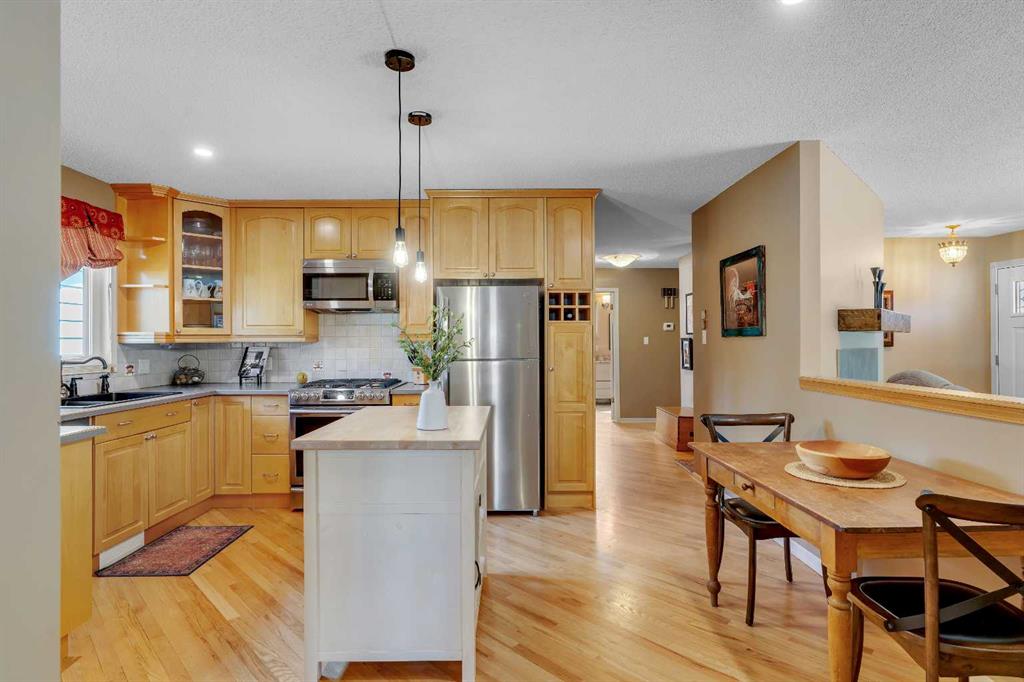 2700 SQFT OF DEVELOPED SPACE | OVERSIZED GARAGE | QUIET CUL DE SAC | Welcome to 9 Mountain Place, located in Okotoks, one of the most family friendly towns you’ll find. Situated in the established low density neighborhood of Rosemont, with large trees and just minutes to historic downtown, this location truly has it all. As you enter the home you’ll notice the original hardwood flooring throughout + fresh paint, along with an abundance of light flowing through the numerous large windows. The main level features a large living room centred around a wood burning fireplace and large west facing windows, flooding the space with light. There is an additional seating area that could double as a home office, den, or kids play area. The large kitchen features all brand new stainless steel appliances and plenty of cabinet space flowing seamlessly into the dining area, large enough to seat 10 and a perfect setting for entertaining family & friends. The primary bedroom allows for a wide range of flexibility in terms of furniture & offers ample space for almost any couple, with all carpet replaced in 2023 and a large west facing window. The spa inspired main bathroom is one of the focal points of this property, architecturally designed in 2014 and includes in floor heating, granite counters, an Italian tile stand up shower & a beautiful freestanding bathtub. This level also includes 2 additional bedrooms with large windows & plenty of storage space. As you move downstairs you will enter the large mudroom, an ideal place for the kids to hang their coats & backpacks, with plenty of room to wash the paws of your furry friends, another feature you do not typically find in a bungalow. The fully developed basement features a large living and rec space, a huge bedroom with plenty of closet space and a 3pc bathroom, along with a large laundry room with even more storage. Some of the recent updates totalling more than 85K since purchase include a new furnace and hot water tank in 2016, new shingles on the home in 2015 and on the garage in 2023, added attic insulation, new front and back doors, all new appliances, and not to be overlooked is the additional parking in the front driveway, perfect if you have a boat or smaller RV. The professionally landscaped yard features a new cedar deck and pergola in 2023, new cedar fence in 2011, and includes a wide range of trees, perennials, rose bushes, flowering shrubs along with vines and stepping stones throughout. Enjoy a morning cup of coffee in the sun this summer from this incredible private backyard, with direct access to the oversized 23x23 garage. Located just minutes away is Elizabeth St. with numerous local eateries, coffee shops, ice cream shops and endless exploring along the Sheep River pathway system that runs right through town, with schools, parks and pathways all within walking distance. If you are looking for a family friendly neighborhood & town to either raise a family or retire to a peaceful setting, this is the one for you.