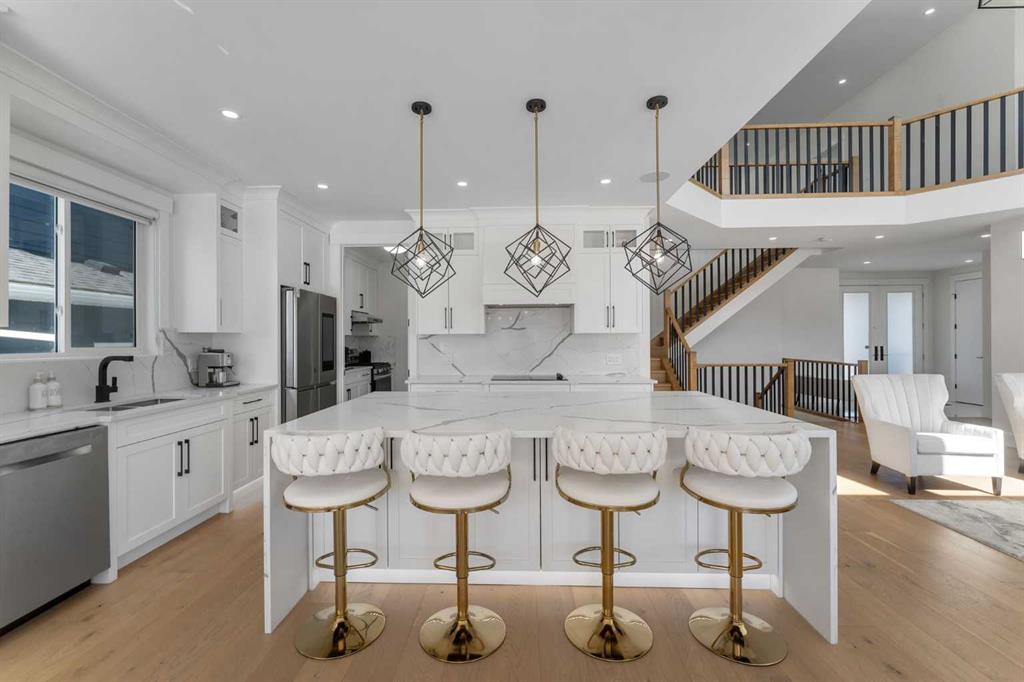 SOLAR PANELS = NEARLY ZERO POWER BILLS!! HUGE 7840 SQFT LOT!! TRIPLE ATTACHED GARAGE!! MAIN FLOOR BEDROOM + FULL BATH!! SPICE KITCHEN!! OVER 4170 SQFT OF LIVING SPACE!! 7 BEDROOMS!! 5 BATHROOMS!! Welcome to a home where space, efficiency, and thoughtful upgrades come together. This property stands out right from the start. The main floor features a bright open-concept layout with a spacious living area centered around a gas fireplace, and soaring open-to-below ceilings. Throughout the home, you’ll notice PREMIUM FINISHES, UPGRADED FIXTURES, CUSTOM LIGHTING (UNDER-CABINET, IN-CABINET & SHELF LIGHTING), AND BUILT-IN SPEAKERS creating a modern, elevated feel. The kitchen is set on its own level and is designed to impress with an OVERSIZED ISLAND, WATERFALL BACKSPLASH, BUILT-IN FEATURES, AND EXTENSIVE CABINETRY, complemented by a fully equipped SPICE KITCHEN. A 4-DOOR SMART REFRIGERATOR WITH SCREEN adds a high-end touch. The dining area includes CUSTOM BUILT-IN CABINETRY and offers direct access to the backyard deck. Also on the main floor is a bedroom and full 3-piece bath. Upstairs, you’ll find 4 bedrooms and 3 full bathrooms, plus a bonus area overlooking the open-to-below space. The primary suite features a walk-in closet and a luxurious 5-piece ensuite. Another bedroom has its own 3-piece ensuite (currently used as a prayer room), while the remaining two bedrooms share a Jack & Jill bath. The upper level is finished with UPGRADED CARPET AND PREMIUM 10LB UNDERLAY, adding extra comfort. The fully developed basement expands your space with 2 additional bedrooms, a 4-piece bathroom, recreation area, bonus room, wet bar, and laundry. This home continues to impress with SOLAR PANELS FOR EXTREMELY LOW UTILITY COSTS, WHOLE-HOUSE WATER SOFTENER, HIGH-EFFICIENCY FURNACE, A/C ROUGH-IN, PREMIUM WASHABLE PAINT, AND ABUNDANT STORAGE THROUGHOUT. Every bathroom is uniquely designed with different tile selections, and all toilets feature HEATED SEATS WITH REMOTE CONTROLS for added comfort. MOTORIZED BLINDS ON THE MAIN FLOOR bring everyday convenience. The triple attached garage is drywalled, painted, and includes additional storage space. A rare combination of SIZE, UPGRADES, AND ENERGY EFFICIENCY on a huge lot—homes like this don’t come often. DON’T MISS THIS OPPORTUNITY—BOOK YOUR SHOWING TODAY!!