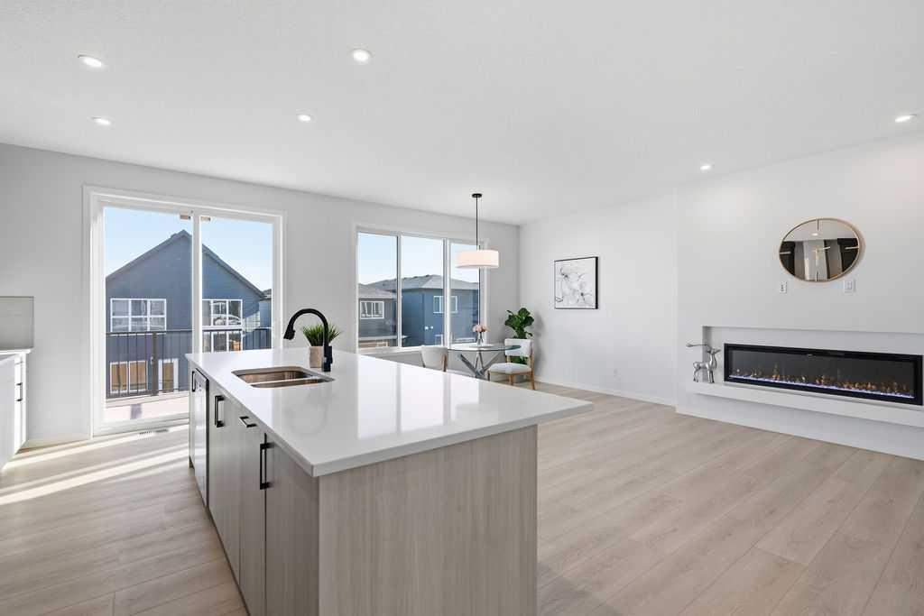 Welcome to this stunning home offering over 2,200 sq.ft. of developed living space in the sought-after community of Glacier Ridge. Perfectly positioned on a premium walkout lot, this detached residence features a front attached double garage, elegant spindle railings, and high-end upgrades throughout. The main floor showcases a bright open-concept design enhanced by pot lights, stylish LVP flooring, and a sleek electric fireplace that anchors the living area with warmth and modern charm. The gourmet kitchen is a true highlight, complete with a gas range, an oversized island, walk-in pantry, and a spacious dining area ideal for entertaining. A convenient 2-piece bathroom completes the main level. Upstairs, a bright bonus room provides additional living space, along with a dedicated laundry area and four generously sized bedrooms. The luxurious primary suite features a spa-inspired 5-piece ensuite with a tiled walk-in showe, deep soaker tub surrounded by premium tile, dual quartz vanities, contemporary cabinetry, modern mirrors, and direct access to a well-organized walk-in closet with built-in shelving. The remaining three bedrooms share another thoughtfully designed 5-piece bathroom for added comfort and convenience. The bright walkout basement with huge windows and 9’ foundation ceilings offers incredible potential for future development, multi-generational living, or added privacy. Step outside to enjoy the rised huge backyard deck with a gas line for BBQs. Residents of Glacier Ridge also benefit from access to an HOA clubhouse featuring a gymnasium, tennis courts, splash park, and year-round activities, plus quick access to major routes for an easy commute. This exceptional property perfectly blends luxury, space, functionality, and lifestyle amenities—an ideal home for families seeking quality craftsmanship and modern comfort. Curtains will be installed on all windows in this house.