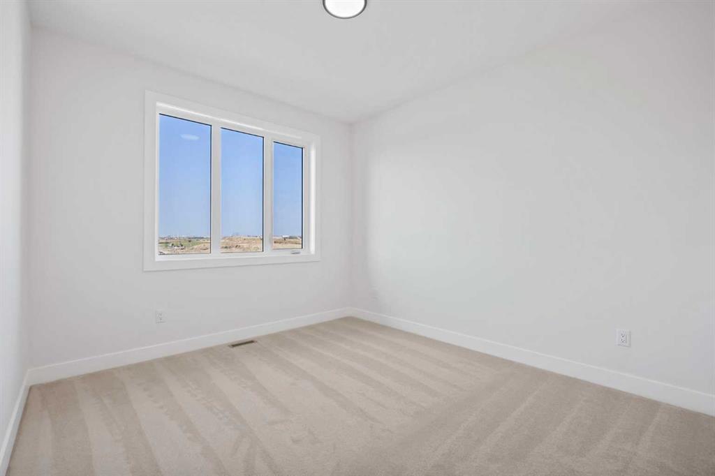 Welcome to the brand new development of Knightsbridge in Cambridge Park. Minutes away from access to Stoney Trail and East Hills shopping centre. The Whitehaven is a stunning estate home designed to blend luxury and practicality. Set on a generous 6027 sq ft lot, this home provides an expansive backyard and a side-drive triple car garage. These are not your typical cookie cutter homes. With 3,203 sq ft of living space, this custom-built masterpiece features 5 spacious bedrooms and 4 beautifully designed bathrooms, offering ample room for family and guests. This home is loaded with upgrades including: Main floor full bath, Jack and Jill ensuites for added convenience, High ceilings & a Spice kitchen to enhance your culinary experiences. Inside, the main floor exudes elegance with rich hardwood flooring and 9 ft ceilings with 8 ft doors, and striking black-framed windows that invite natural light. The gourmet kitchen is a chef’s dream, complete with an oversized island, a secondary spice kitchen, sleek stainless steel appliances. An open concept formal dining and living area set the stage for gatherings. The main floor also includes a flex room as well as a 4 pc bathroom. The primary suite on the upper floors is a true sanctuary with a freestanding tub and a custom-built closet. The home’s thoughtful design continues with 3 more generous sized bedrooms on the second floor, a bonus room for entertaining, a Jack & Jill ensuite bathroom for convenience, as well as a second floor laundry room. . Step outside to enjoy a completed rear deck with steps leading to a private outdoor oasis. This home also offers a triple attached garage allowing plenty of space for extra parking. This community is within minutes to Calgary, Chestermere, and East Hills, 18 minutes to Downtown Calgary, and provides quick access to Stoney Trail, Highway 1, and McKnight Blvd making it easy to get anywhere in and around the city. Located near shopping centres, Costco, public and private schools, Khalsa school's, parks, and many other amenities, while still offering quiet country-living with wide open green spaces, walking paths, and playgrounds.