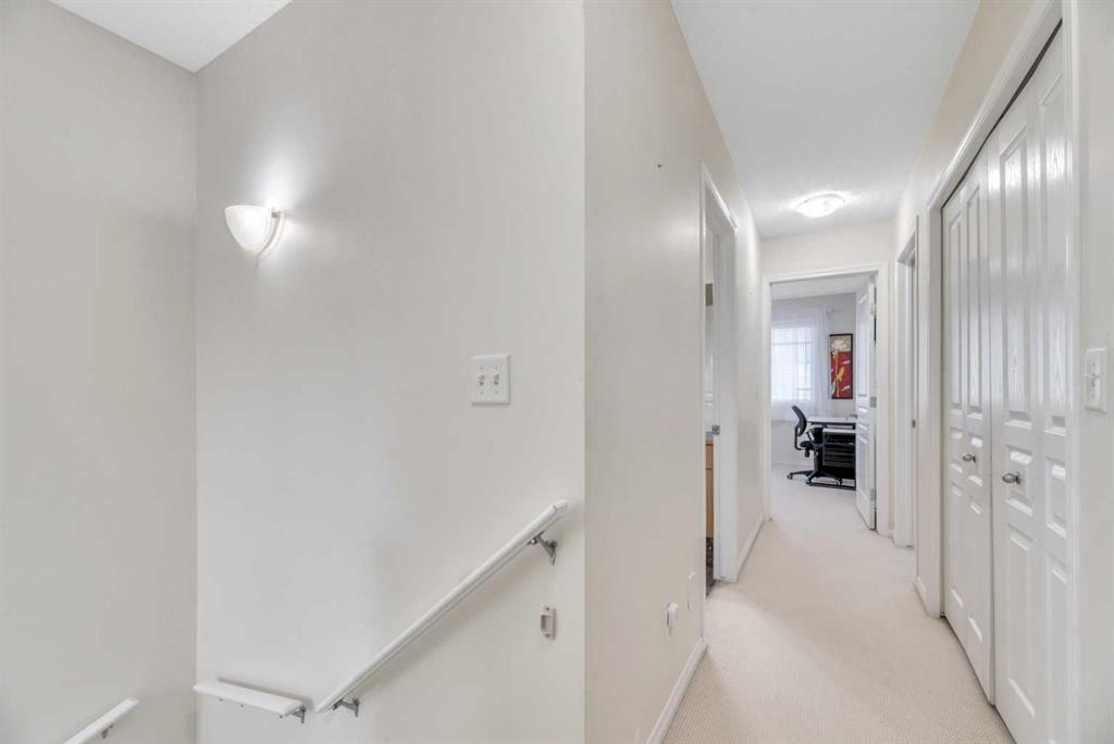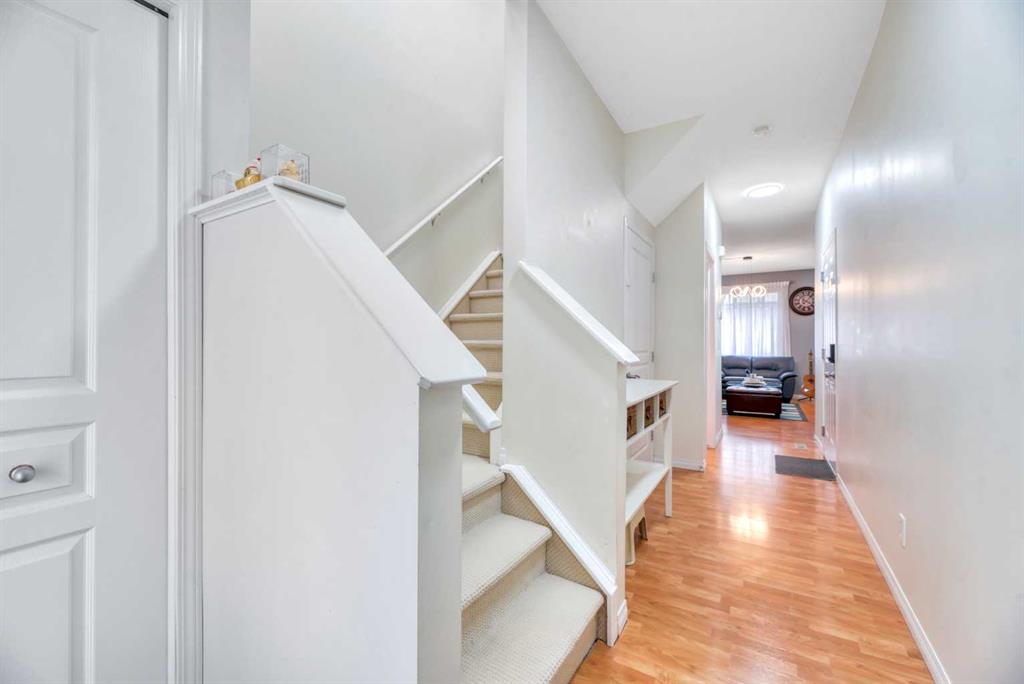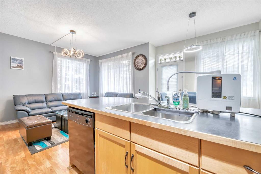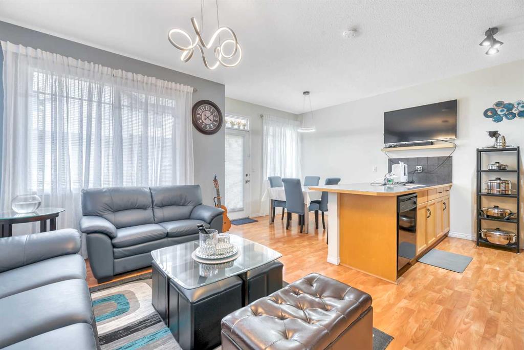 This bright and spacious END UNIT townhome in Emerald Landing is perfectly situated in a well-managed complex with low condo fees, in the sought-after, family-friendly community of Evergreen. Offering 3 bedrooms, 2.5 bathrooms, and an attached garage, the home features an inviting main level with a comfortable family room, sunlit dining area, and a functional maple kitchen complete with tile backsplash, raised eating bar, plenty of cabinetry, and generous counter space. Large windows fill the home with natural light, while patio doors lead to a good-sized deck backing onto green space, with convenient access to visitor parking. A main floor powder room adds extra convenience. Upstairs, you’ll find a spacious primary bedroom with its own ensuite and walk-in closet, along with two additional bedrooms, a full bathroom, and a practical upper-floor laundry area. The attached garage and driveway provide added storage and ample parking. Ideally located close to schools, playgrounds, shopping, and transit, and just minutes from Fish Creek Park with easy access to Stoney Trail, this home offers a great combination of space, location, and everyday comfort.