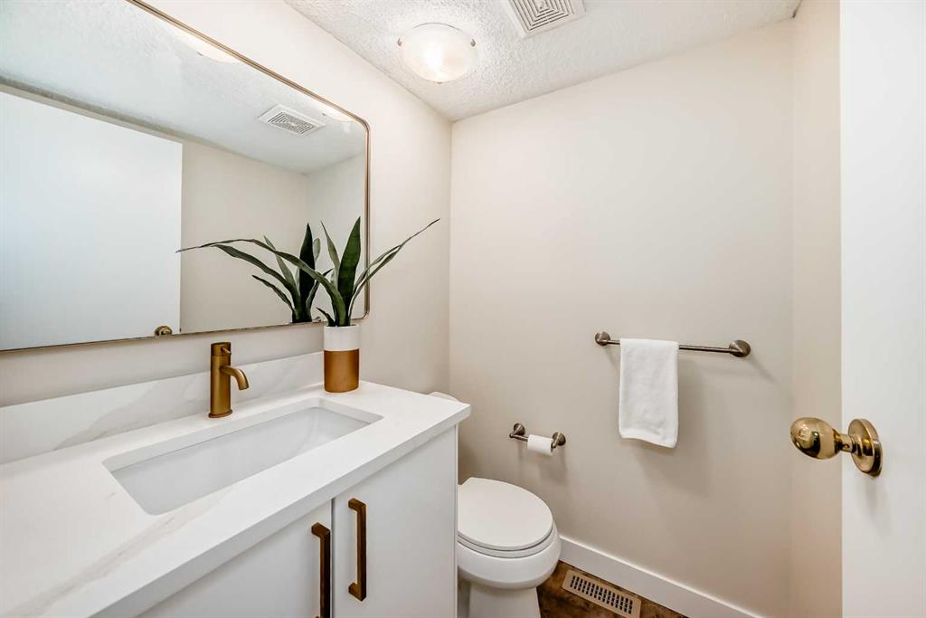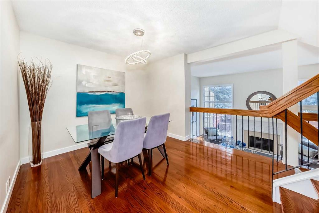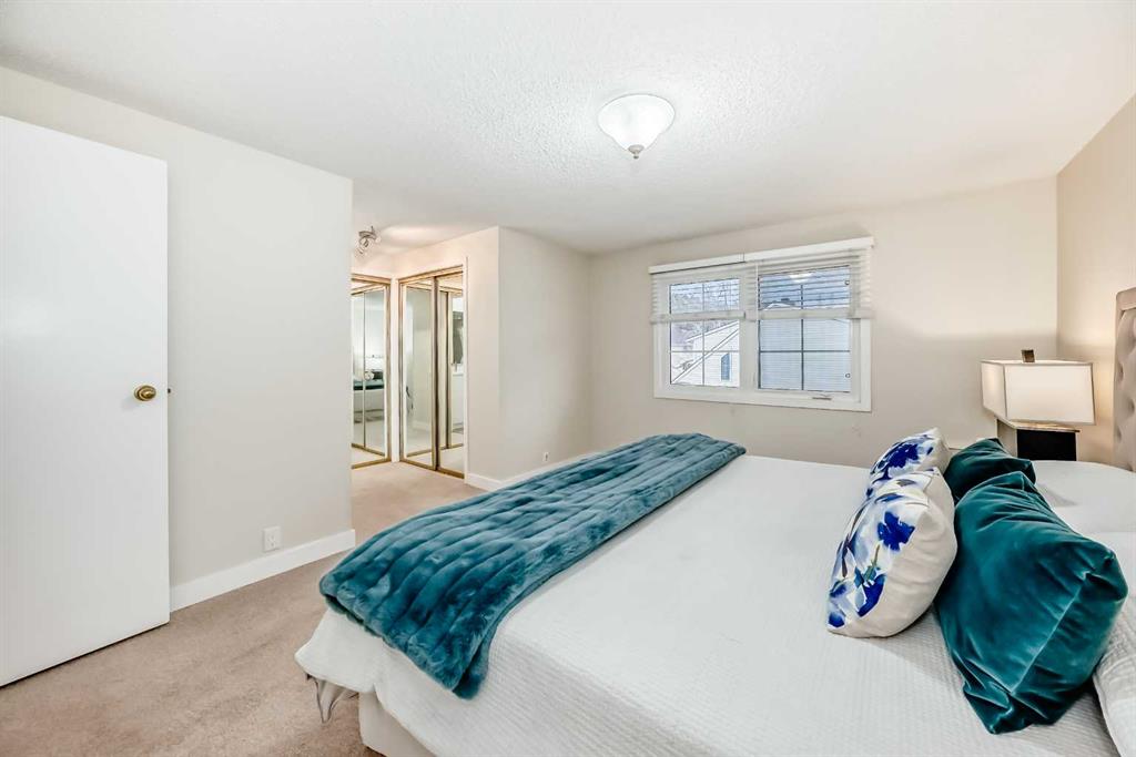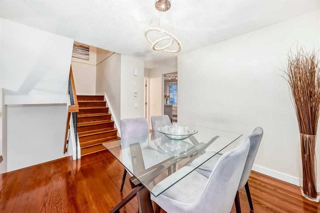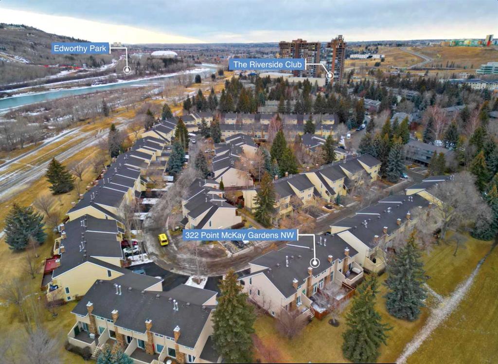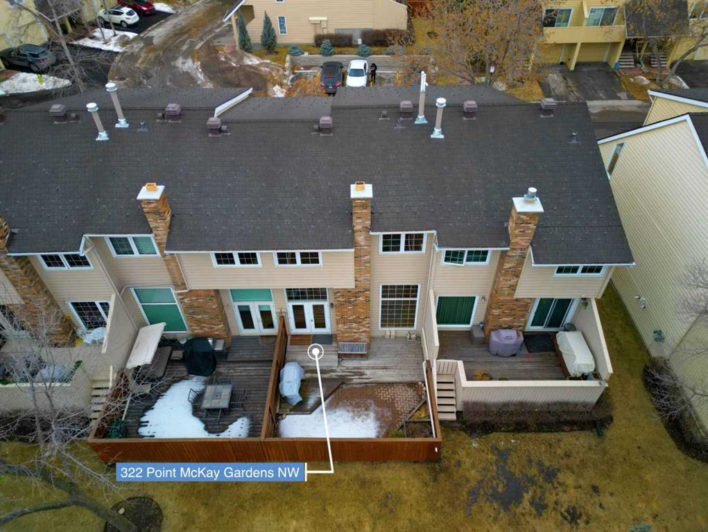 Warm elegance and natural light infuse this gorgeous Point McKay townhome with sunshine and style. Featuring beautiful design and tasteful renovations, this stunning, move-in-ready home is sure to impress. A spacious foyer invites you inside, shared with the entry from the single-attached garage. As you step into the living room, full-height windows face east give the area an extraordinarily bright and airy feel. The original wood fireplace was sealed, yet it remains a cozy decorative focal point. Glass-paned doors step out to the deck, merging your indoor and outdoor living spaces. As the vaulted ceilings draw your eye up, the open architecture and wood railings evoke loft vibes as you head to the dining area, giving you a bird’s eye view of the entire level. Updated lighting elevates the aesthetic, and rich-toned hardwood adds depth. In the remodelled kitchen, sleek white cabinetry and quartz counters pair with new stainless steel appliances and chic gold accents for an upscale ambiance sure to inspire your culinary ideas. A breakfast nook has west-facing windows that take in the sunset skies. The powder room was refreshed in the same high-end materials as the kitchen. Upstairs, the primary retreat is peaceful and generously appointed. Dual closets are ideal for a couple, and the ensuite has been luxuriously redone. Quartz and gold in the vanity, and attractive tilework in the shower bring the sophisticated tone into your personal space. This storey includes two more large bedrooms, and the main bathroom has also had a makeover. Downstairs, the finished basement is great for your library, home gym, or office. In a clever use of space, one closet holds the new laundry machines, one has cold storage, and the third has a tidy utility area. Outside, the deck offers plenty of room to grill, dine, and lounge, and the paved yard is set with raised planters, making it both low-maintenance and lush during the growing season. The gate opens into a green space edged with mature trees, and the local tennis courts. The river pathway is also in sight, providing a setting for your active lifestyle right at your doorstep. Cyclists can be downtown in about the same time as car commuters, which isn’t long,g as this area is quite central. The community attracts medical professionals and educators due to the proximity to both Foothills and the Children’s Hospital, as well as the University of Calgary. Nearby amenities include the Riverside Club and Riverside Spa; within walking distanc,e you can also head to some area favourite eateries, like the Lazy Loaf and Kettle or LICS Ice Cream. Trendy Kensington is only a short drive for some of the top restaurants in Calgary, and primary routes give you easy access to any area of the city. Plus, the location of this neighbourhood also gives you a quick escape should you want to head west into the mountains for camping, hiking, and snow sports.