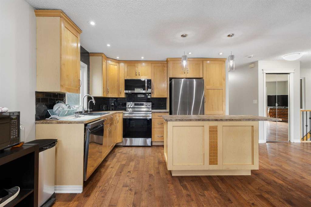 **OPEN HOUSE SUNDAY APRIL 26 from 1pm-3pm** Welcome to this beautiful and spacious bungalow perfectly situated in the desirable community of Woodbine, just a 3-minute walk from Woodbine School and steps away from the scenic trails of Fish Creek Park. Upon entering, you are greeted by a large new window that allows natural sunlight to penetrate the living space, highlighting the cozy wood burning fireplace. The primary bedroom serves as a private retreat featuring its own convenient 3 piece ensuite bathroom. The home also includes a thoughtfully remodeled kitchen from 2009 wtih stainless steel appliances, removing any original dated feel, and the entire interior has been refreshed with new paint. Step outside to find a backyard featuring a large tiered deck, perfect for outdoor entertaining or relaxing in the sun. The basement has been fully renovated to provide additional living area and features a second wood burning fireplace, adding warmth and character to the lower level. Comfort is guaranteed year-round with the inclusion of central air conditioning and a new furnace (2021), while the home's exterior was updated with new roof shingles in 2018. This property is completed by an oversized double detached garage perfect for vehicles and extra storage.