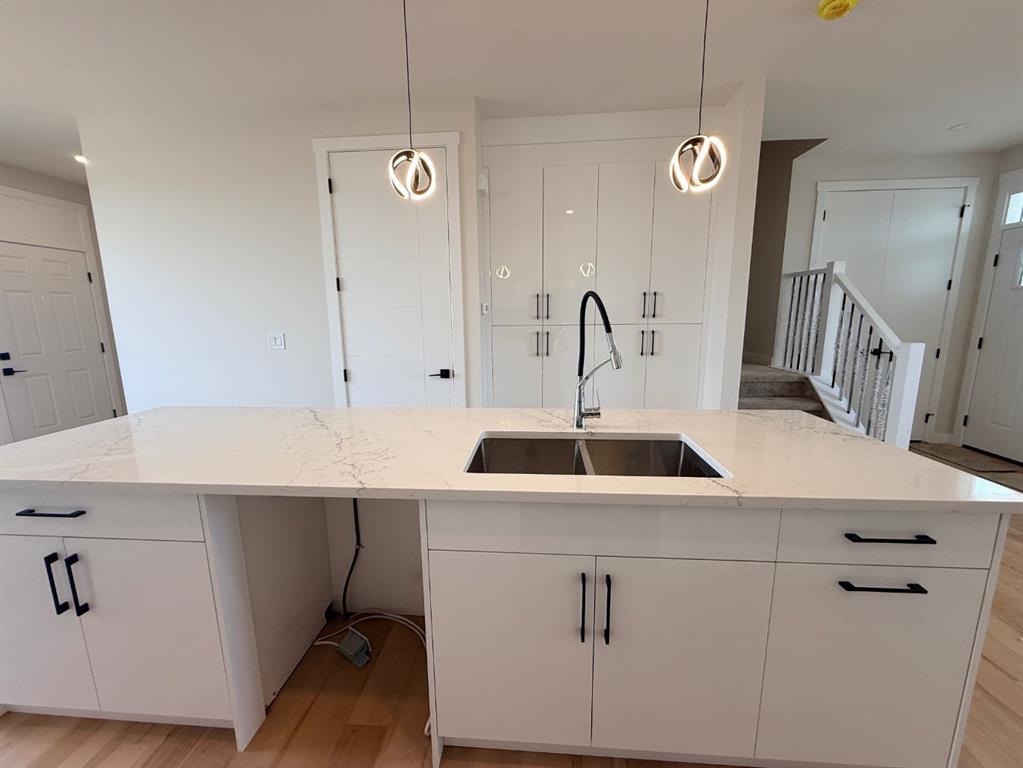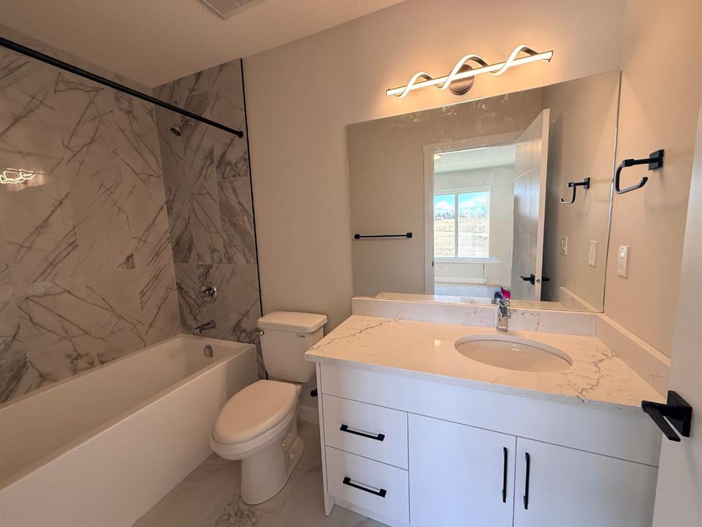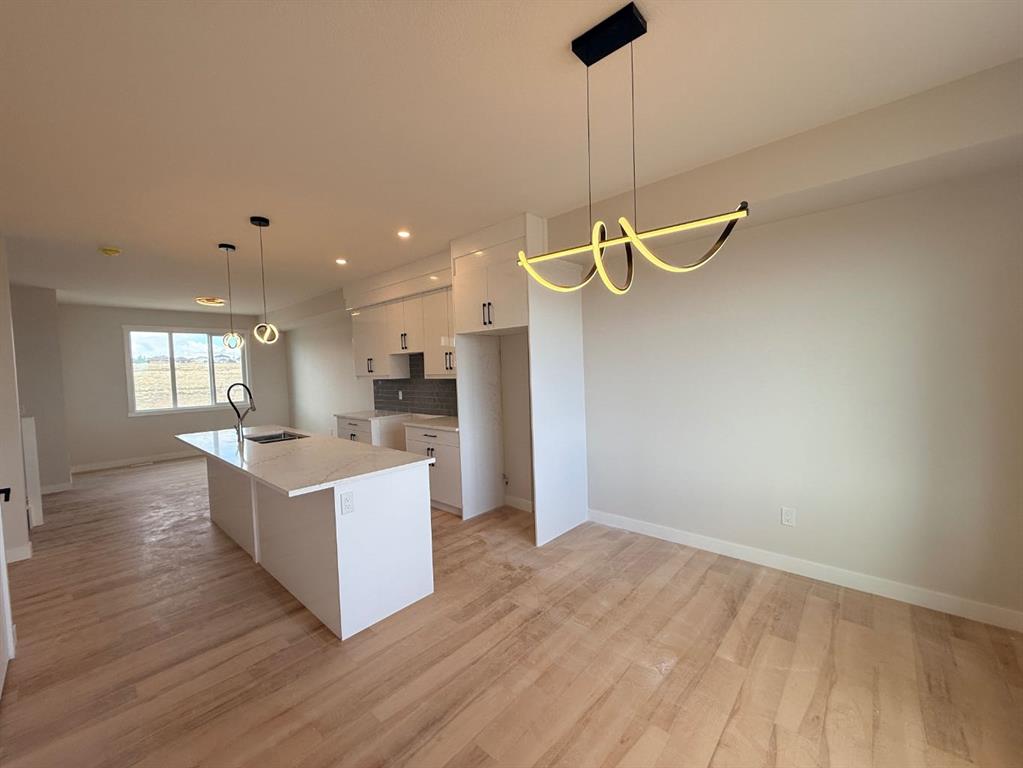 NO Condo Fee! This new built home has spacious 3 bedrooms and 2 full bathrooms upstairs and a half-bathroom on the main floor, modern kitchen, quartz countertops and island, front porch, back yard and a sun deck. Well designed living space with modern appliances and finishes, 9 feet ceiling on the main floor and basement. Rear lane access and 2 car parking pad. Crossfield is a quiet and rapidly growing town which has well rated one elementary and one high school, day care, golf course, parks, playgrounds, and other amenities. Strategically located near Airdrie that's 10 minutes drive to Superstore, 15 minutes to Balzac, 25 minutes to Calgary Airport and close to Highway 2 for fast and easy commuting. An ideal opportunity for first time buyers or investors - book you're showing today!
