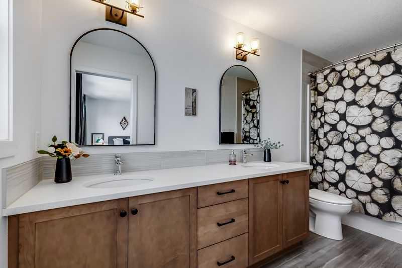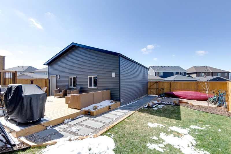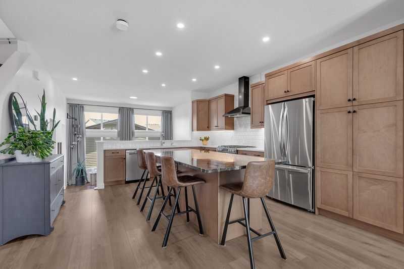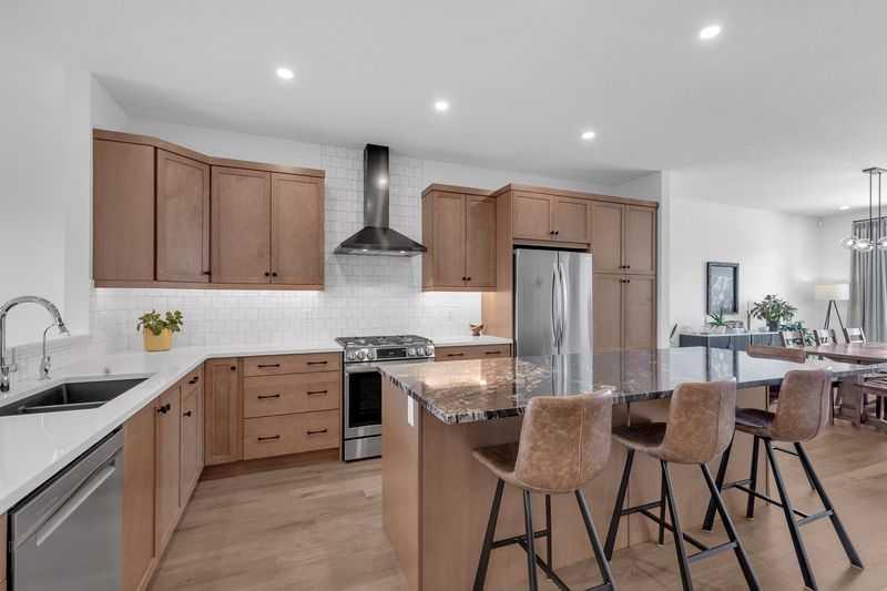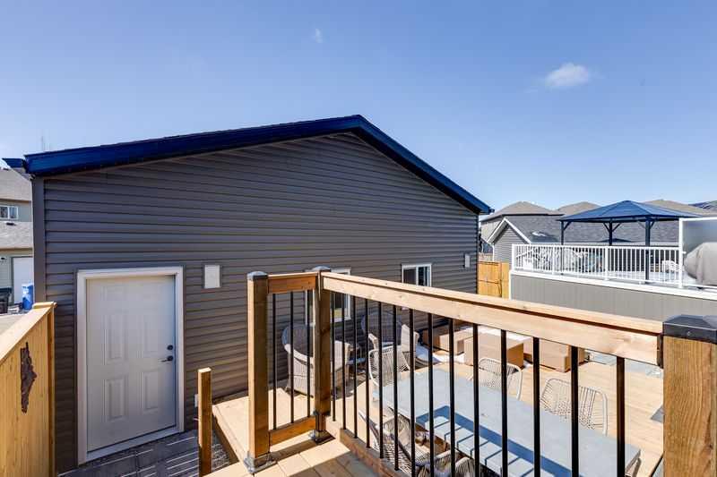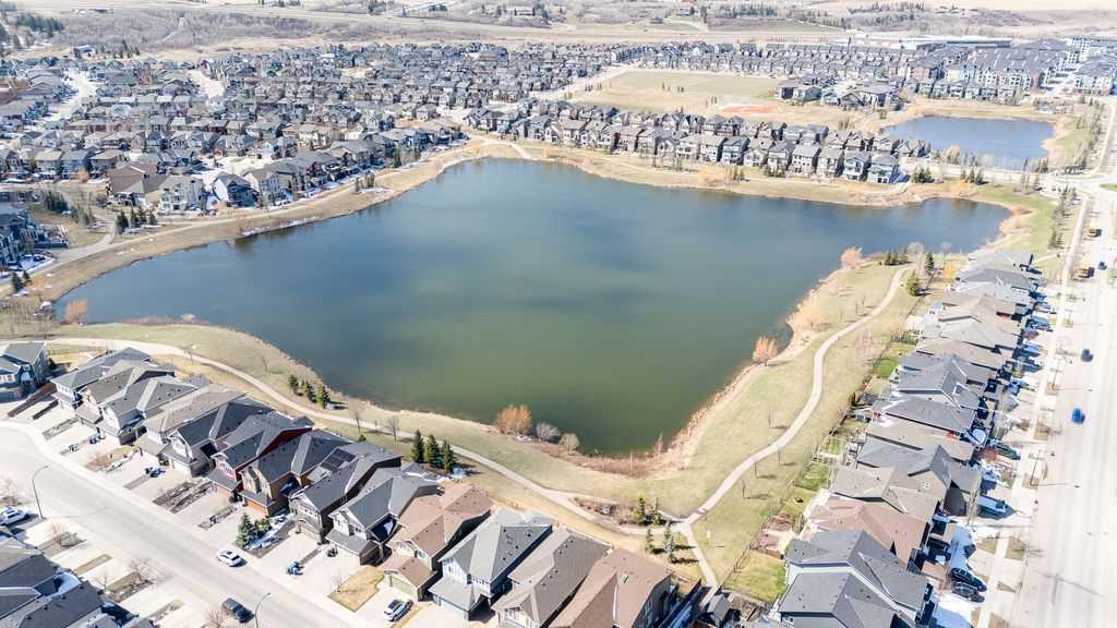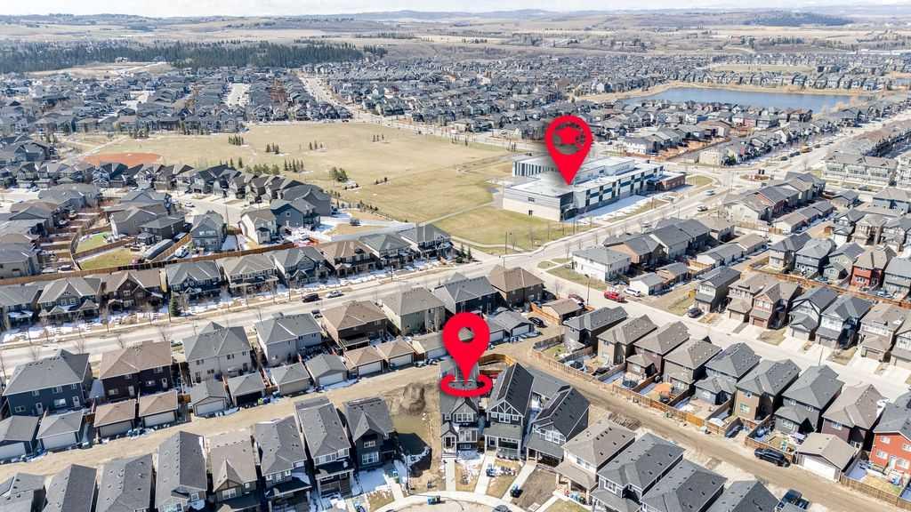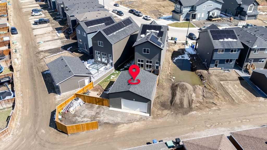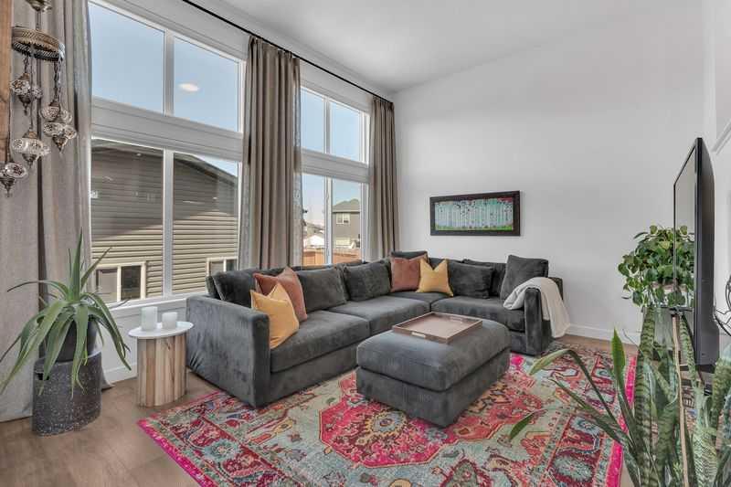 Welcome to this stunning family home situated on a large southwest-facing pie-shaped lot, complete with an oversized garage and additional parking pad. From the moment you step inside, you’re greeted by a spacious front entry and impressive 9’ ceilings throughout the main floor. The bright and open living room features large windows that flood the space with natural light. The kitchen is designed for both function and style, offering a massive island, abundant cabinetry with plenty of drawers, a built-in pantry, and stainless steel appliances including a gas stove and built-in microwave. Just steps down, the sunken living room showcases soaring 12’ ceilings and expansive windows, creating a warm and inviting atmosphere. Enjoy the added convenience of motorized blinds with both blackout and sheer options. A 2-piece powder room completes the main level. Upstairs, you’ll find two generously sized bedrooms, a 4-piece bathroom, and convenient upper-floor laundry. The spacious primary suite features a walk-in closet and a luxurious 5-piece ensuite with double sinks. The lower level boasts impressive 10’ ceilings and is ready for your personal touch and future development. Car enthusiasts and hobbyists will appreciate the oversized 26’ x 26’ garage with 10’ walls - truly a dream space. The fully fenced, southwest-facing backyard includes a two-car parking pad and offers plenty of room to enjoy outdoor living. Additional features include air conditioning for those warm summer days, a tankless hot water, reverse osmosis system, and water softener. Ideally located close to schools, shopping, walking paths, and scenic parkways with access to a beautiful ridge, this home truly has it all. Don’t miss your opportunity to make it yours!