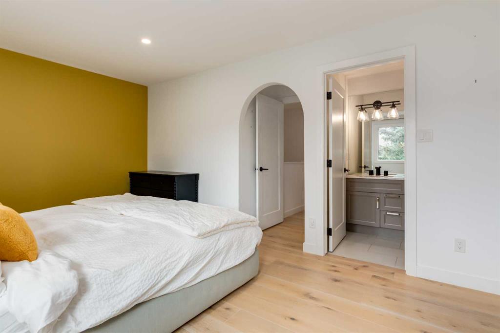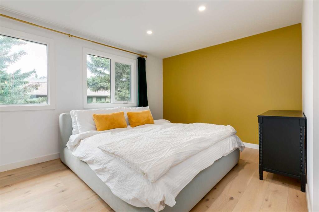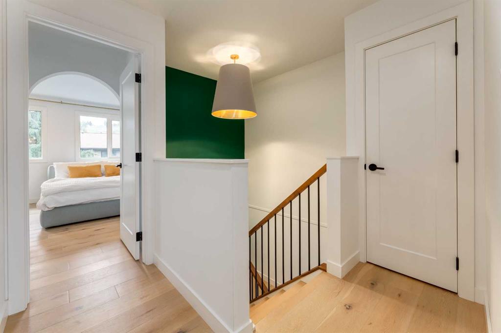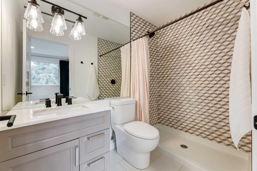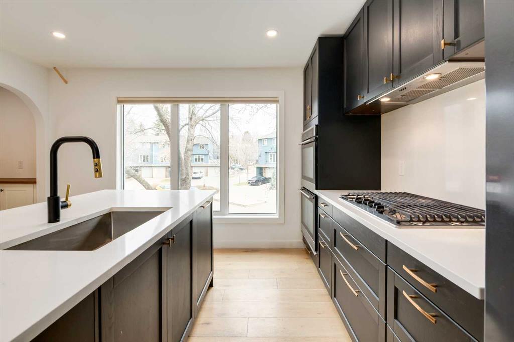 Beautifully renovated three bedroom home in coveted Pt. McKay. Enjoy the Bow River Pathway, quick access to downtown, major transportation system, hospitals, quick getaway to the mountains and yet you are tucked away in a peaceful oasis and nestled in a fabulous complex that allows you to enjoy nature amid the hustle and bustle of life. Enter the spacious foyer with access to single attached heated garage, then go up to the bright and lovely living room with soaring ceilings & gas fireplace with stylish feature wall. Enjoy your BBQ's on the big private deck, surrounded by beautiful trees. Kitchen/walk-in pantry and dining overlooking the lower area are bright with tons of natural light. Quartz countertops, double wall ovens, gas cooktop, dishwasher, fridge and stainless sink. Lots of planned storage. Wood and metal railings. Fabulous engineered flooring mostly throughout. Primary bedroom has ample closets with 3-piece designer shower. The 4-piece custom tiled bathroom shared by two other rooms bedrooms enhances the living space. Pt. Mckay speaks for itself! An amazing place to live!!